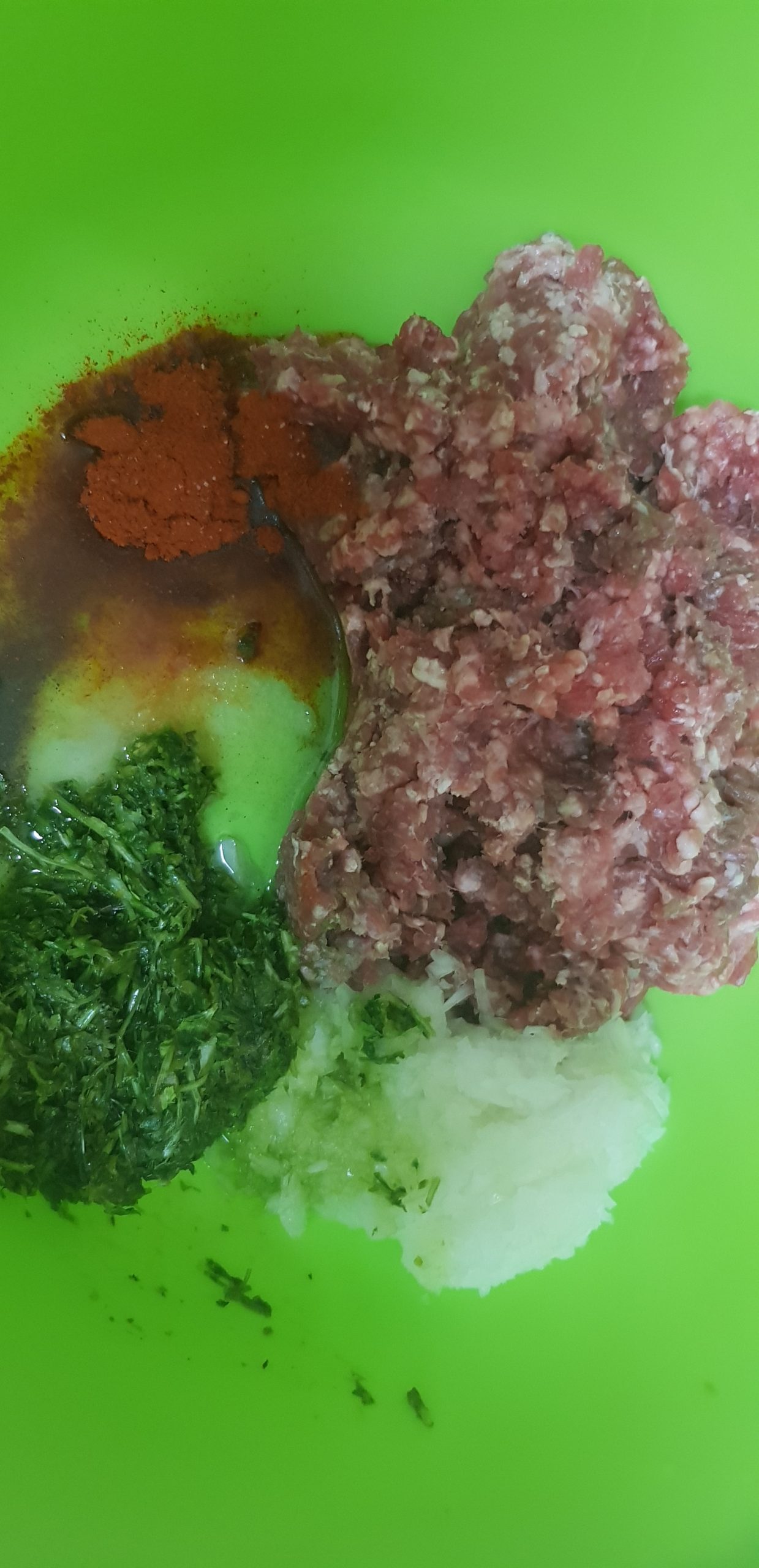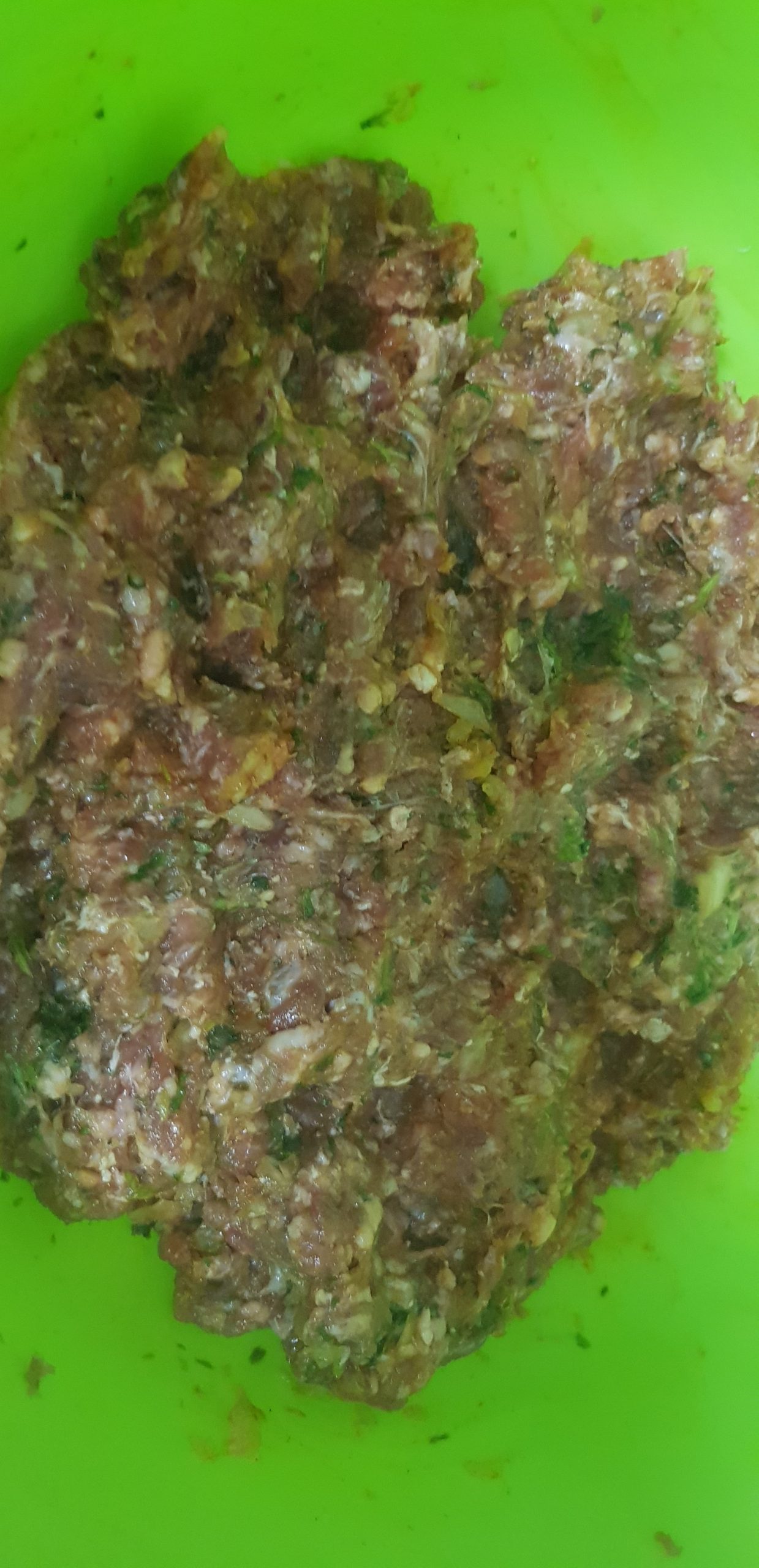 Préparer la farce de la viande en mélangeant tous les ingrédients et réserver au frais