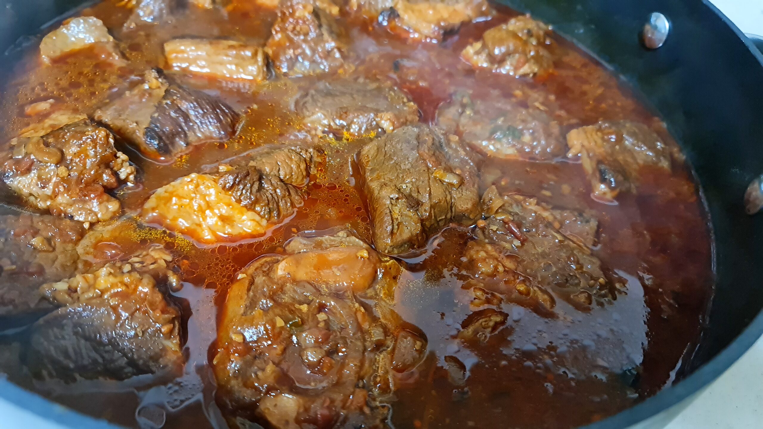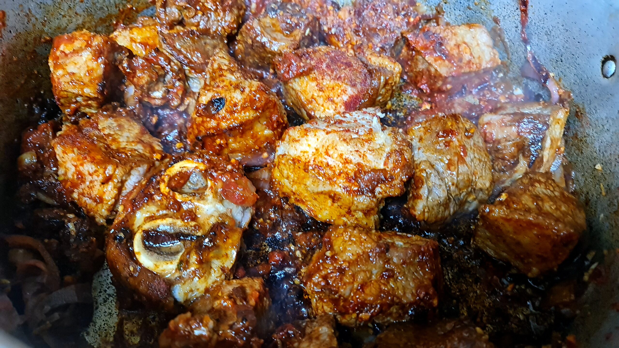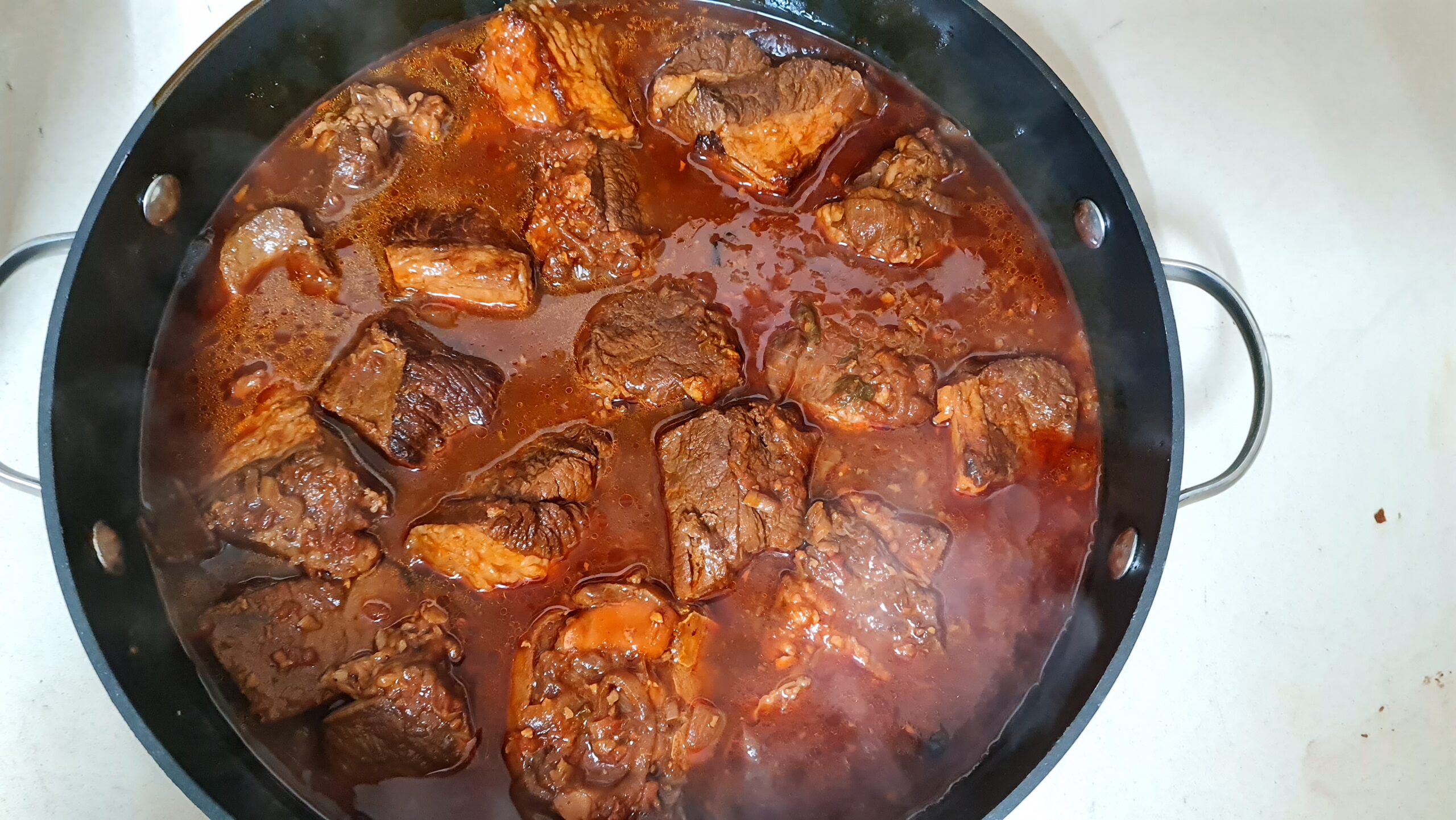 Prenez 2 kilos d’asado en gros dés, salez et poivrez, et faites-les saisir dans une large marmite jusqu’à ce qu’ils soient bien rotis, sortez-les, mettez 12 gousses d’ail, 3 branches de céleri, 3-4 carottes coupées, 2 oignons violets dans la même huile. 5-6 patates douces 6 pommes de terres de Jerusalem, et bien mélanger, ajouter un bâton de cannelle et 2 tiges de thym, saler et poivrer, placer la viande, mettre 7-8 pruneaux, ajouter 3 cuillères à soupe de silan et 2 cuillères à soupe de concentré de grenade, ajouter une cuillère à soupe de concentré de tomates , ajoutez un verre de vin blanc et dès que l’alcool s’évapore, ajoutez 2 verres d’eau bouillante
