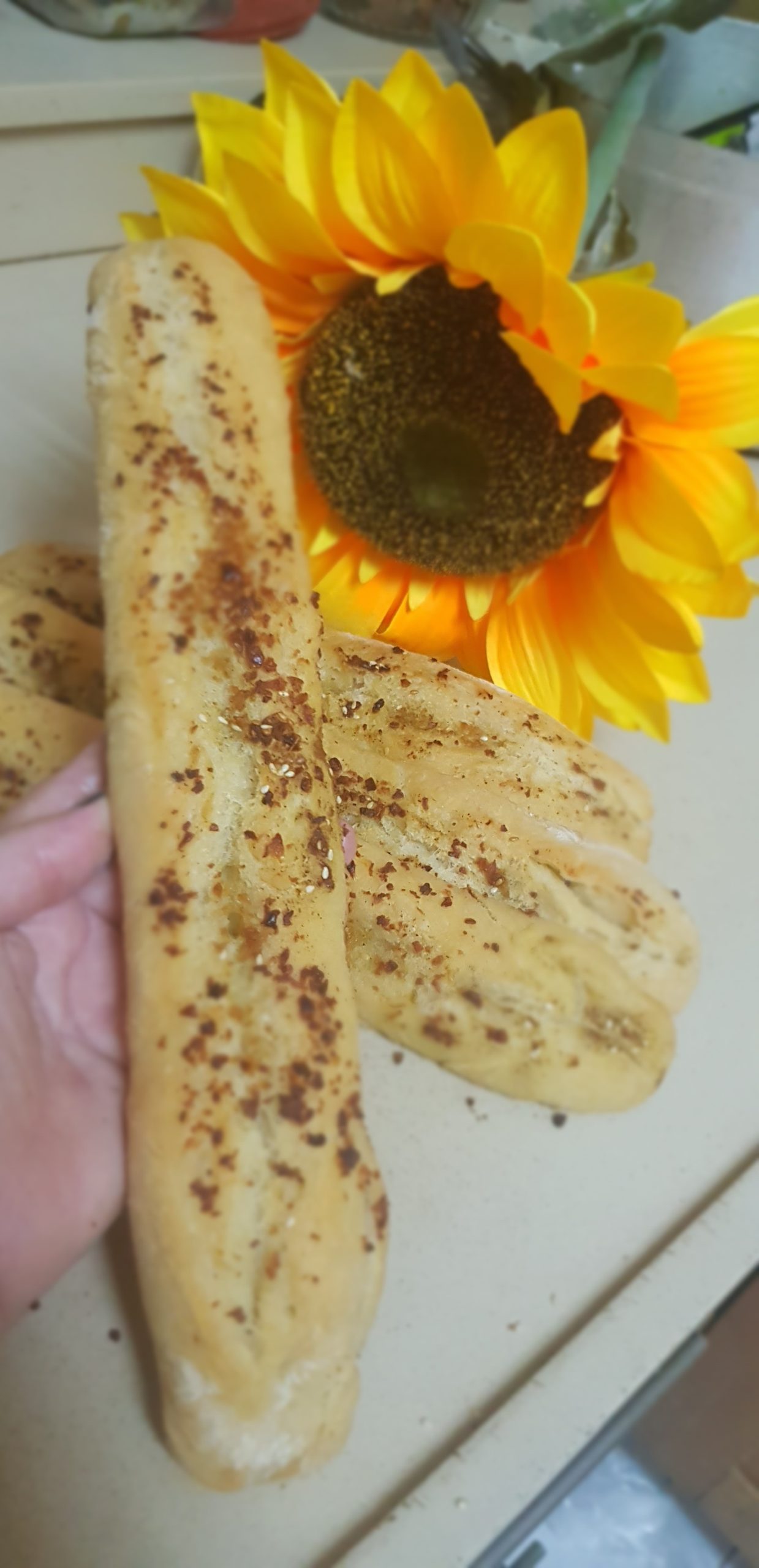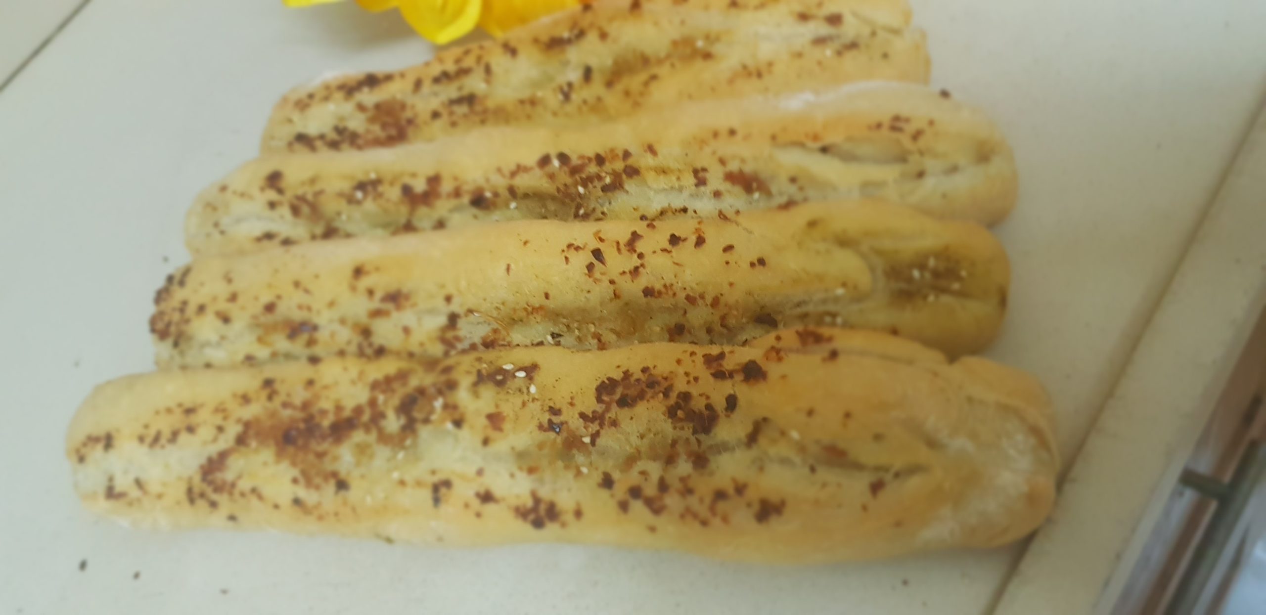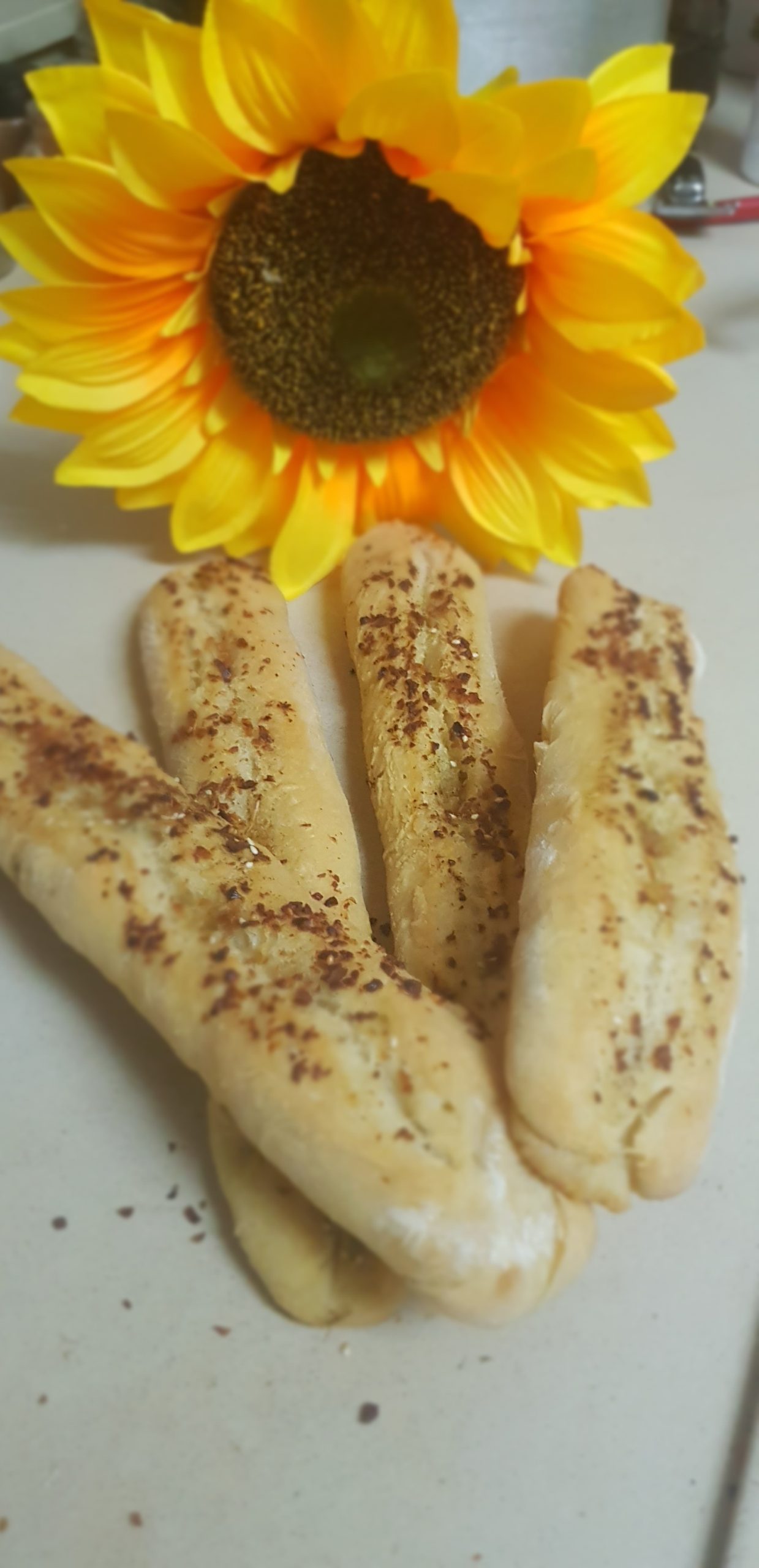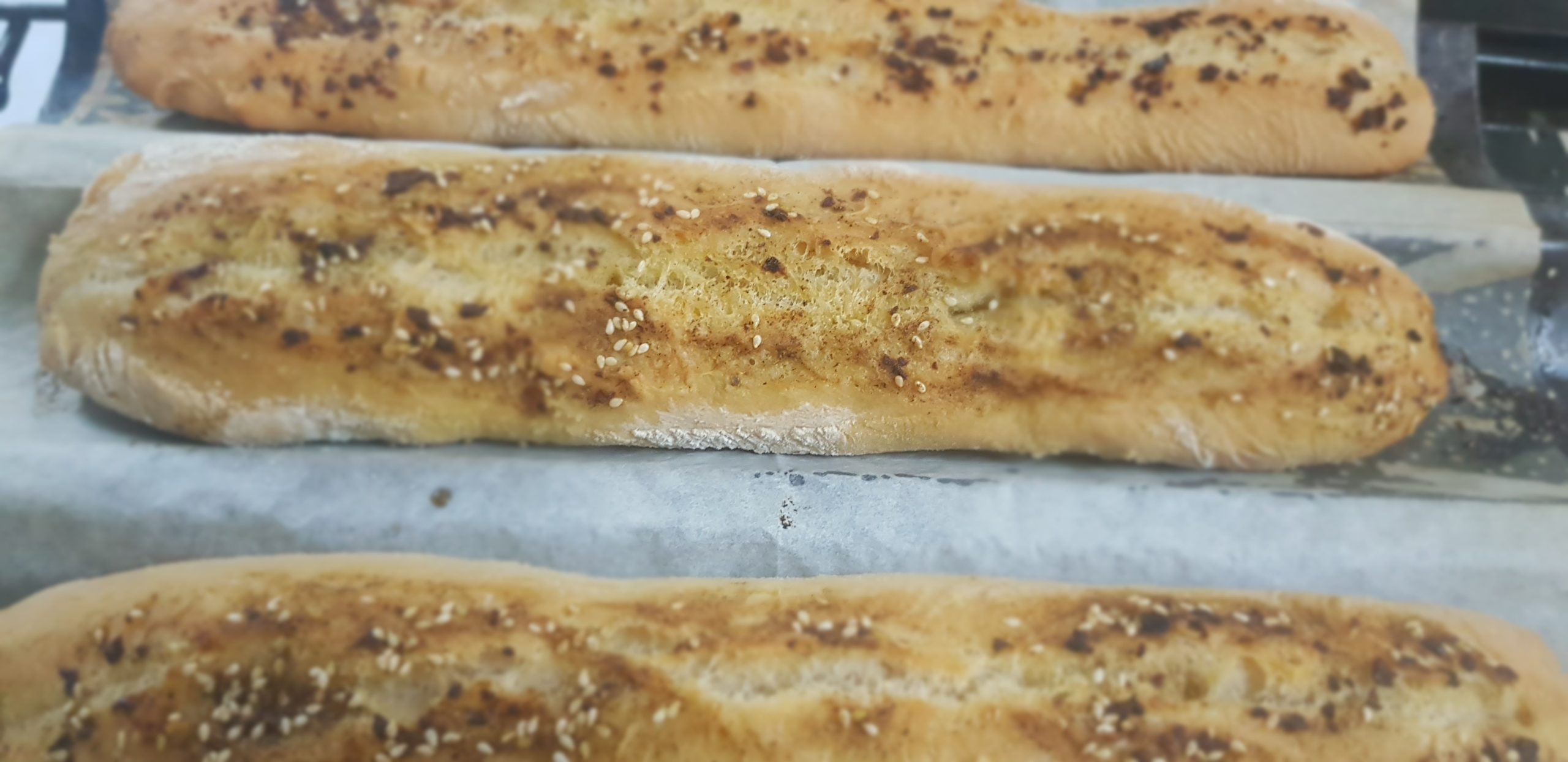Déposer chaque baguette sur une plaque à pâtisserie recouverte de papier sulfurisé