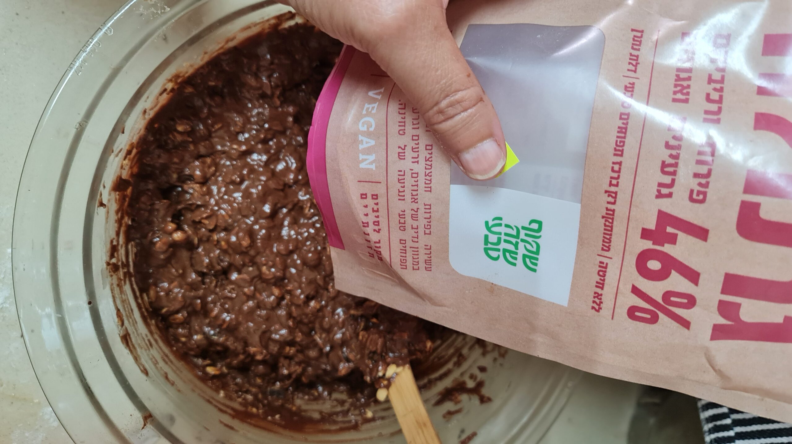Mettre la tahina, le miel et le chocolat fondu dans un bol, mélanger avec une spatule puis ajouter le muesli (qui contient aussi des noix), bien mélanger jusqu’à obtenir une pâte homogène.