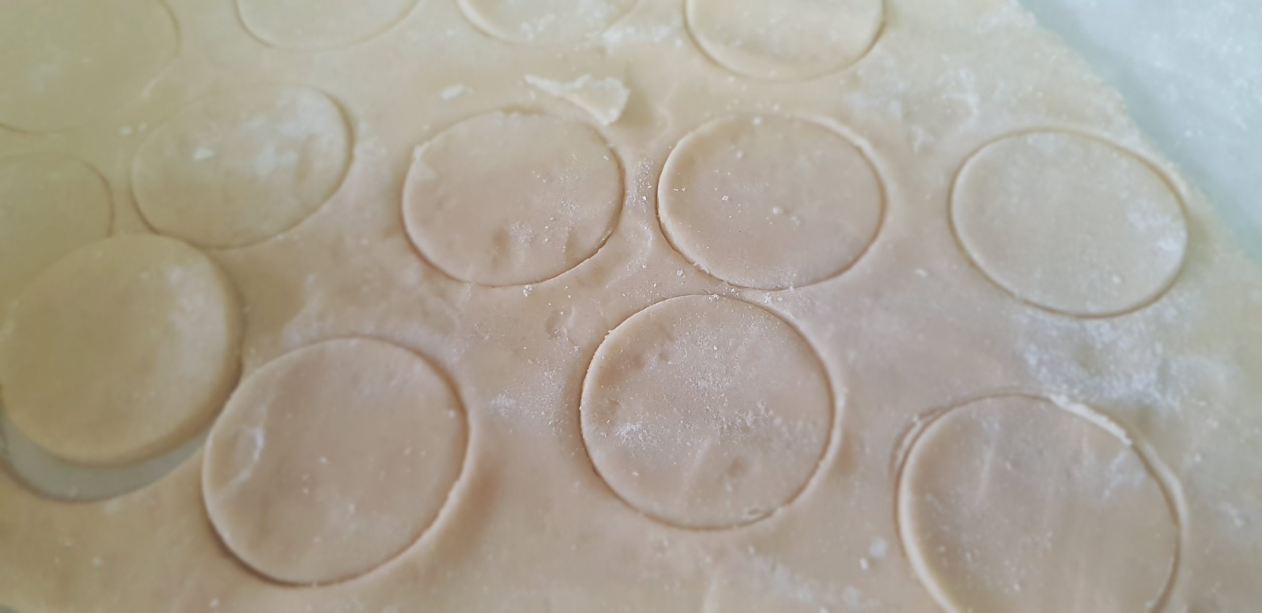 Ensuite, roulez la pâte sur une surface farinée jusqu’à une épaisseur uniforme d’environ un demi-centimètre