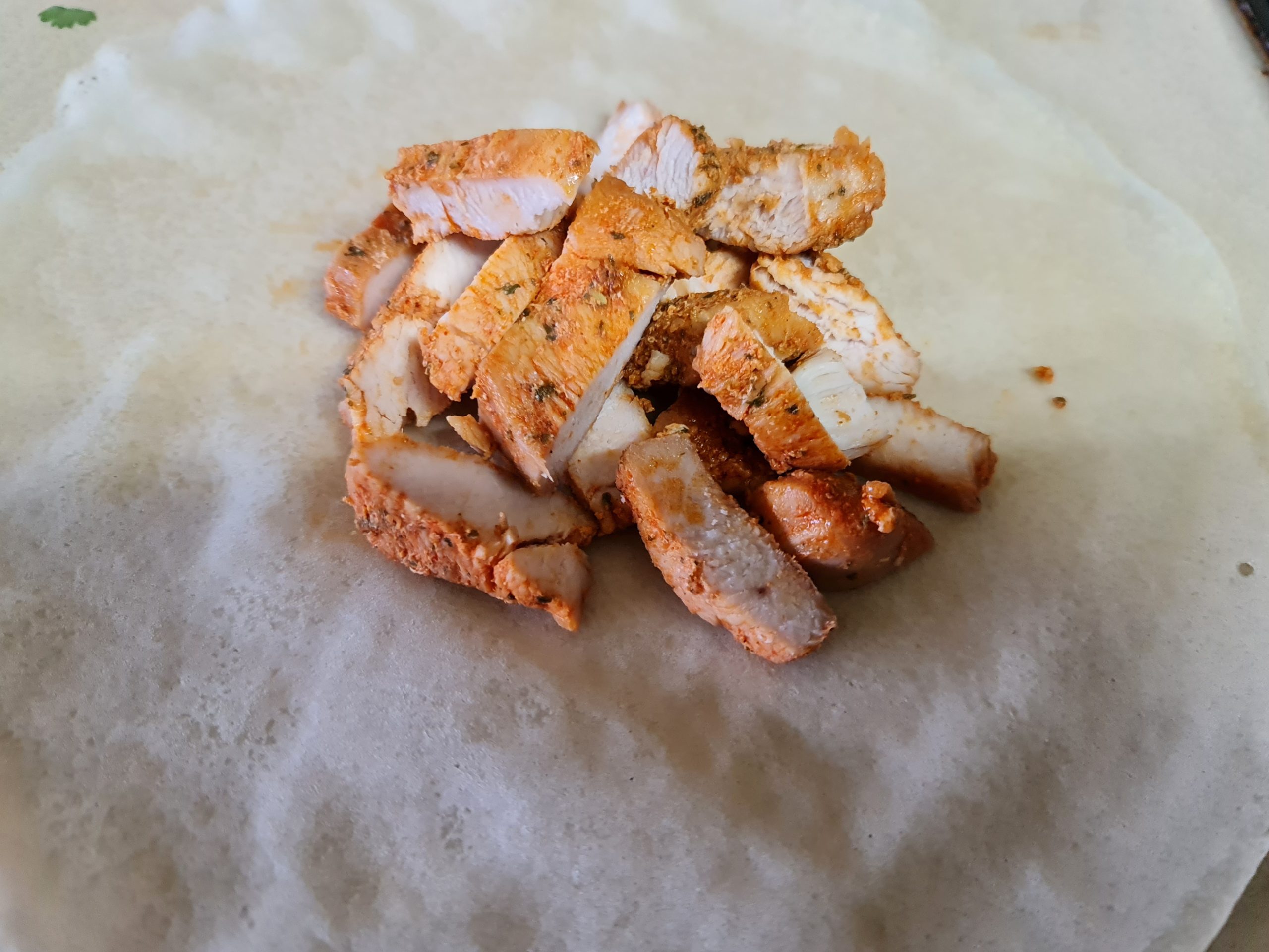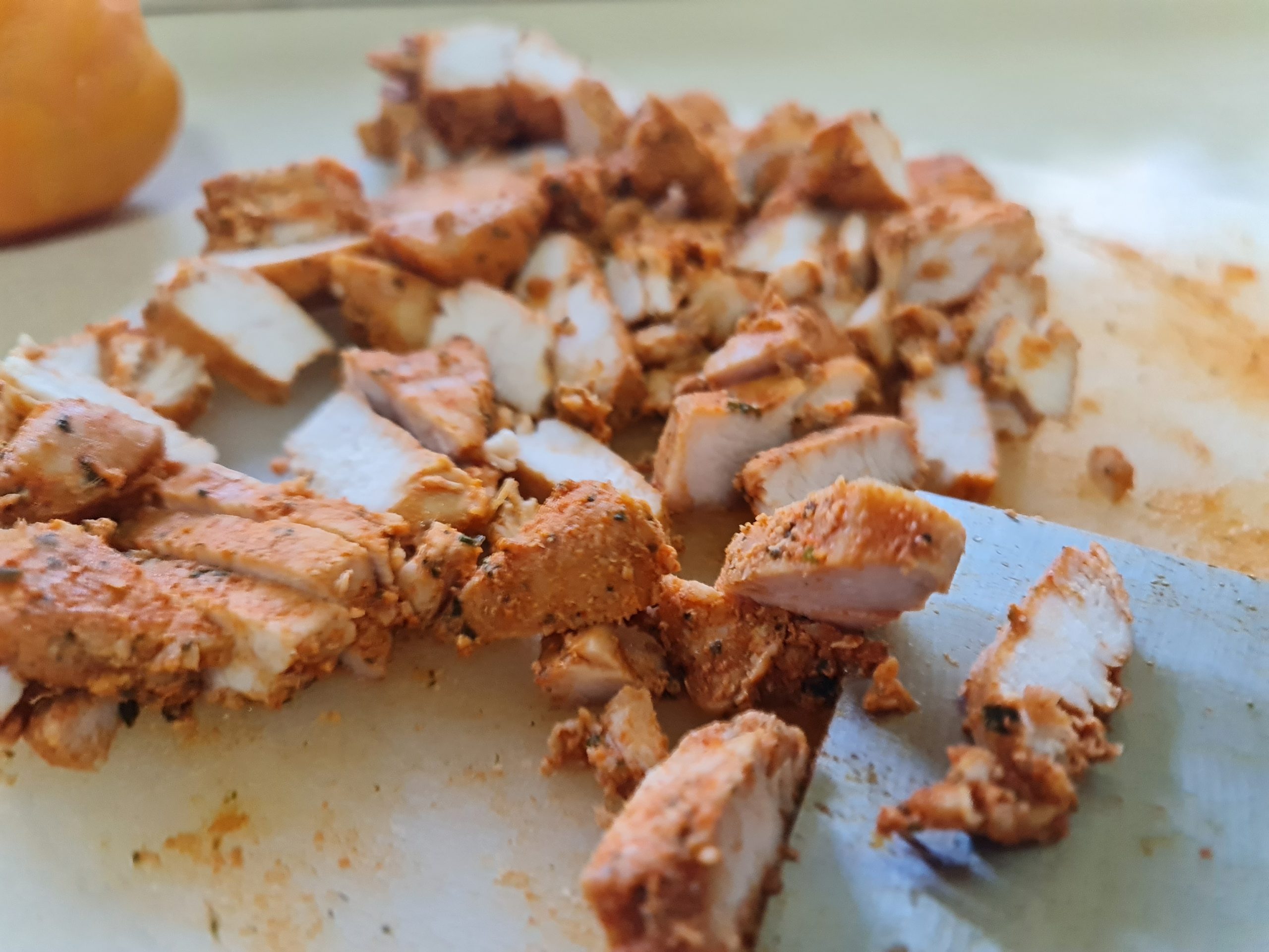 blanc de poulet ( pour la version poulet) assaisonnés avec des épices de votre choix, , et du soja et un peu de citron