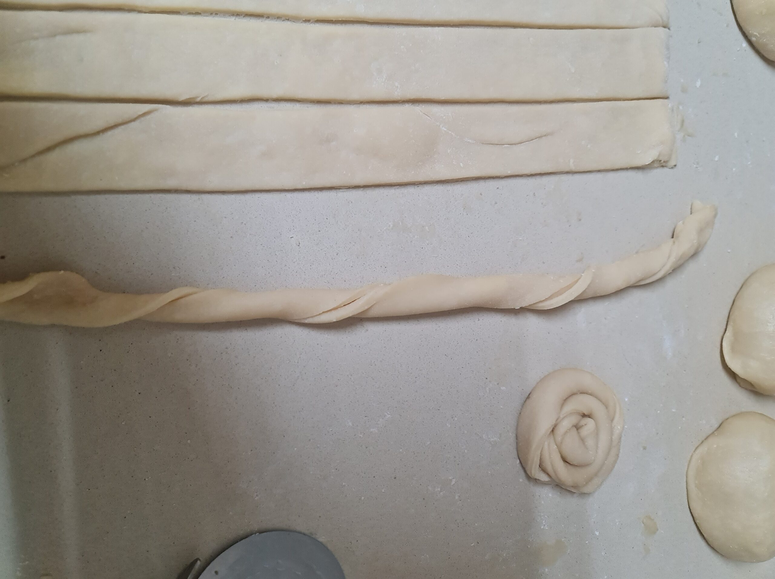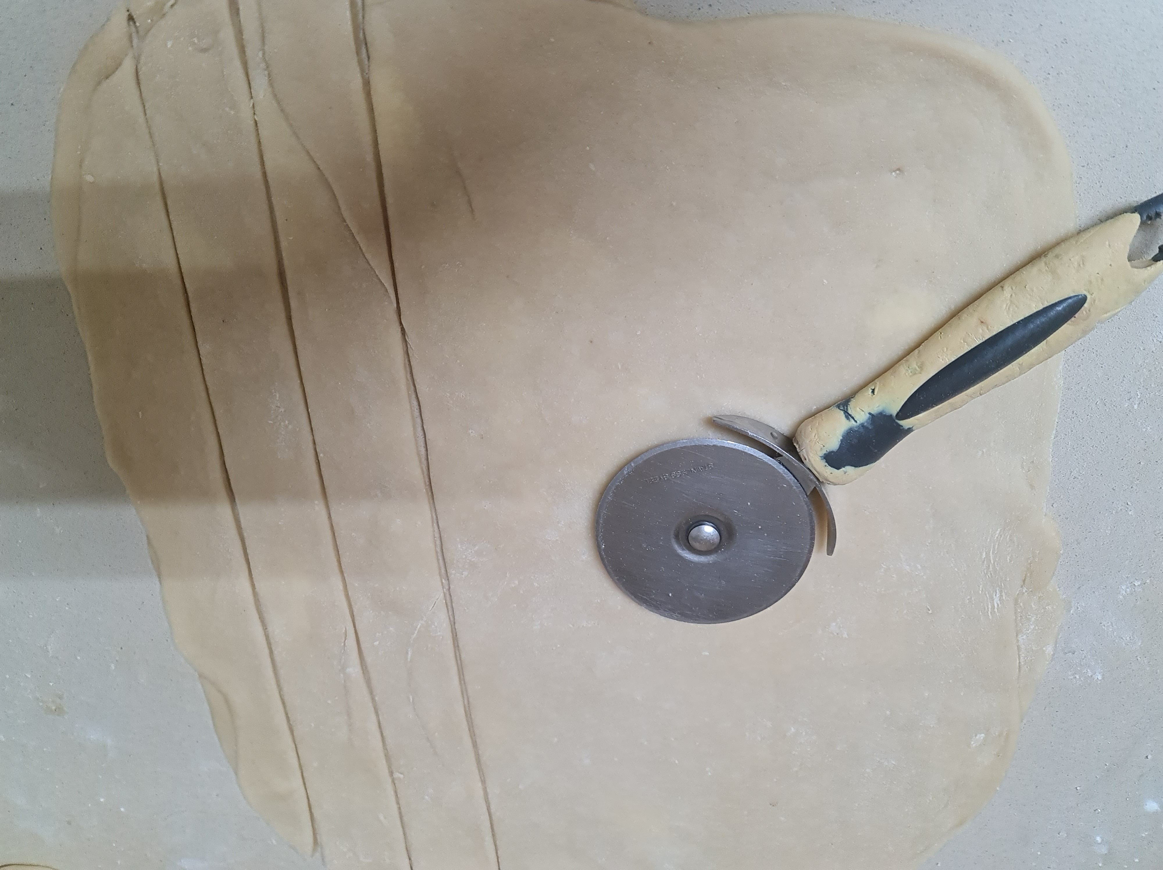 - Etalez un peu et coupez des bandes d’environ un cm et demi d’épaisseur.