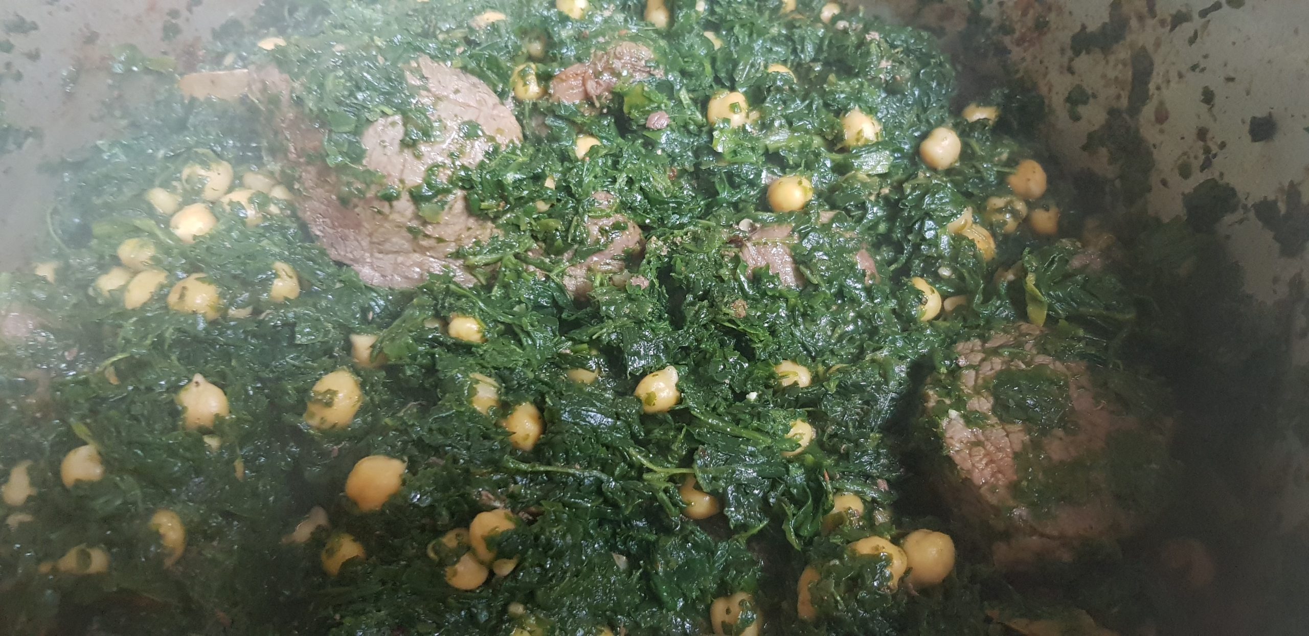 Lorsque les épinards ont été vidé de leur eau, les ajouter à la viande, les pois chiches.