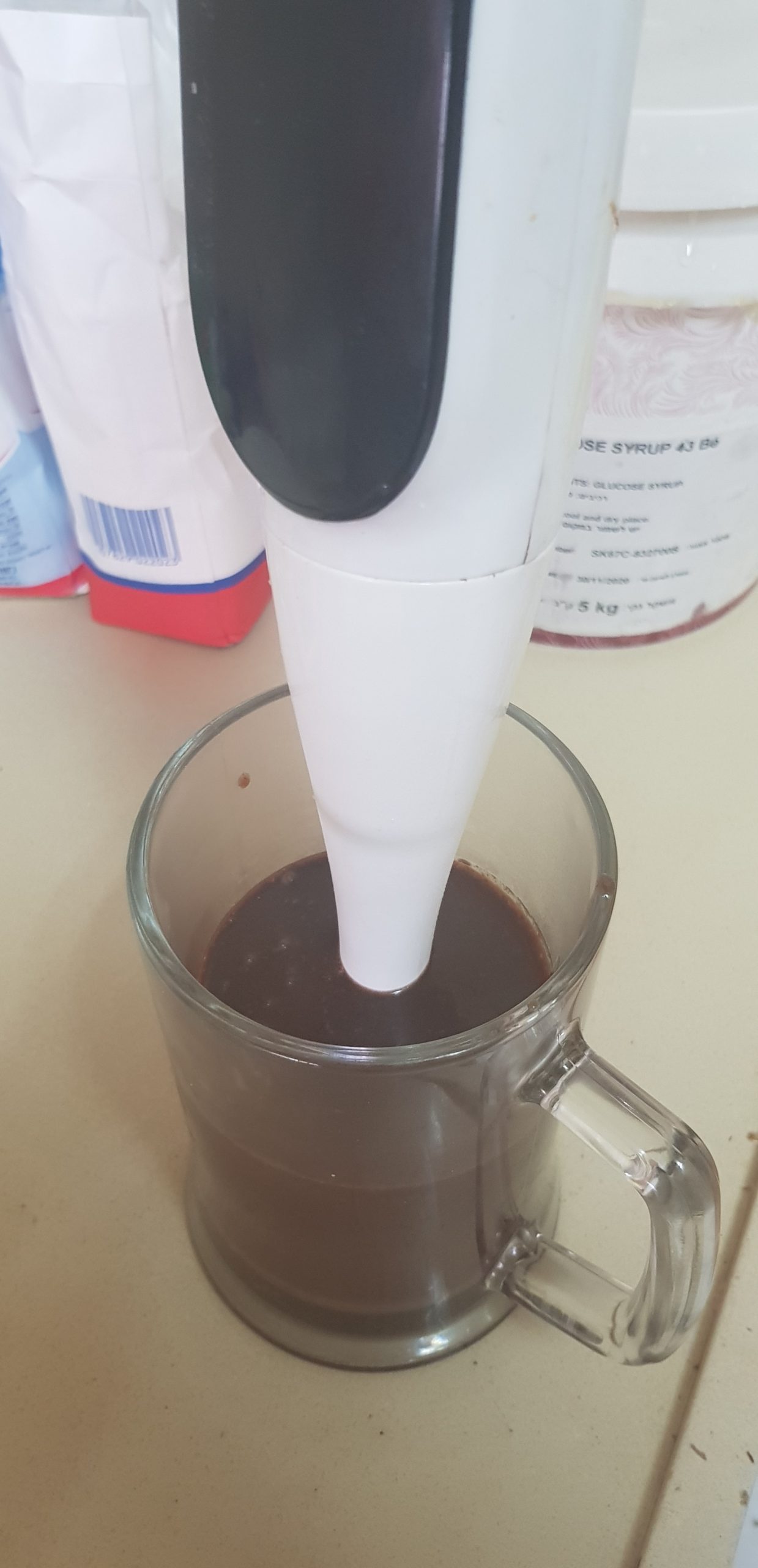 Réaliser une émulsion en 3 fois en versant 1/3 du lait chaud sur le chocolat pour obtenir une texture élastique lisse et brillante signe d’une émulsion démarrée.