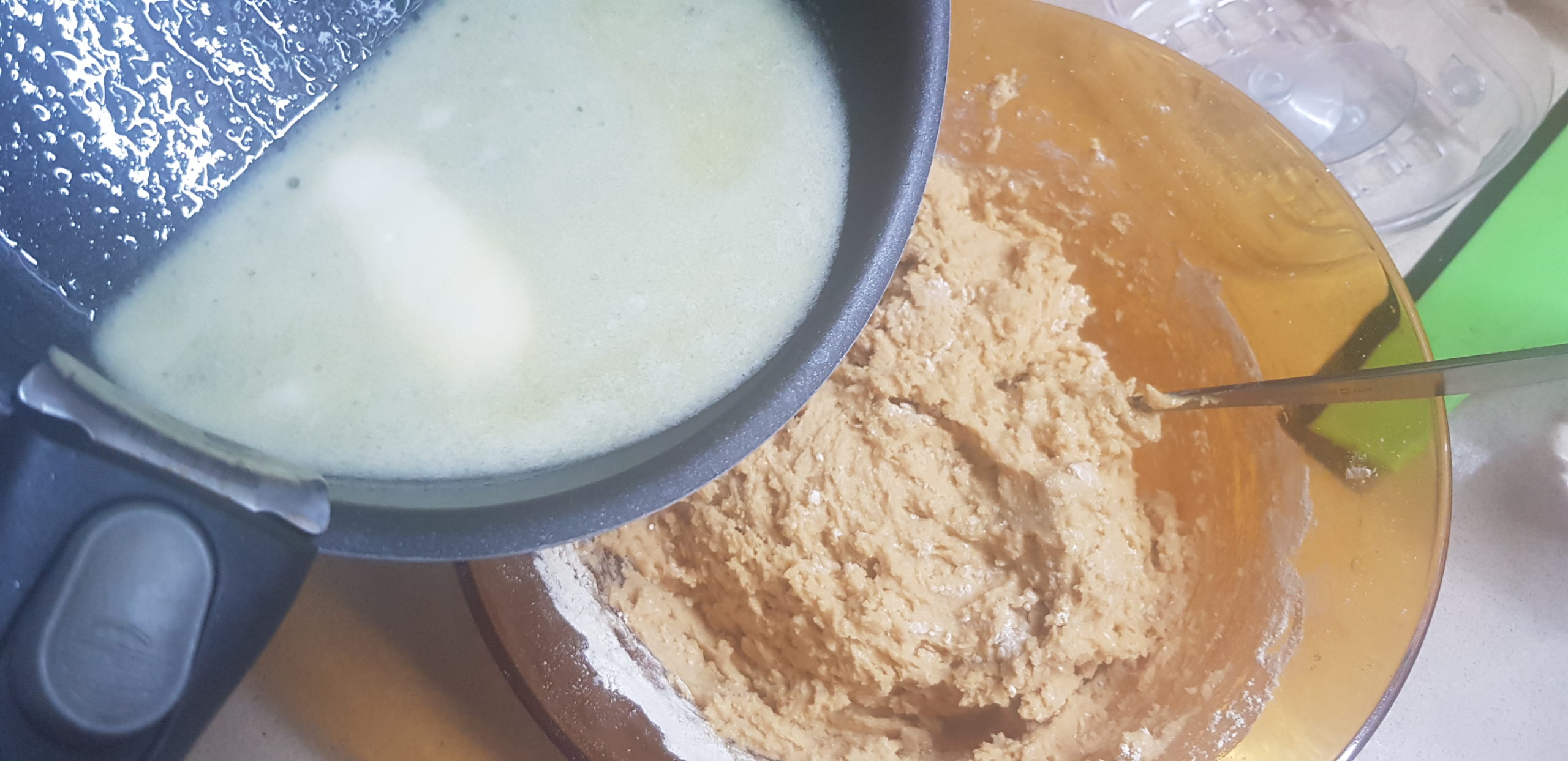 Versez le lait bouillant sur la préparation aux œufs puis mélangez au fouet électrique. Si la préparation s’épaissie par elle même dans le robot, il ne sera pas nécessaire de l’épaissir une nouvelle fois dans une casserole, mais si ce n’est pas le cas, remettez le tout dans la casserole puis chauffez sur feu doux en remuant, jusqu’à ce que la préparation épaissie. La préparation doit restez onctueuse et pas un amas de pate compacte !