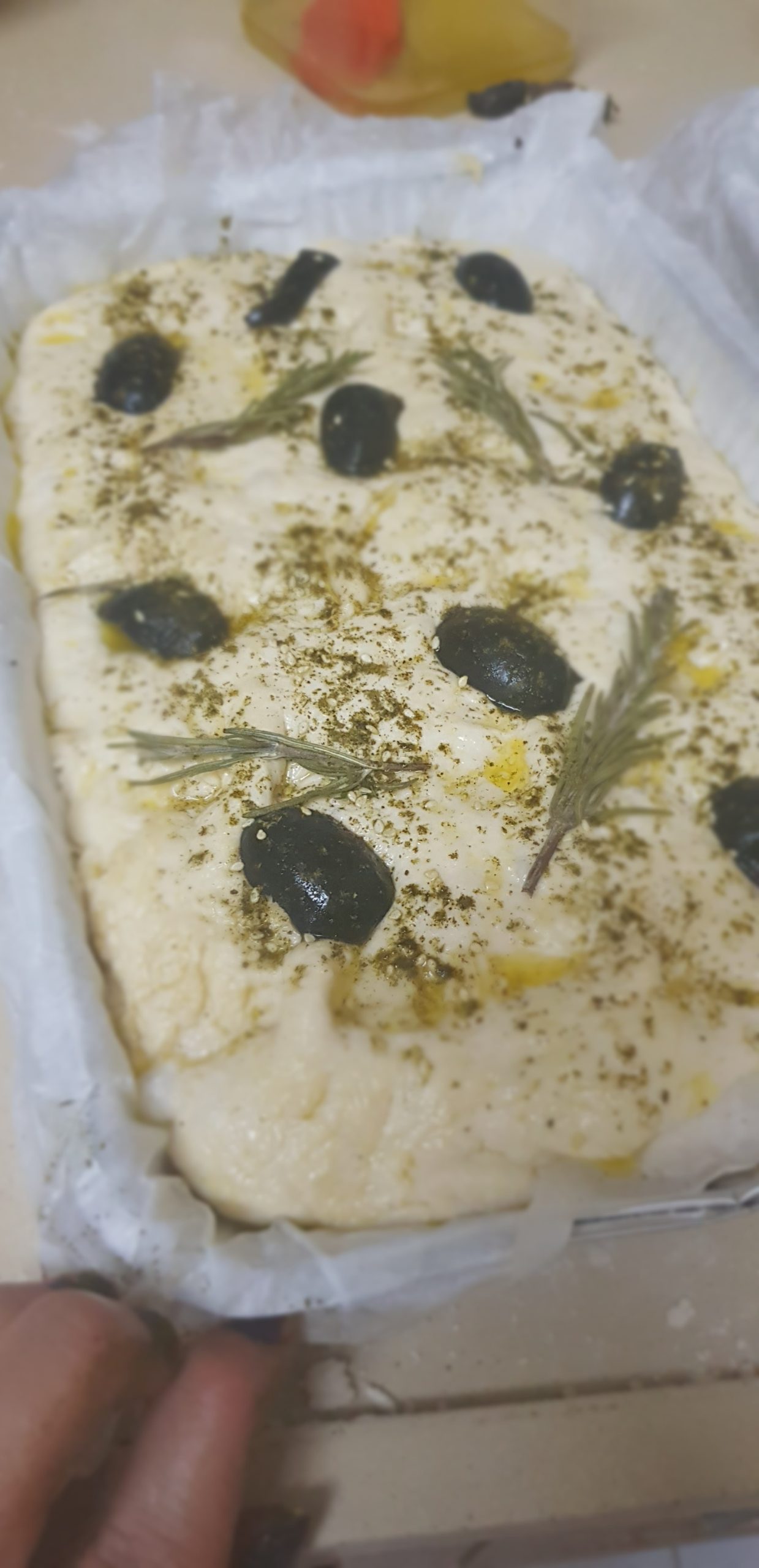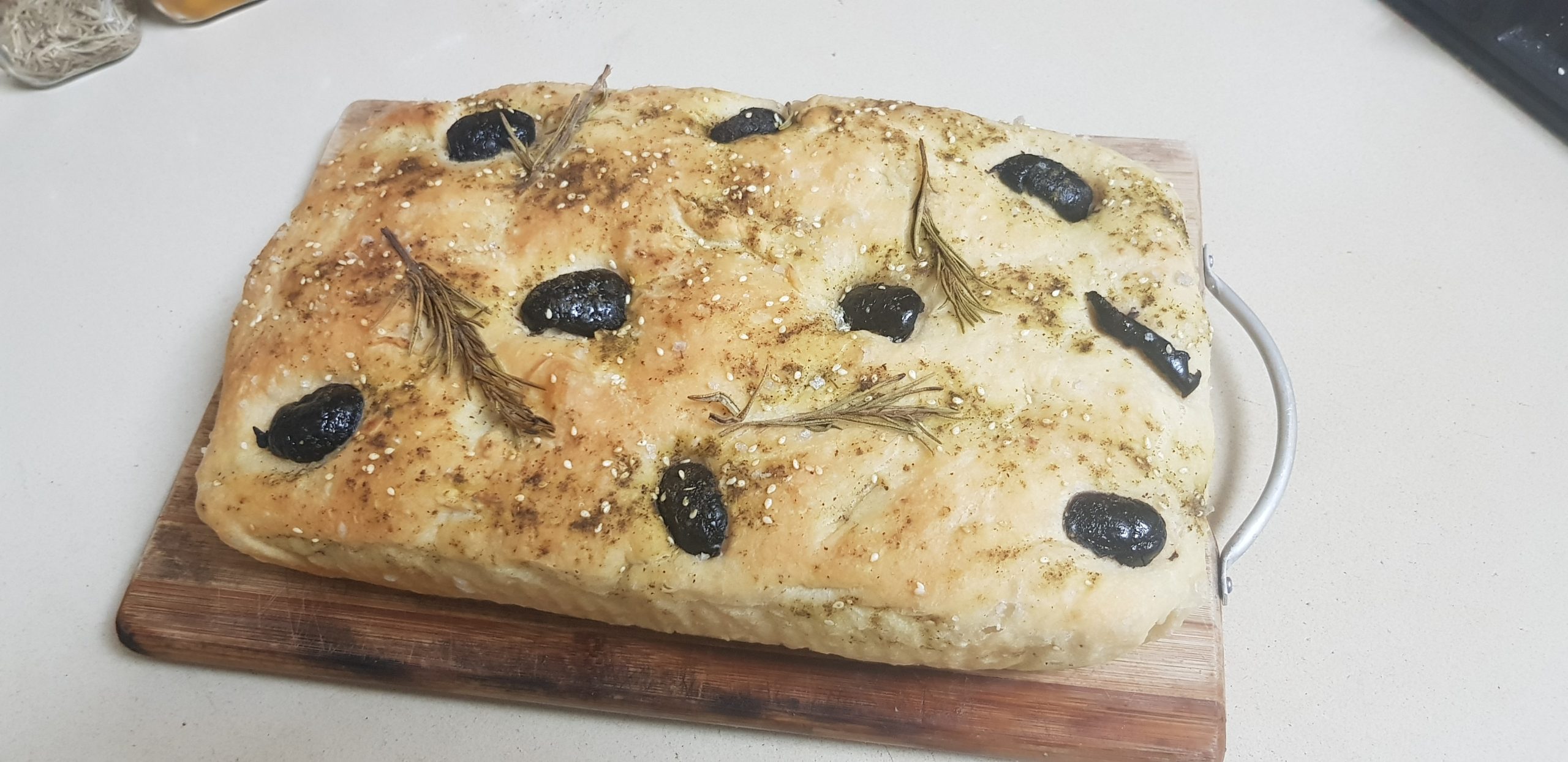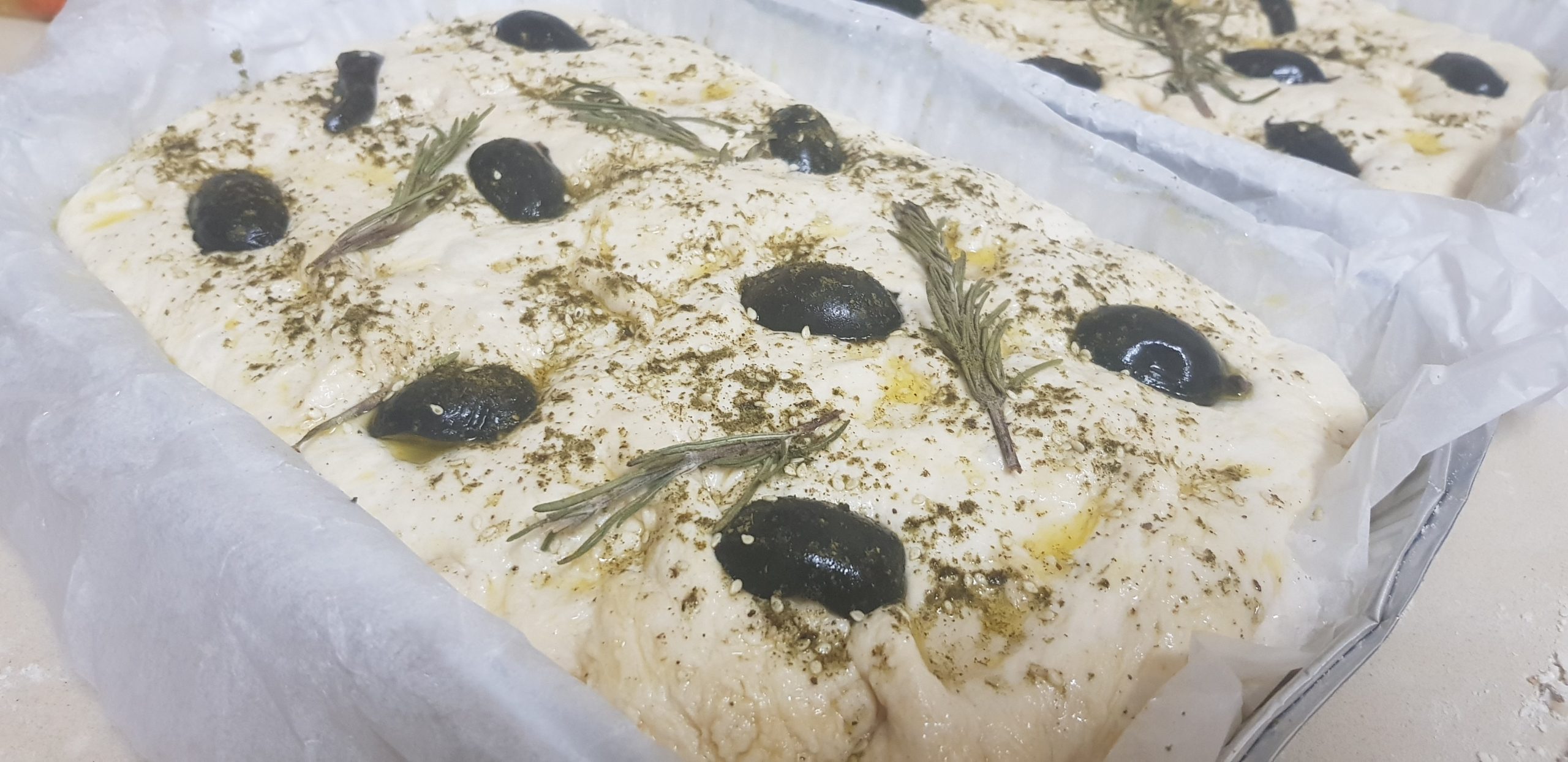 Saupoudrer de sel et de poivre ou zaatar sur la pâte et cuire au four pendant 25 minutes ou jusqu’à ce que la focaccia soit dorée.