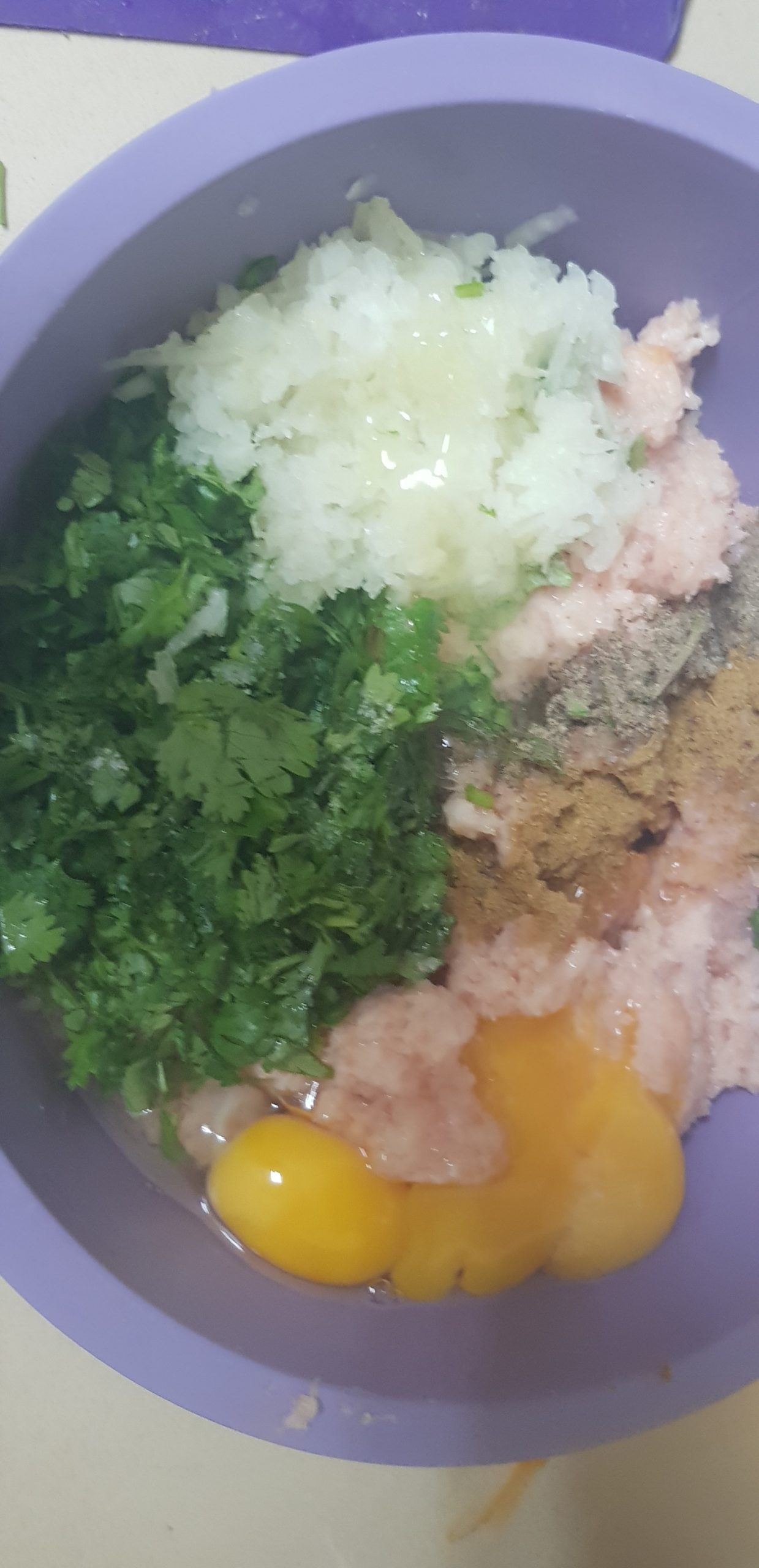 Pour les galettes végétariennes, vous pouvez abandonner la poitrine de poulet et ajouter 3 cuillères à soupe de farine.