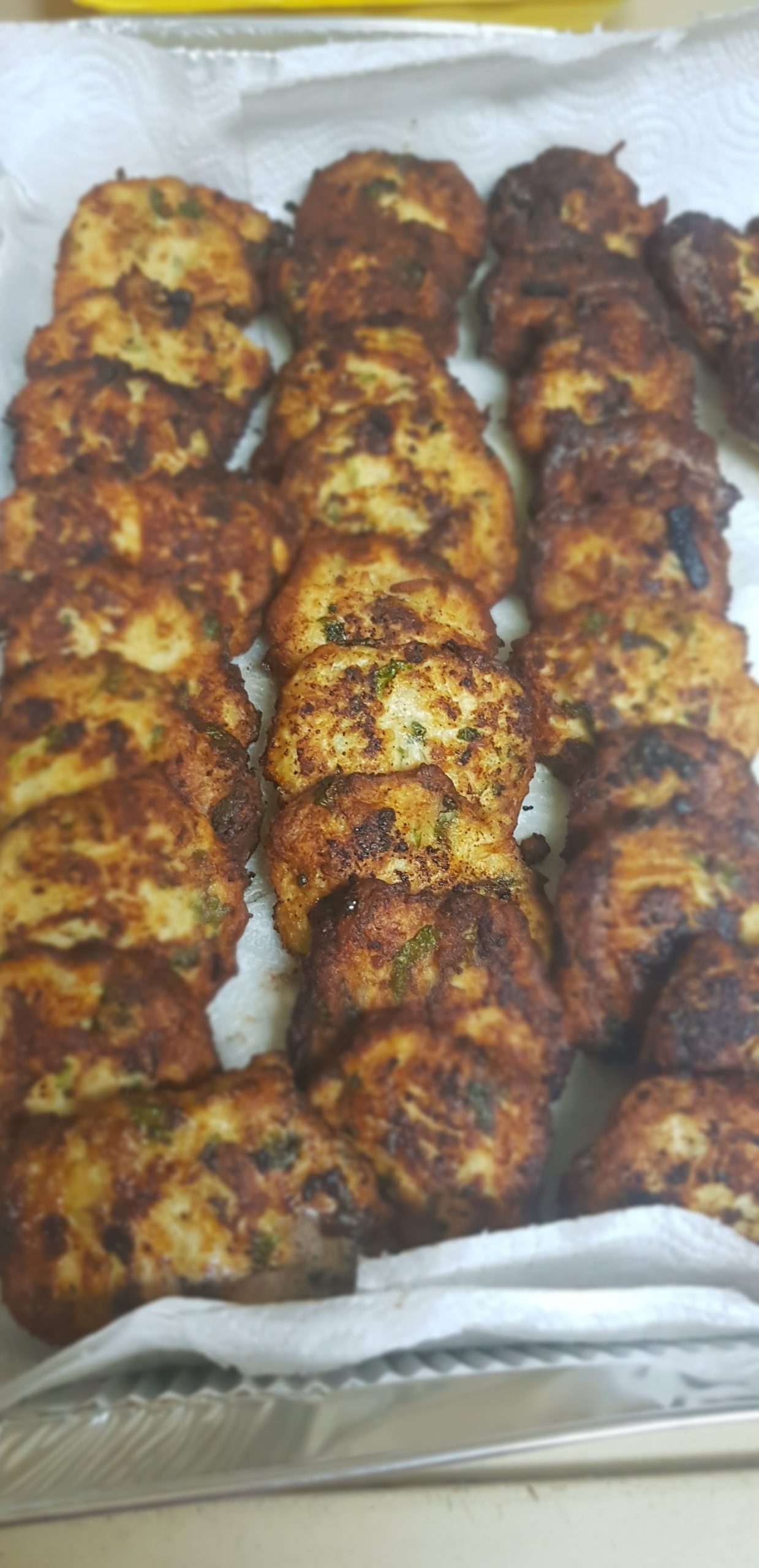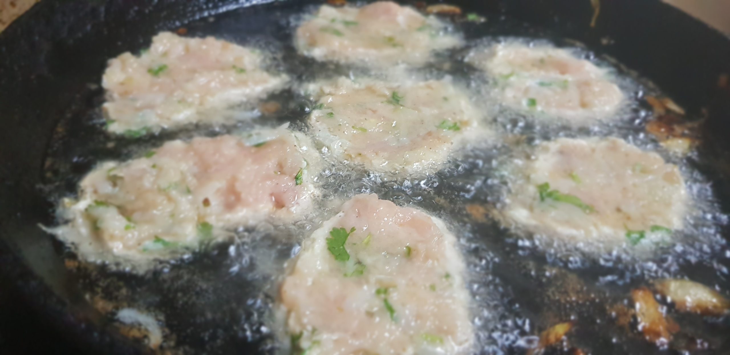 Chauffer une poêle avec de l’huile mi-profonde, à l’aide d’une cuillère, transférer le mélange de galettes dans la poêle et faire revenir les galettes des deux côtés jusqu’à ce qu’elles soient bien dorées.
