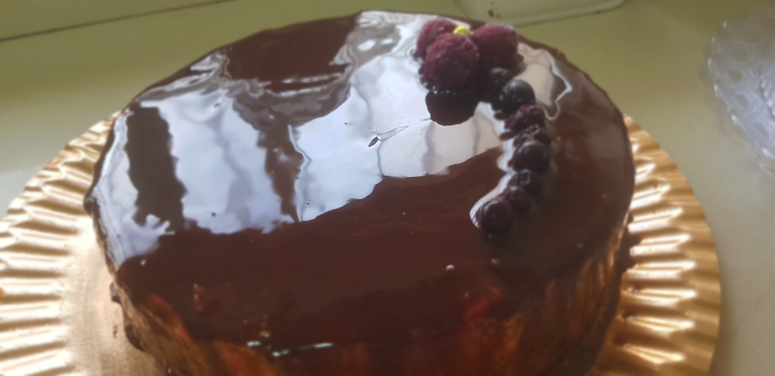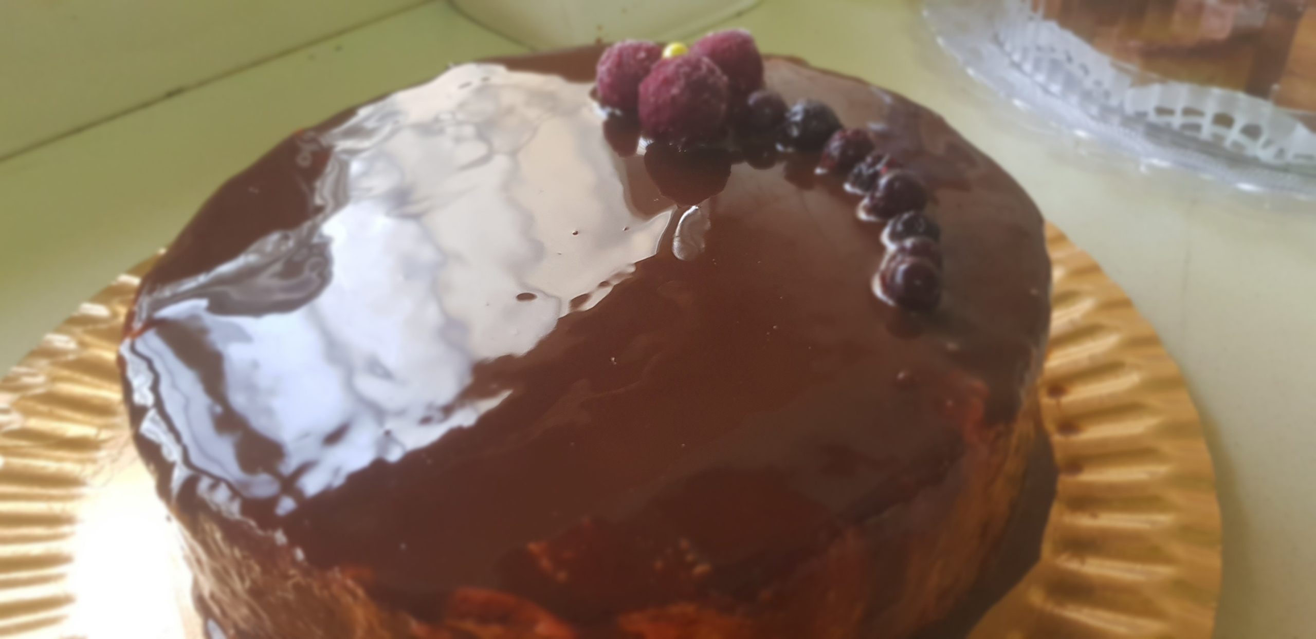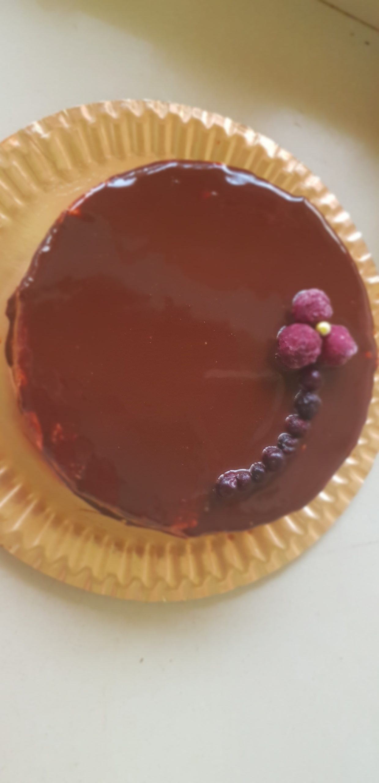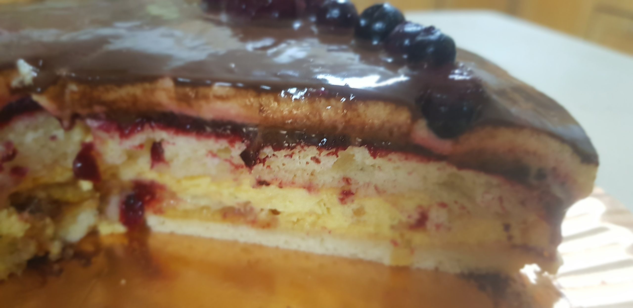 C’est un biscuit cuillère ave de la creme pattissiere , un insert aux fruits rouges et un glacage au chocolat !