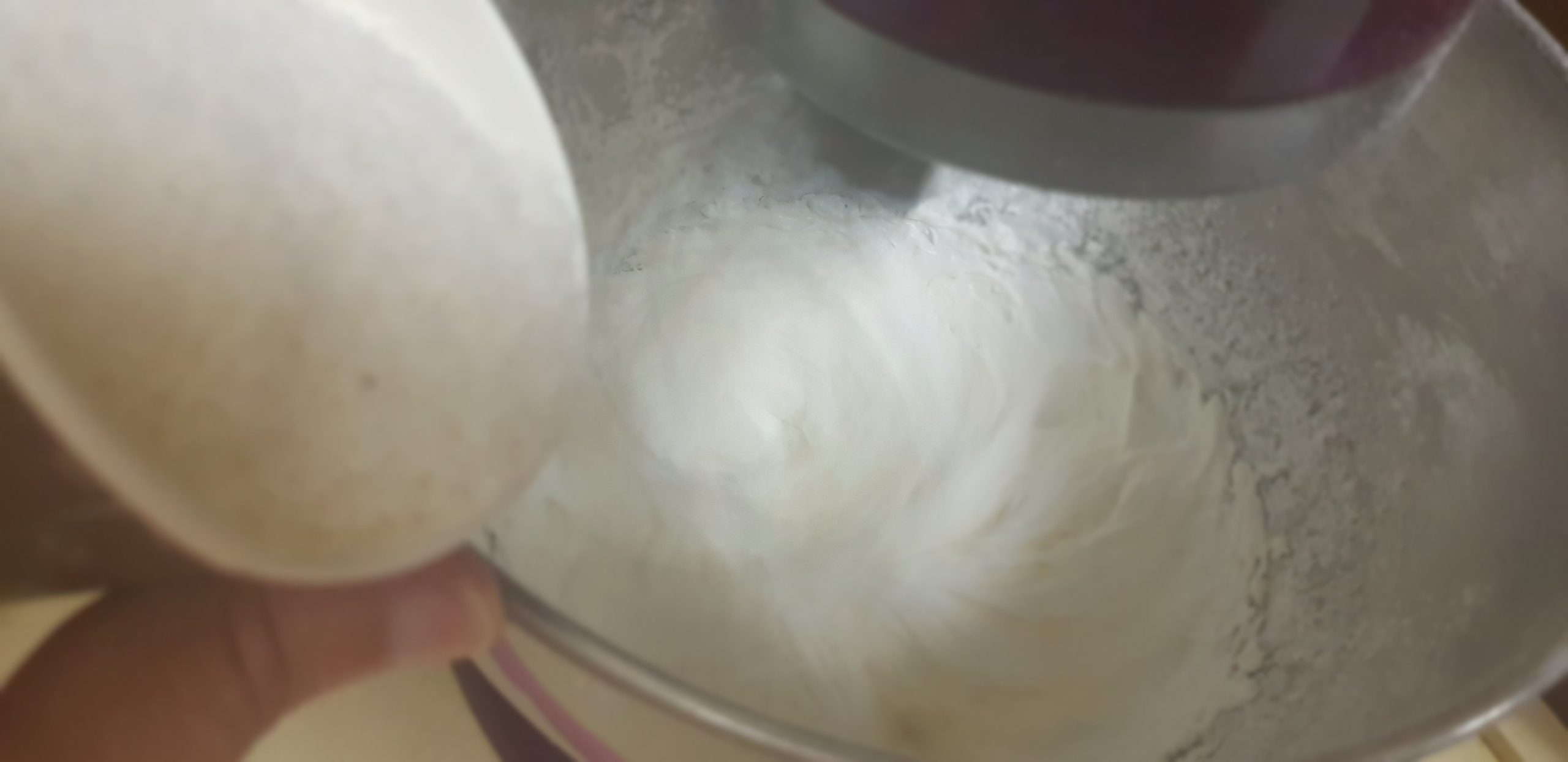 - Ajouter le sucre en poudre et mélanger jusqu’à ce que les ingrédients soient mélangés