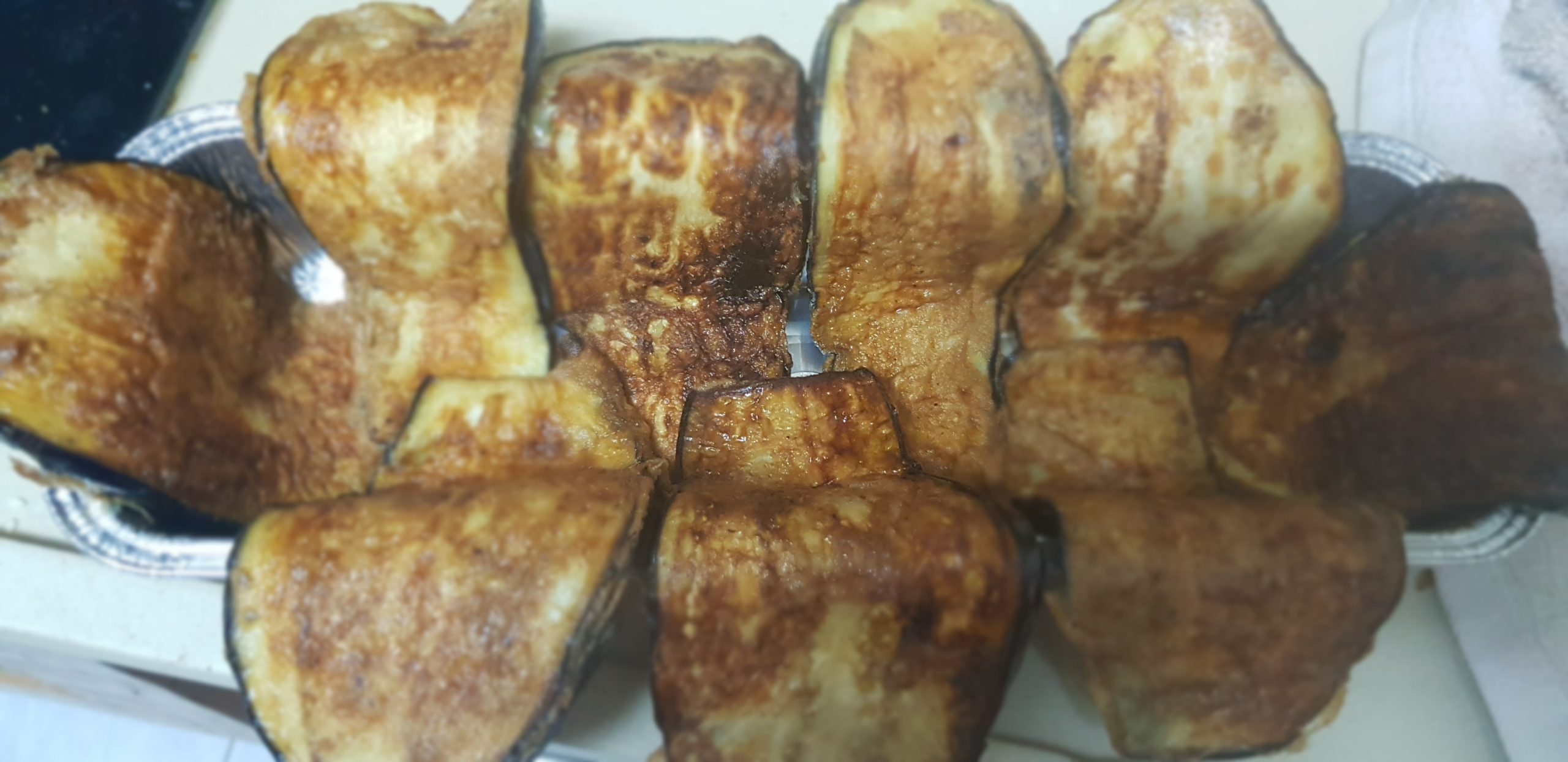 4. Lavez les aubergines et séchez-les avec une serviette de cuisine / du papier. Trempez les aubergines tranchées dans l’œuf battu avec du sel et du poivre. Faire revenir chaque tranche d’aubergines jusqu’à ce qu’elles soient dorées des deux côtés. Transférer sur du papier absorbant pour éliminer l’excès d’huile.