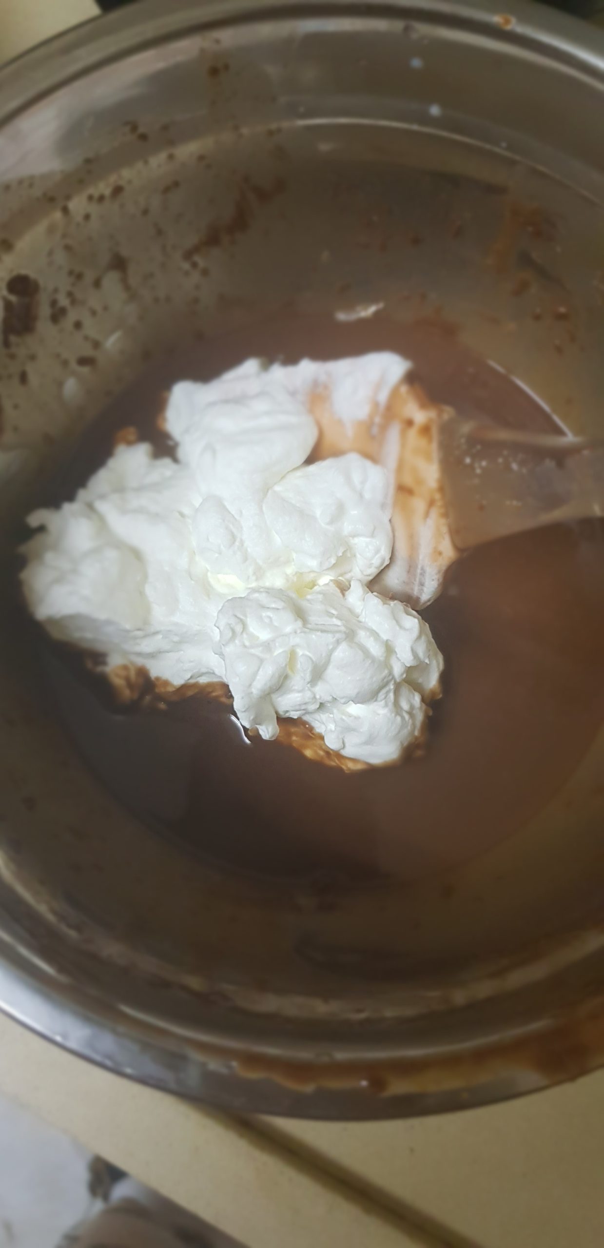 4 – Monter la crème fleurette est quand l’appareil au chocolat est à 35° l’incorporer à la crème fouettée.