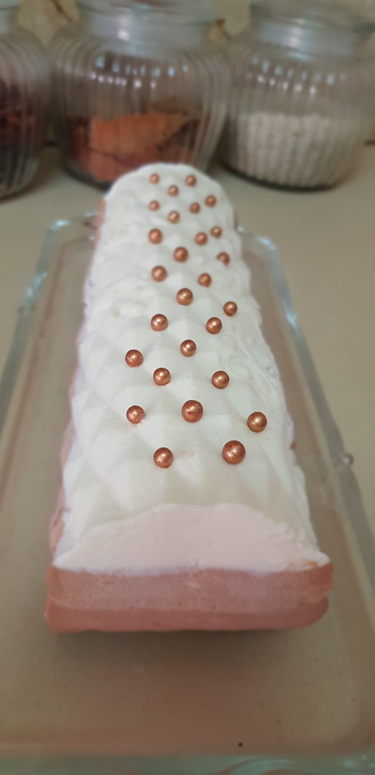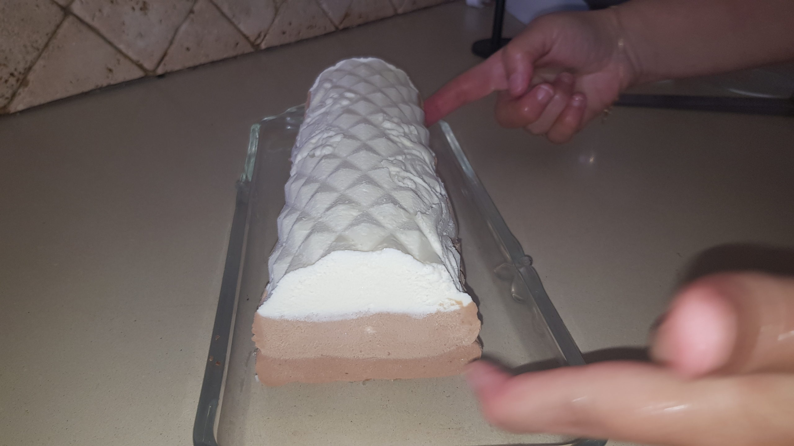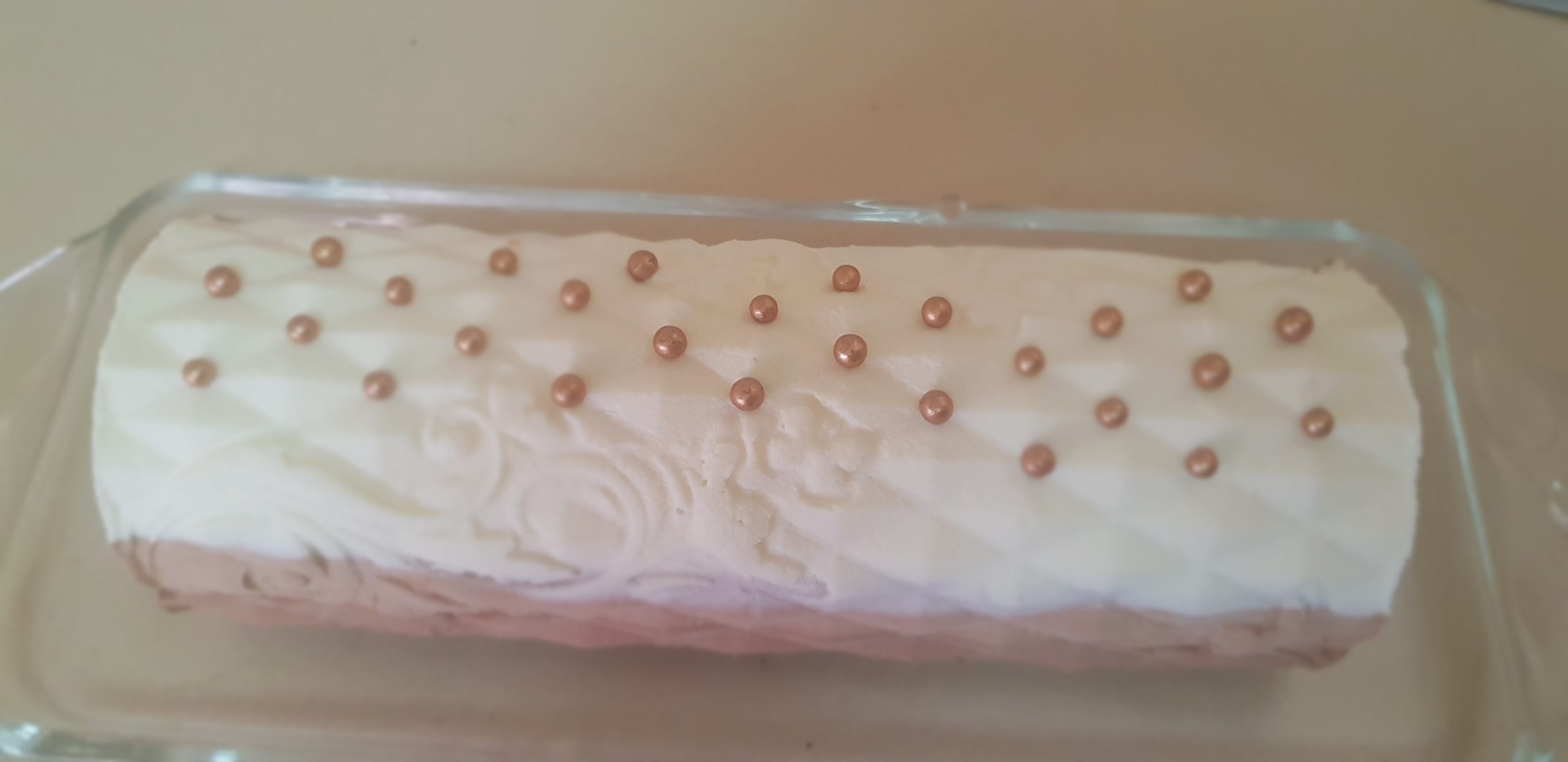 1 -Répartir la mousse au chocolat blanc au fond du moule à buche et placer au congélateur.
