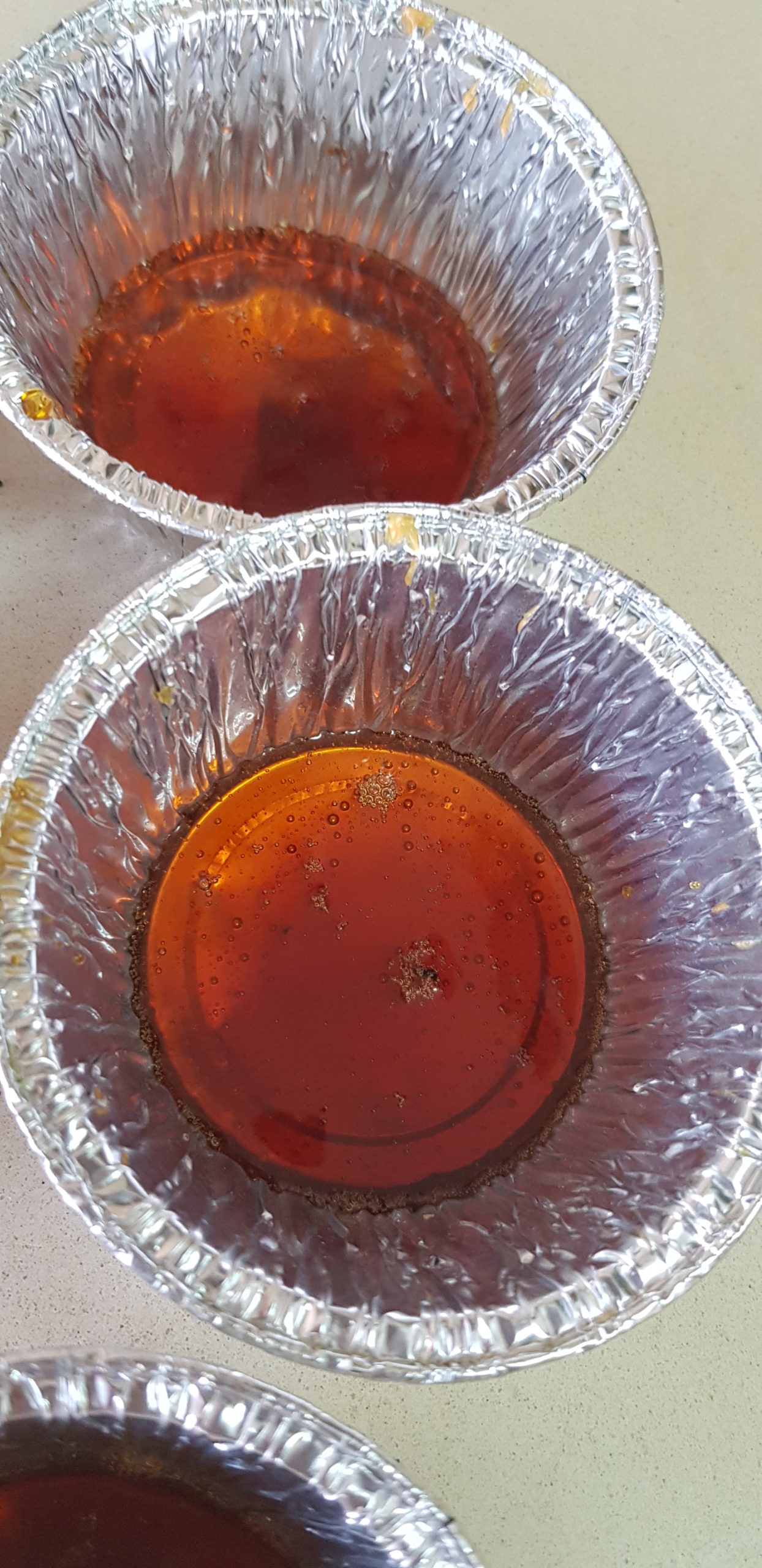 5. Versez la crème pâtissière dans les ramequins préparés, placez les ramequins dans un grand plat à rôtir (bain-marie). Ajoutez délicatement l’eau bouillante dans le bac jusqu’à ce qu’elle soit à mi-hauteur des côtés des ramequins.