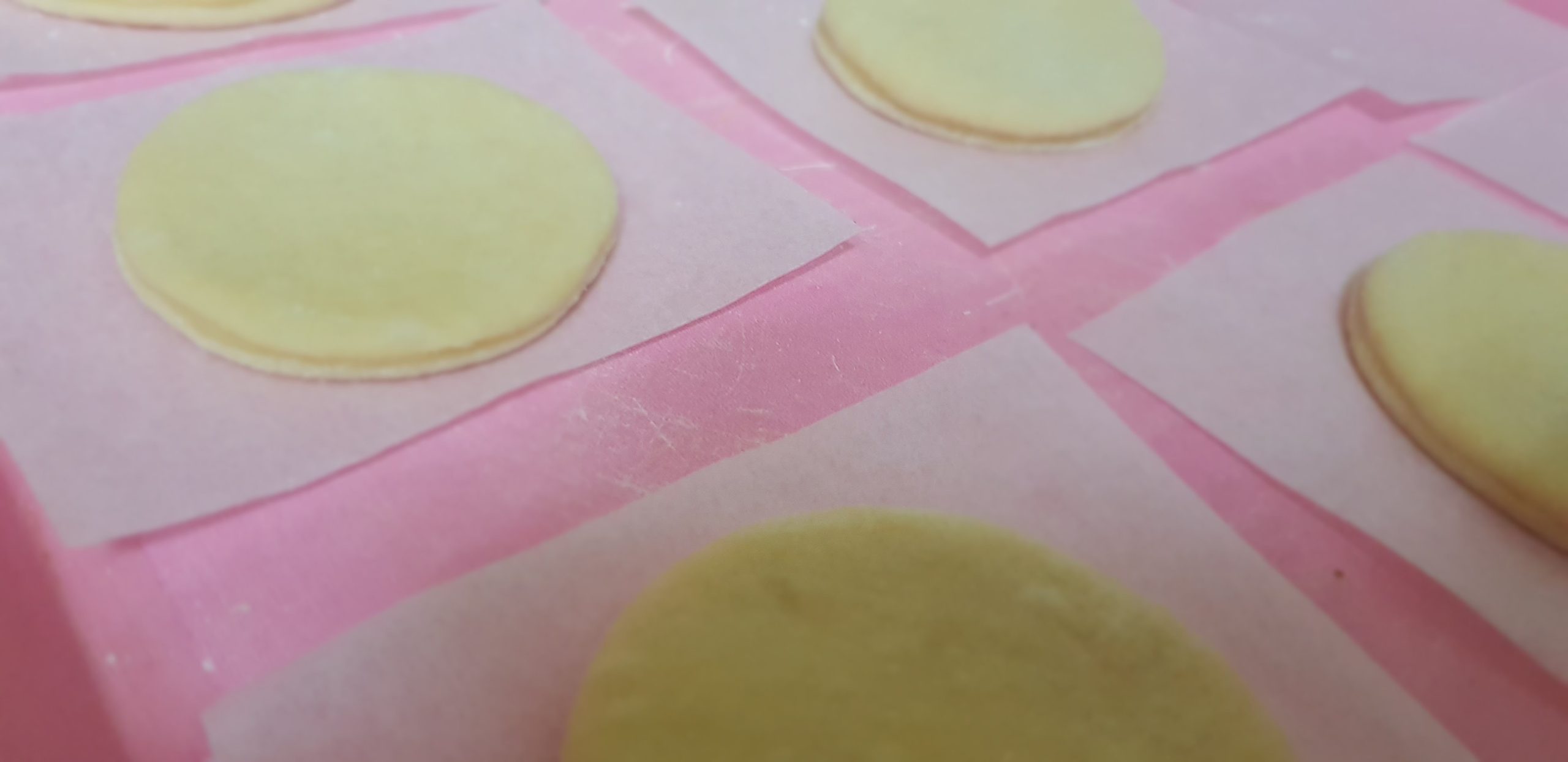 3 – Faire les beignets: sur un plan de travail fariné ou sur un tapis en silicone , abaisser la pâte à une épaisseur de 1,5 à 2 cm. Découpez les cercles avec un emporte-pièce rond fariné de 6,5 cm. Découpez des cercles et placez-les immédiatement sur des carrés de papier sulfurisé légèrement graissés.