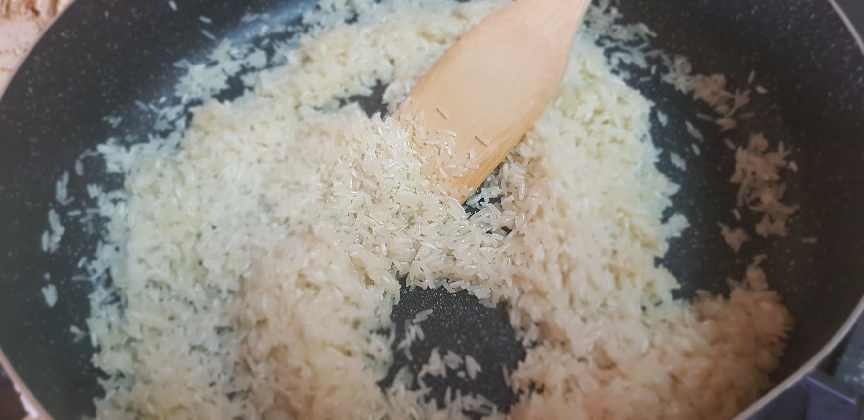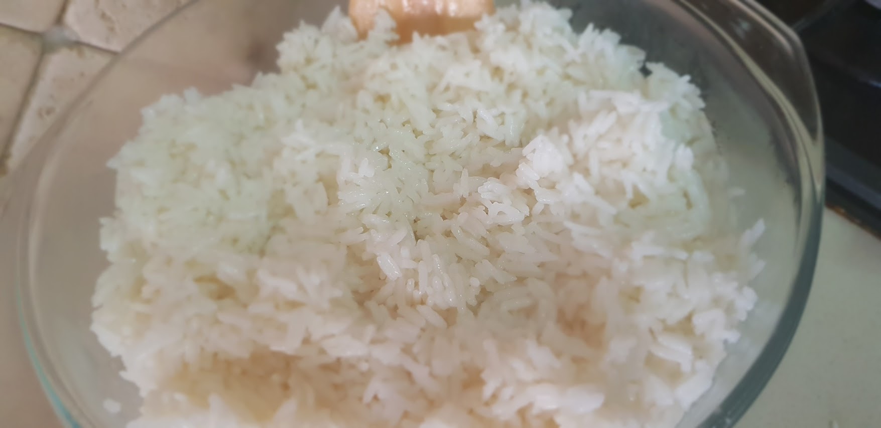 Cuire le riz dans une casserole large avec u peu d’huile et 250 gr de riz basmati rincé à l’eau clair et ajouter du sel et couvrir de 400 ml d’eau et placer le couvercle. Laisser cuire 15 minutes.