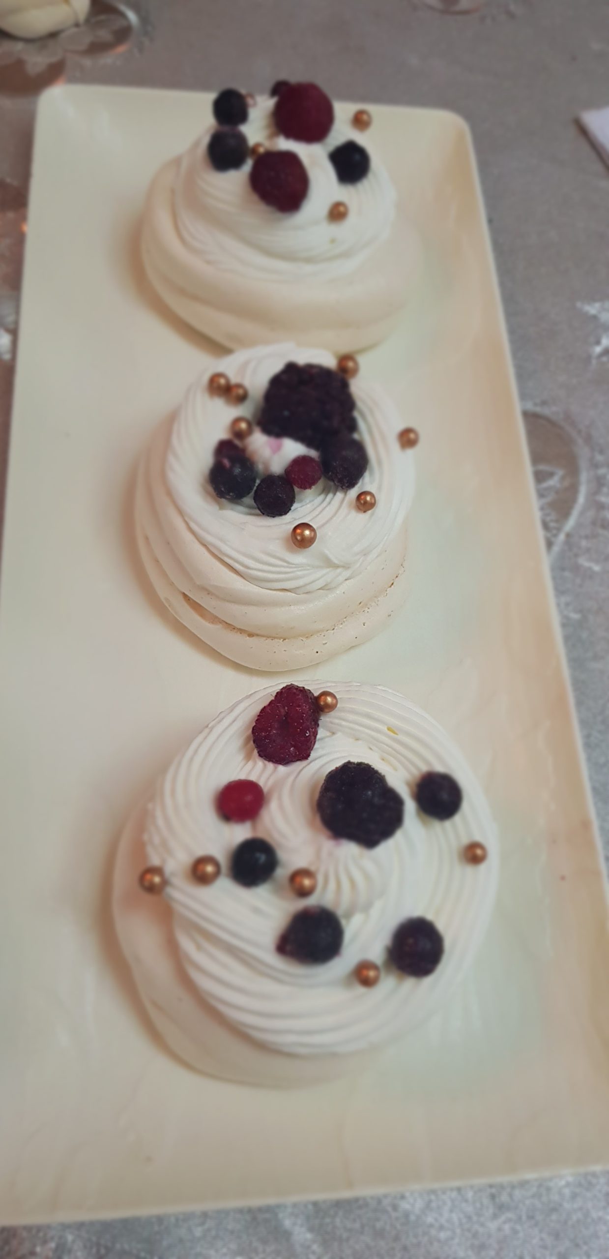 Battre les oeufs avec une pincée de sel et au bout de deux minutes, ajouter le sucre progressivement jusqu’à le que les blancs soient dures, puis baisser la vitesse au max et ajouter le reste des ingrédients petit à petit : maïzena, jus de citron et vanille.