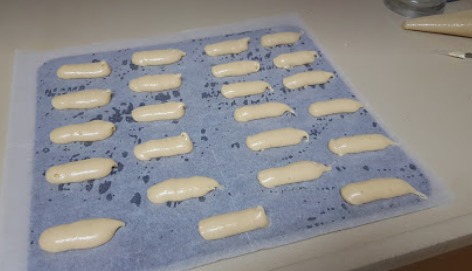 Introduire la pâte dans une poche à douille munie d’une douille lisse large puis dresser des choux ou des éclairs.