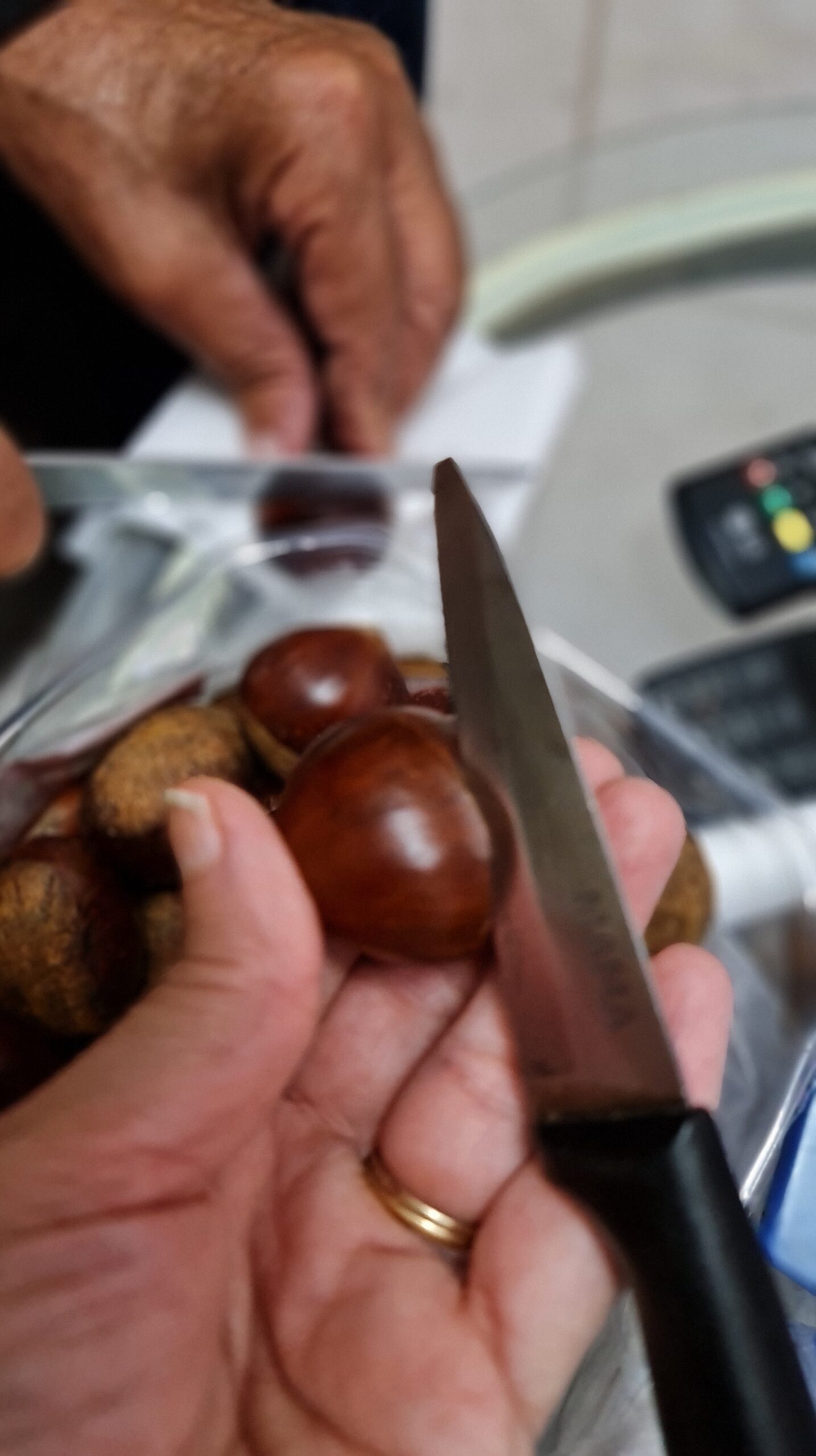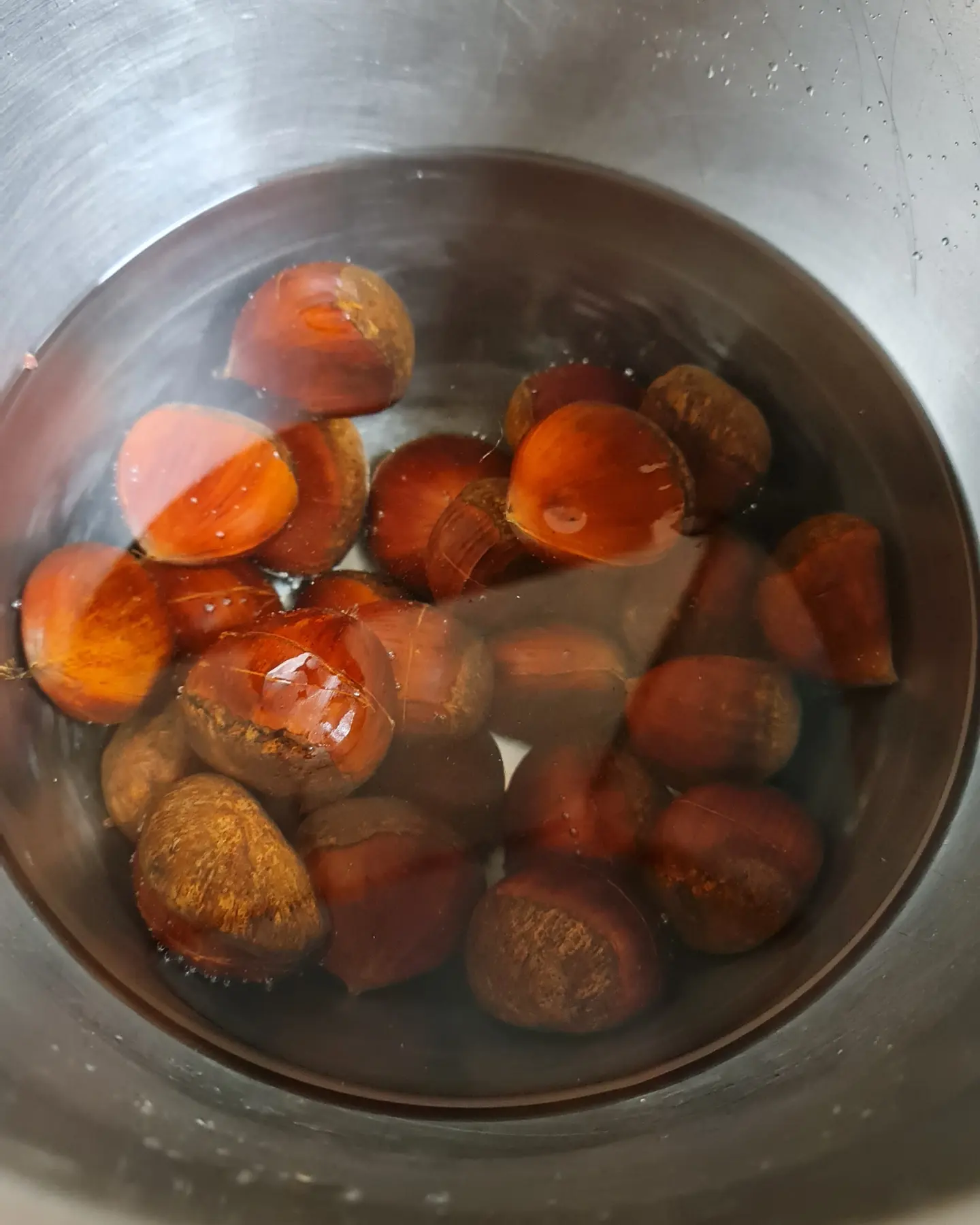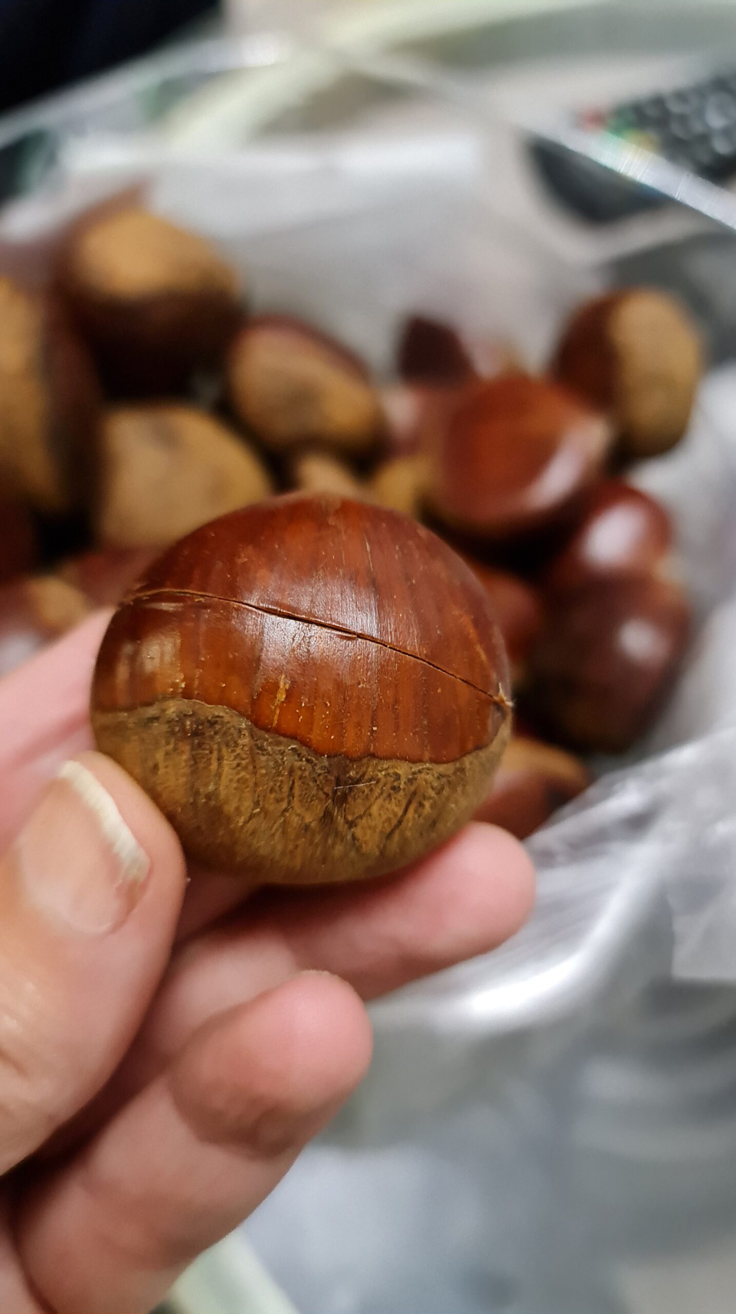 Les marrons sont bons quand ils sont chauds et encore mieux quand ils sont préparés avec amour, pour cela il suffit de les fendre dans la largeur, les laisser tremper une heure dans de l’eau avec une cuillère à soupe de bicarbonate et ensuite les faire cuire au four 30 minutes à 220 degrés !