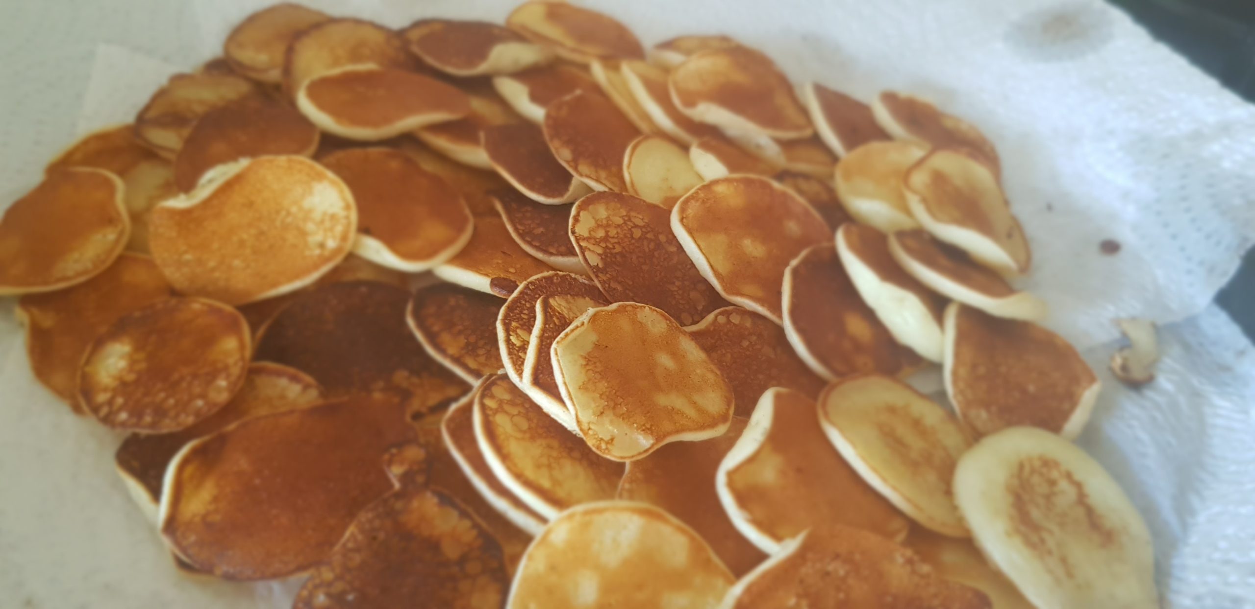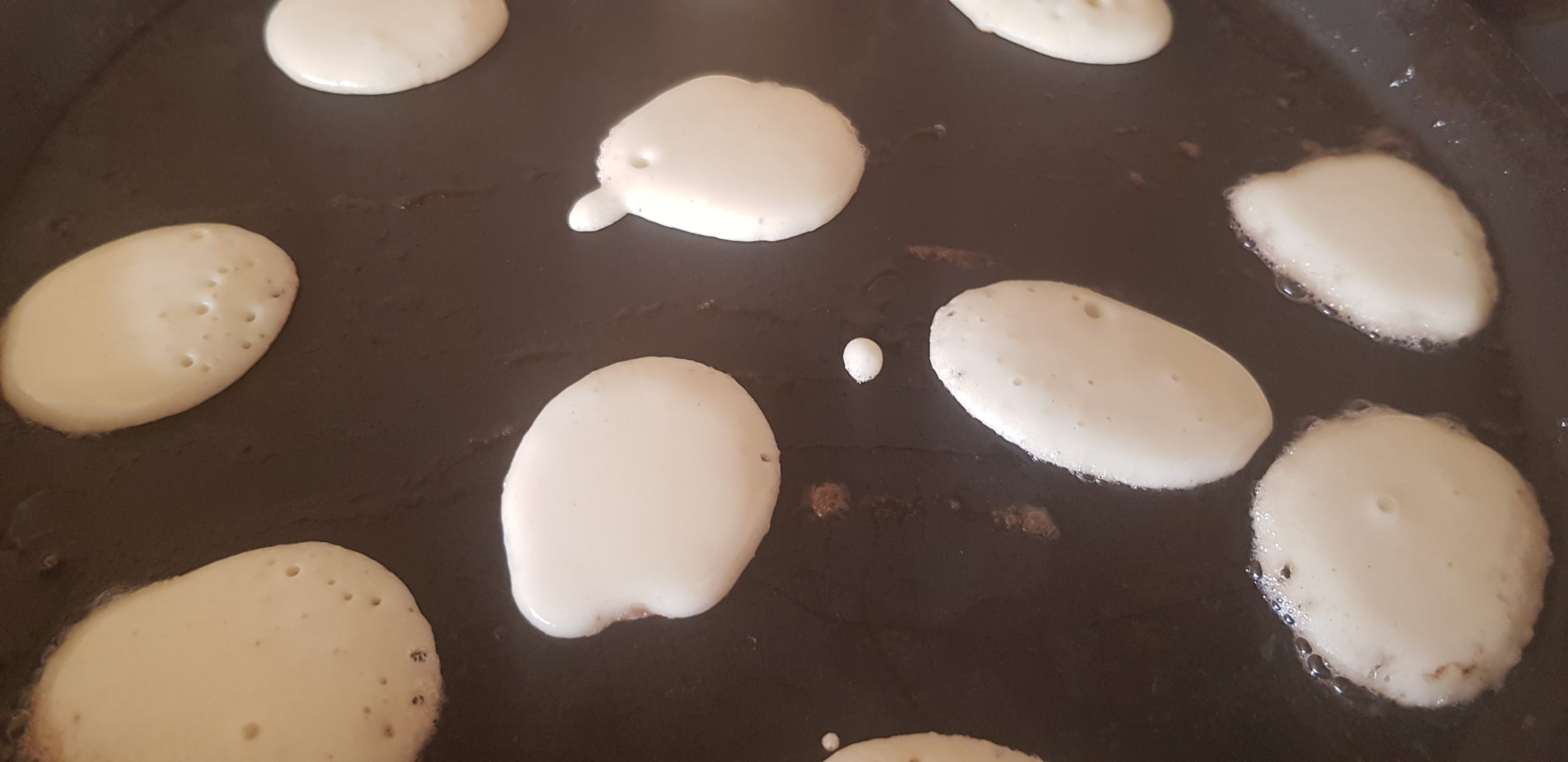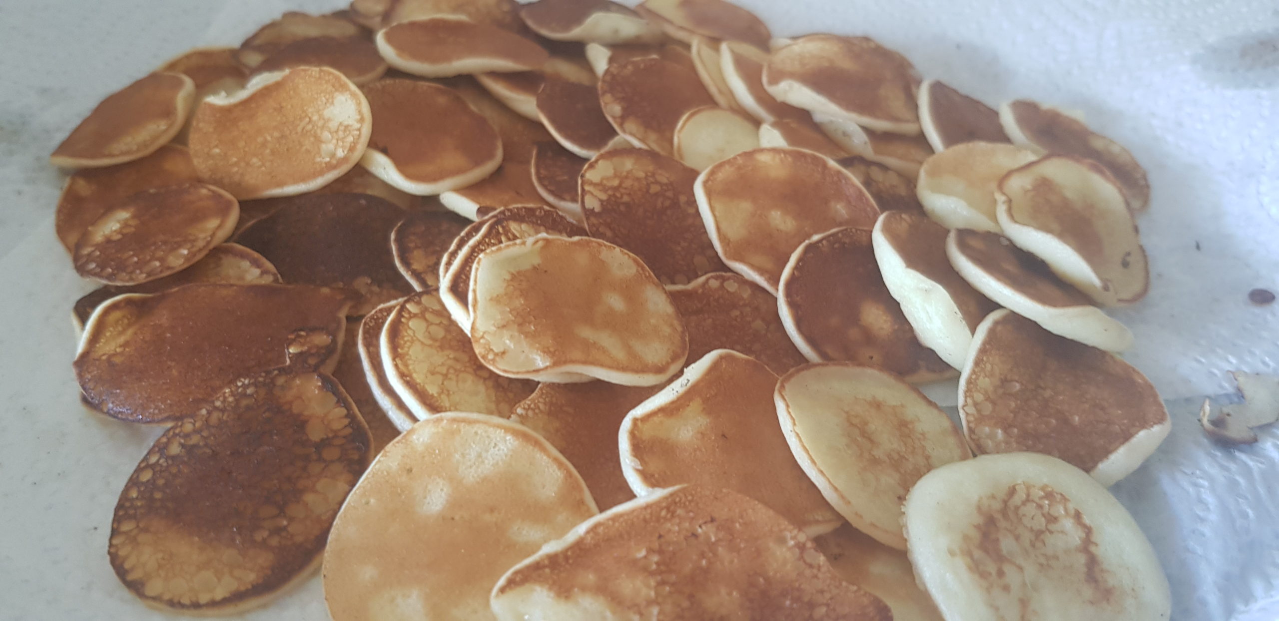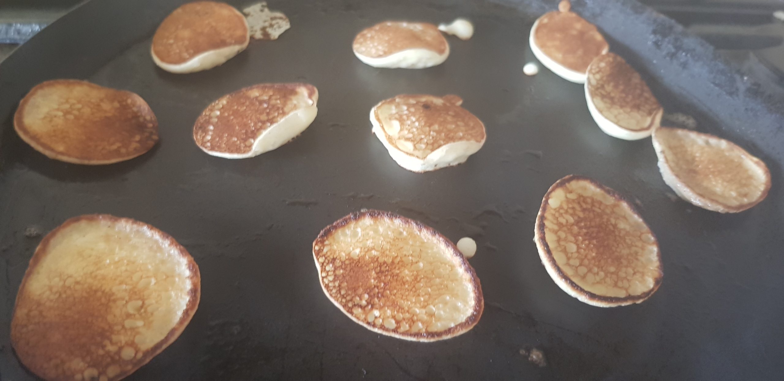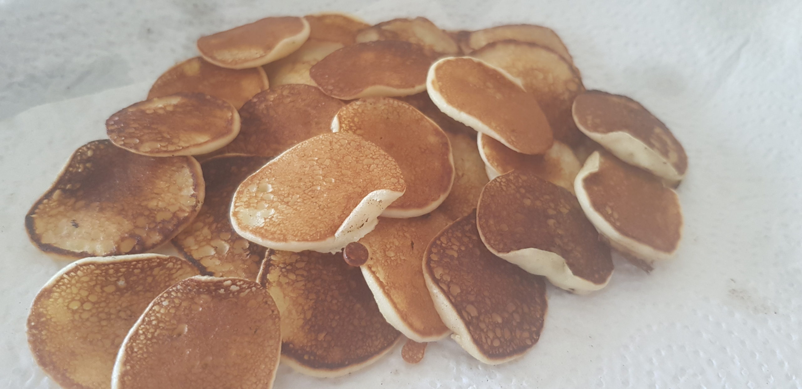 Lorsque des bulles commencent à se former à la surface des mini-crêpes (en raison de leur taille, cela se produit rapidement), retournez-les . Après environ une demi-minute, lorsque l’autre côté est doré, déposer dans une assiette.