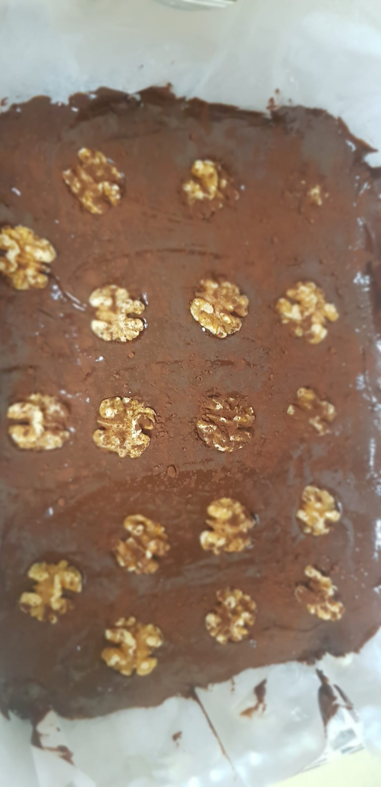 Le mélange est versé sur un moule rectangulaire avec du papier sulfurisé graissé.