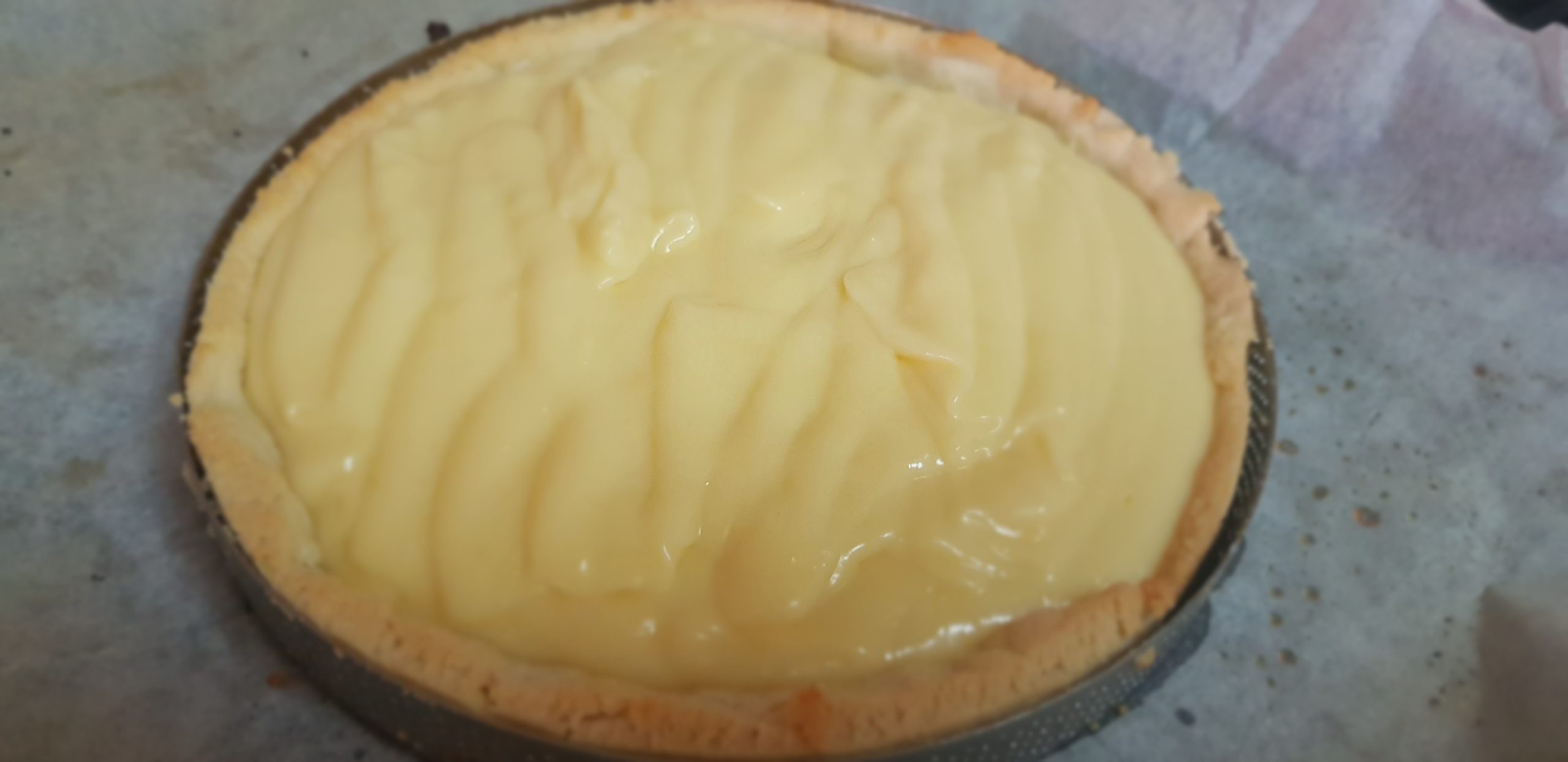 3 – Déposez la crème sur le fond de tarte