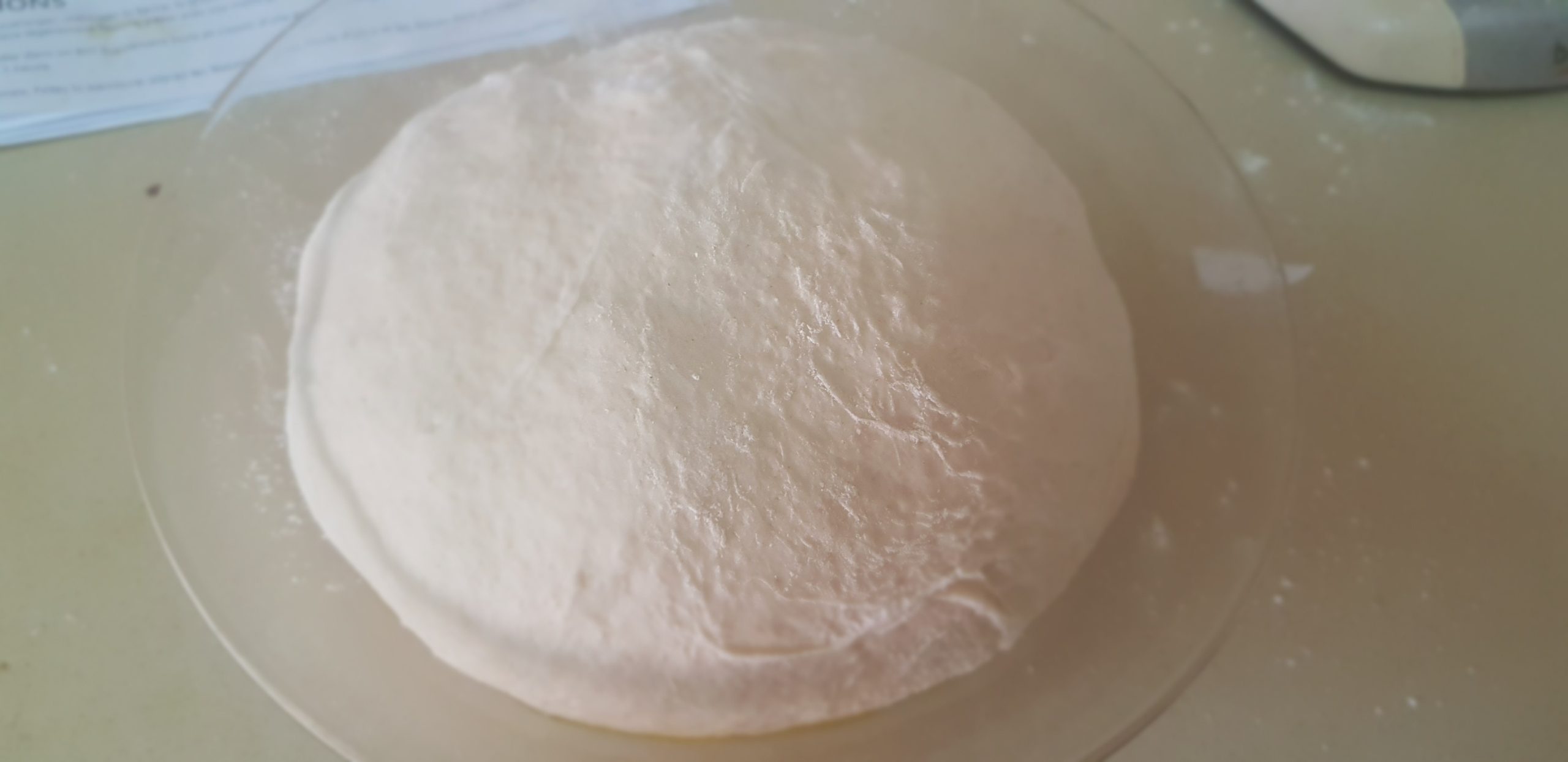 2. Transférer la pâte dans un bol légèrement huilé et couvrir d’une pellicule plastique. Laisser lever la pâte jusqu’à ce qu’elle double de volume, environ 1 heure.