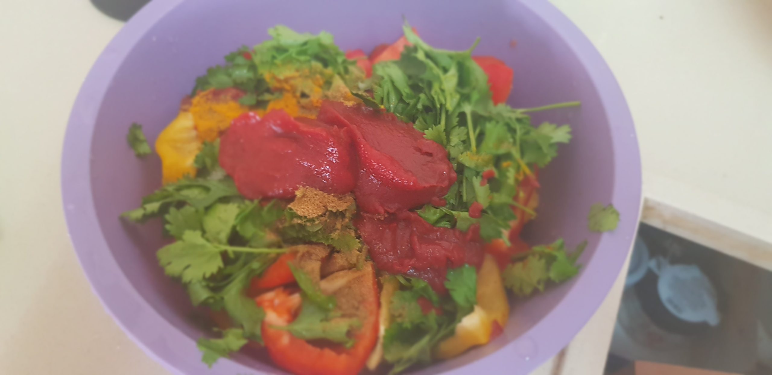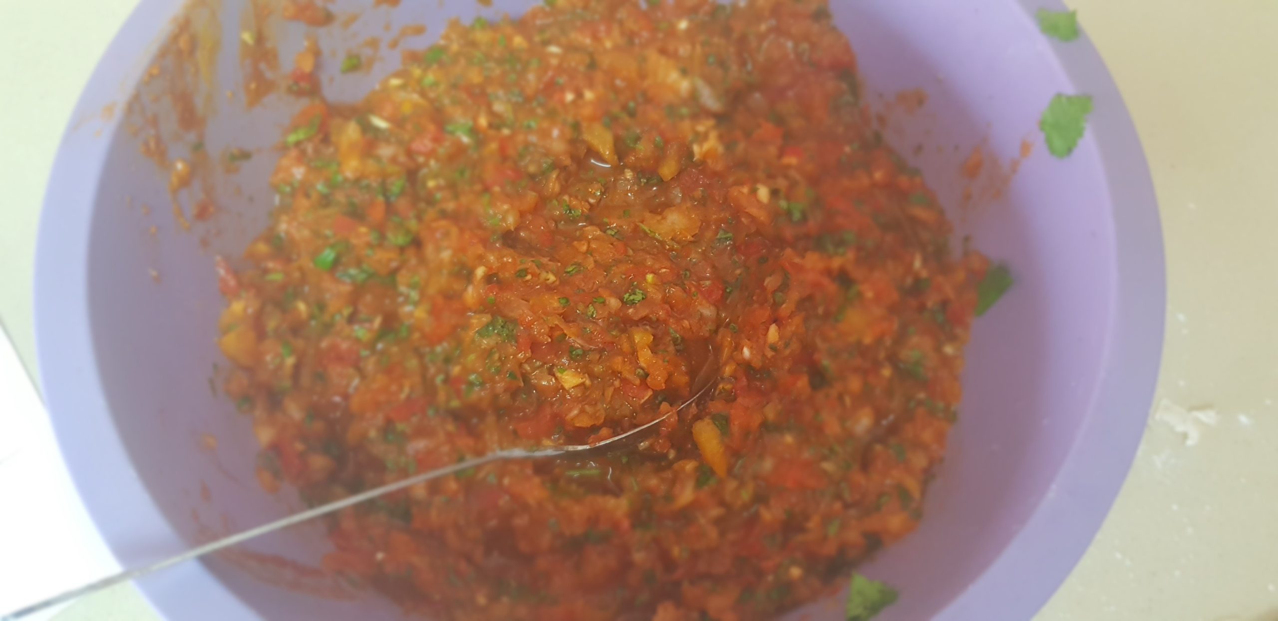 3. Pendant ce temps, faites la garniture: placez les légumes hachés, l’huile d’olive et les épices dans un robot culinaire et mélangez. Transférer dans un grand bol avec le bœuf haché et bien mélanger. Réserver 10 à 15 minutes. Puis égouttez les liquides en excès.