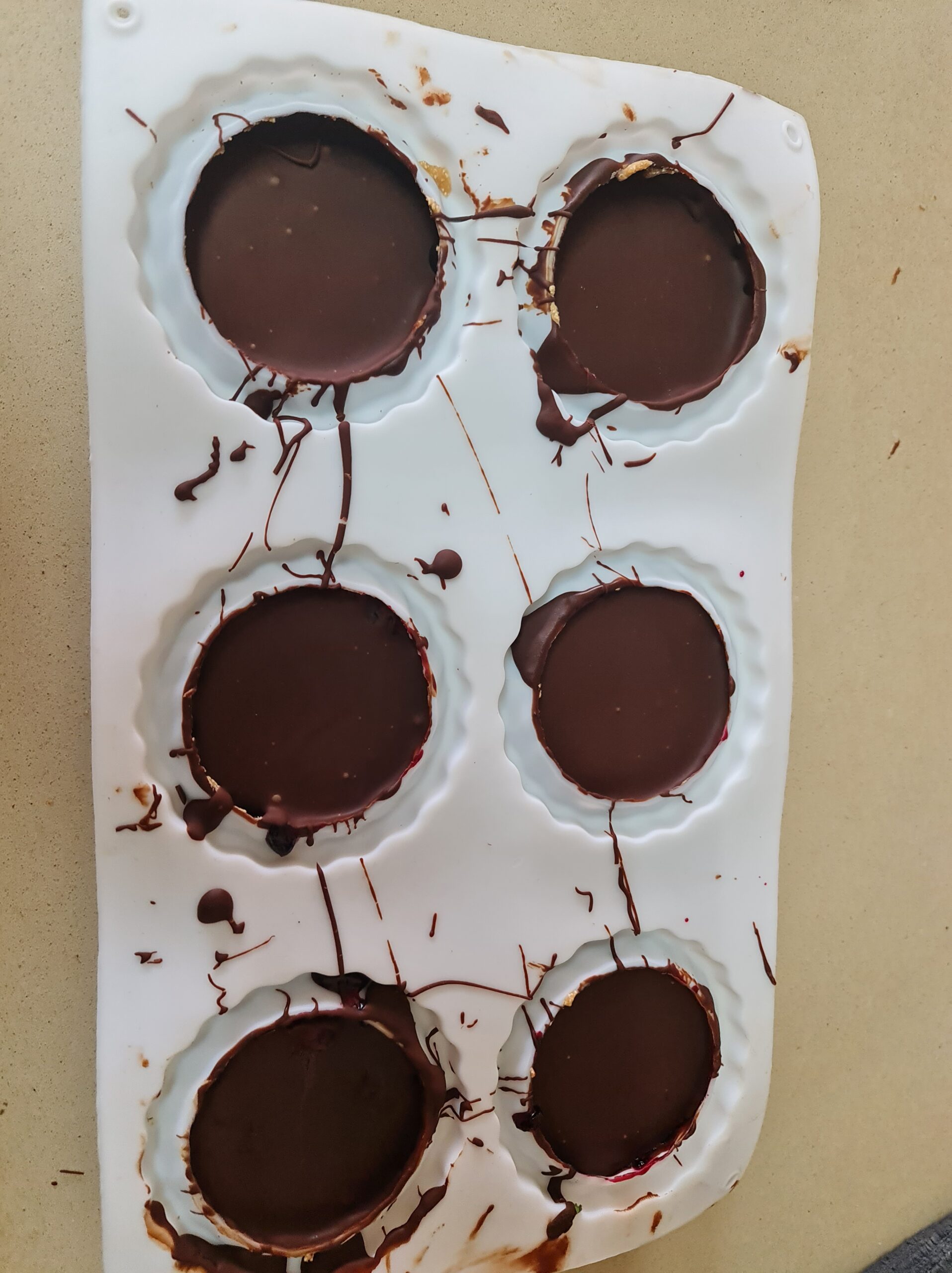 Faire fondre le reste de chocolat et recouvrir les Cups avec.