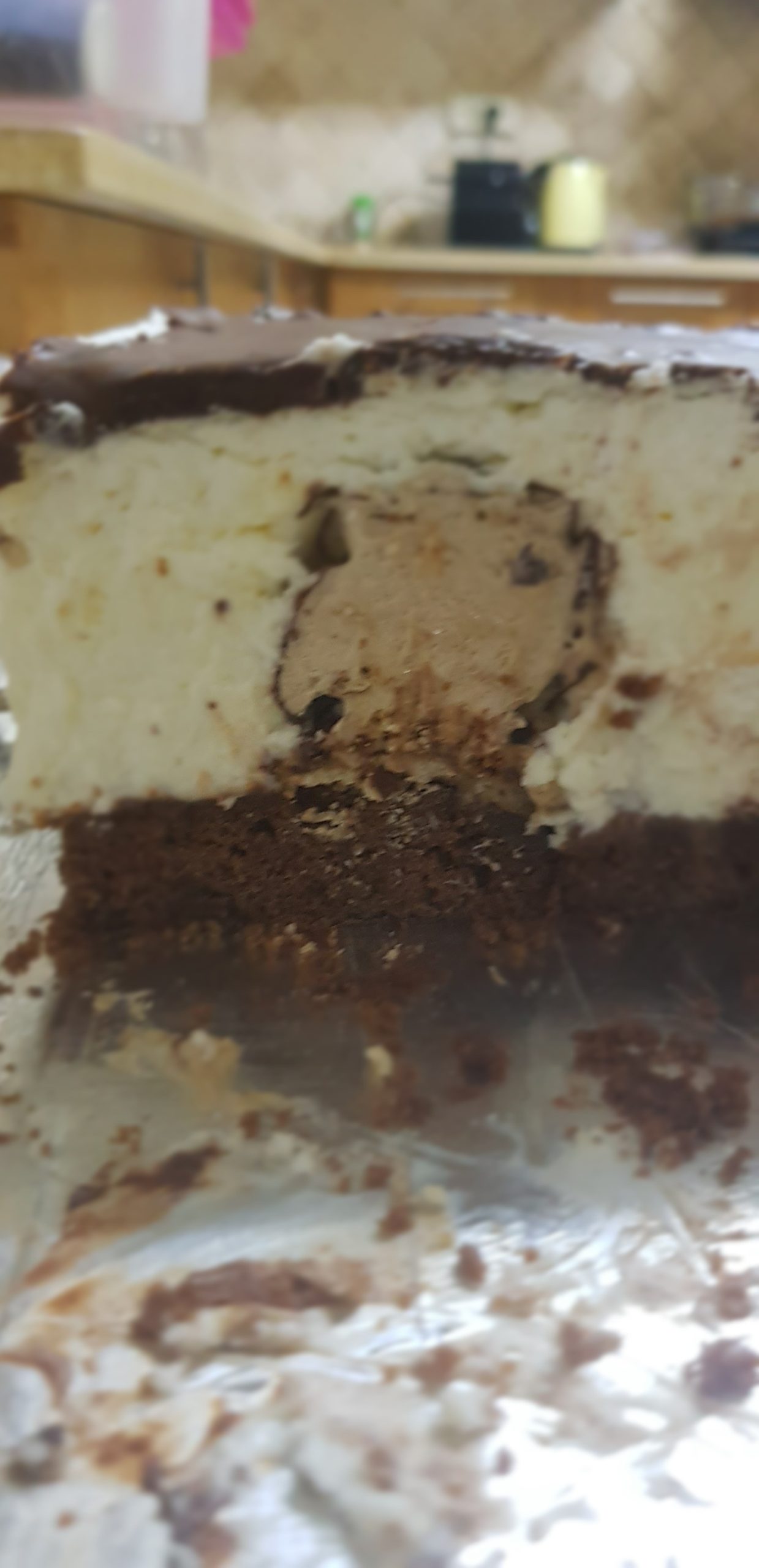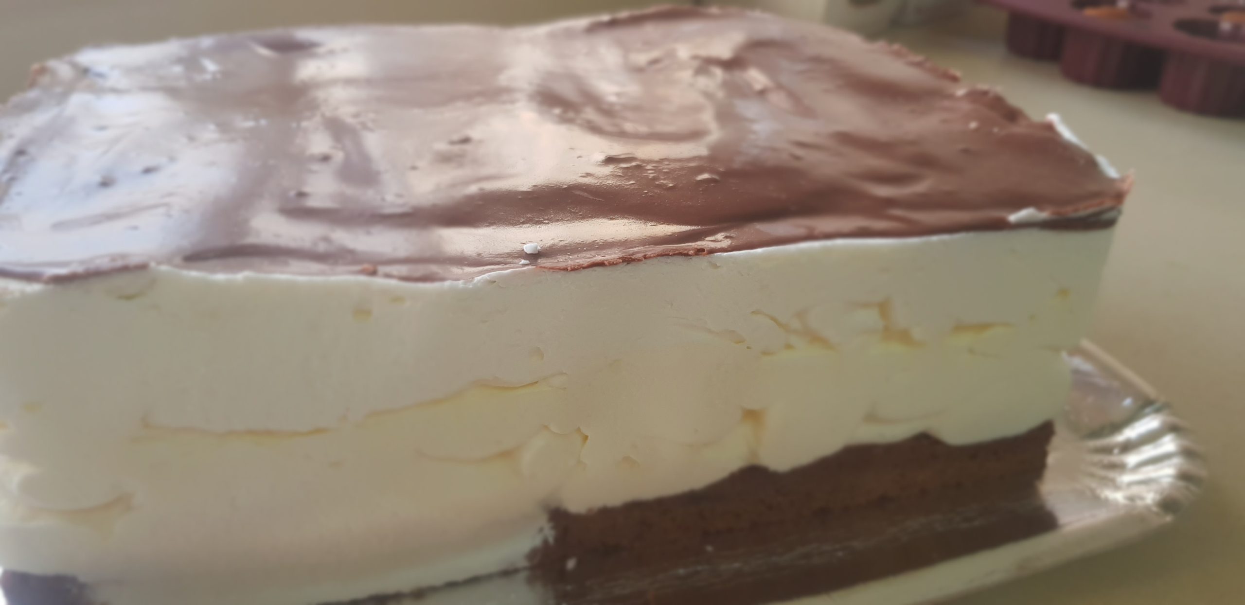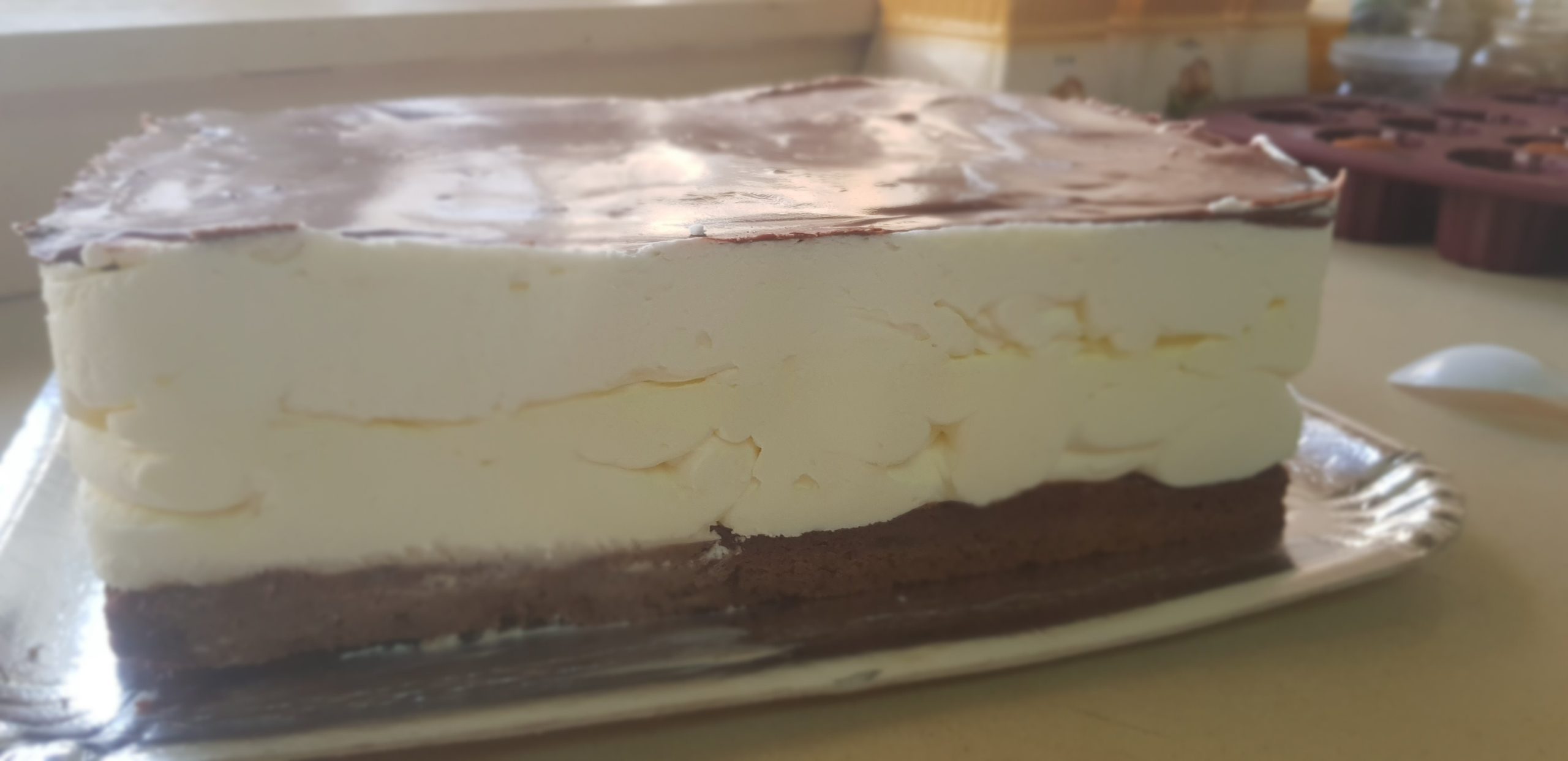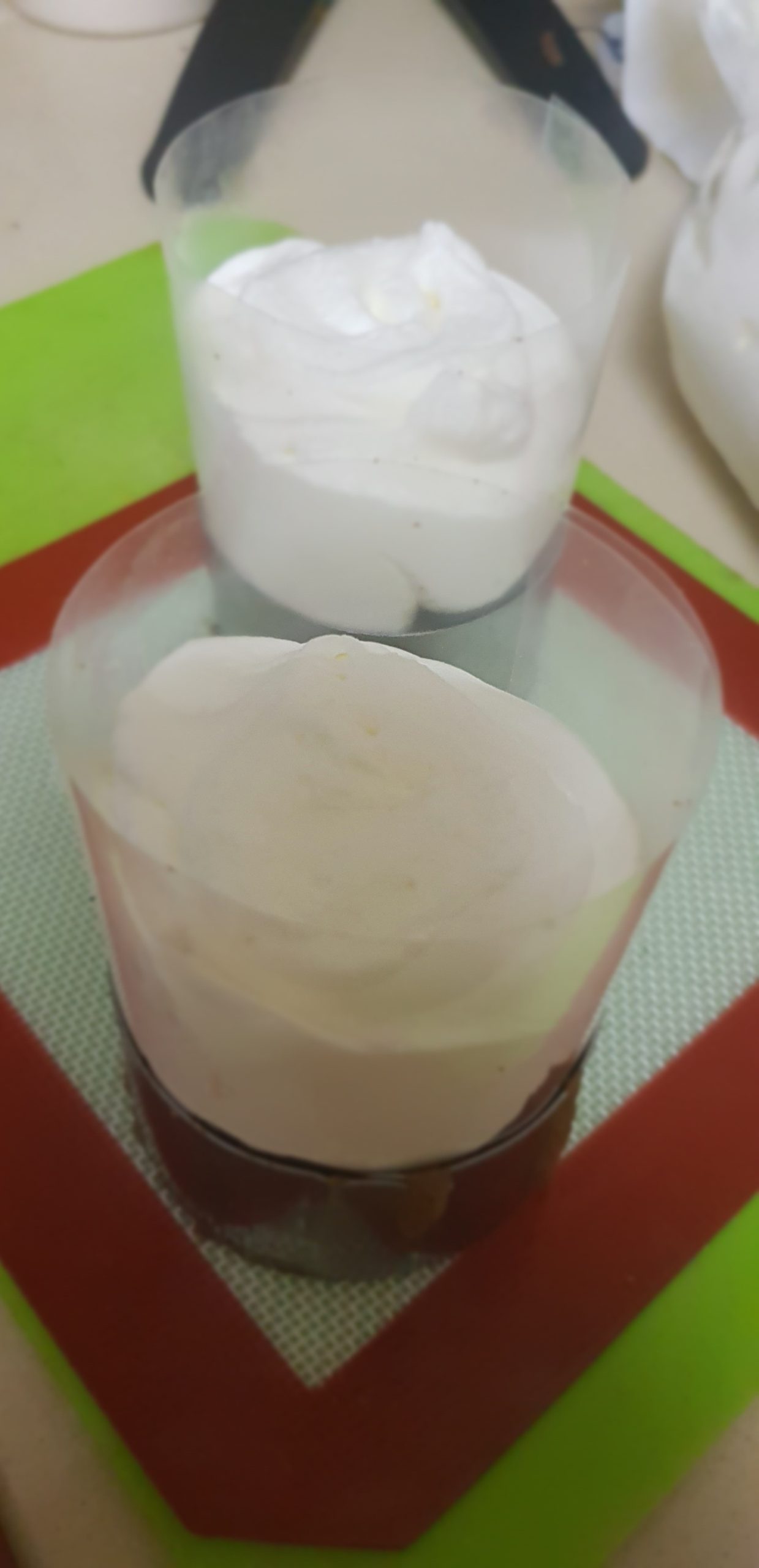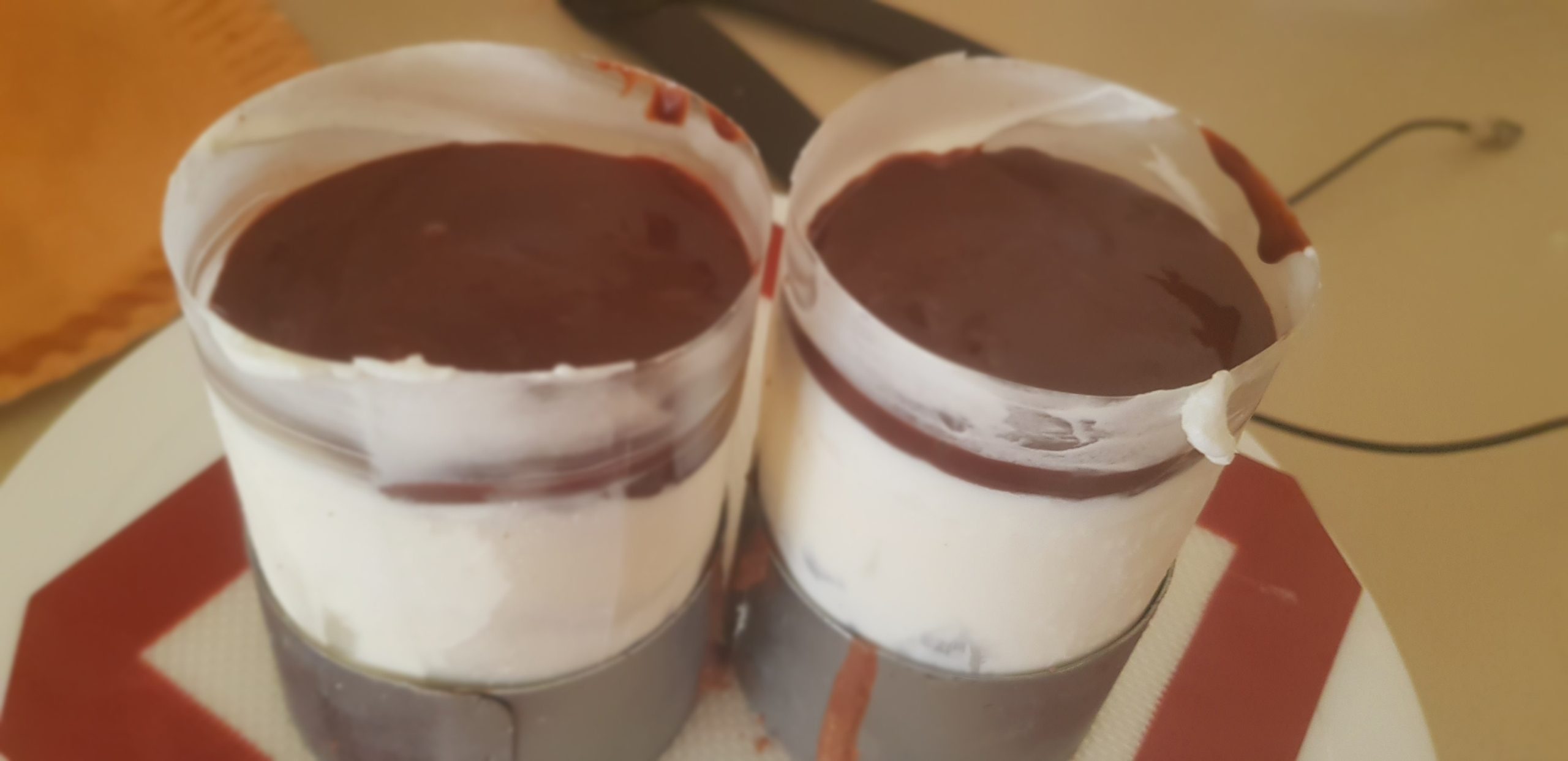 Pour cette pâtisserie, il faudra un brownie, des crumbo, un appareil, chantilly et mascarpone. J’ai fait un grand gâteau et deux petits pour mon papa qui est en confinement suite au virus.