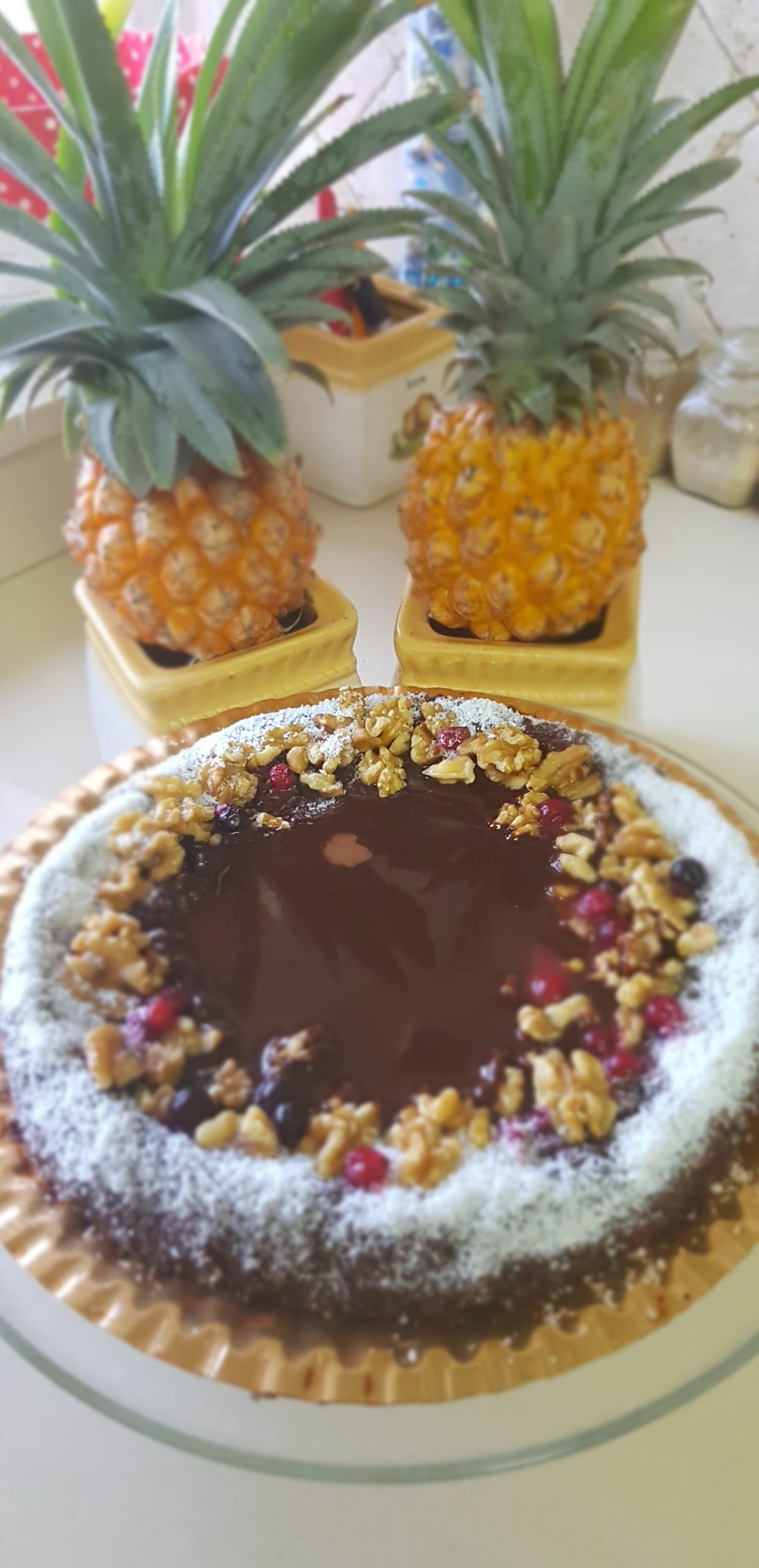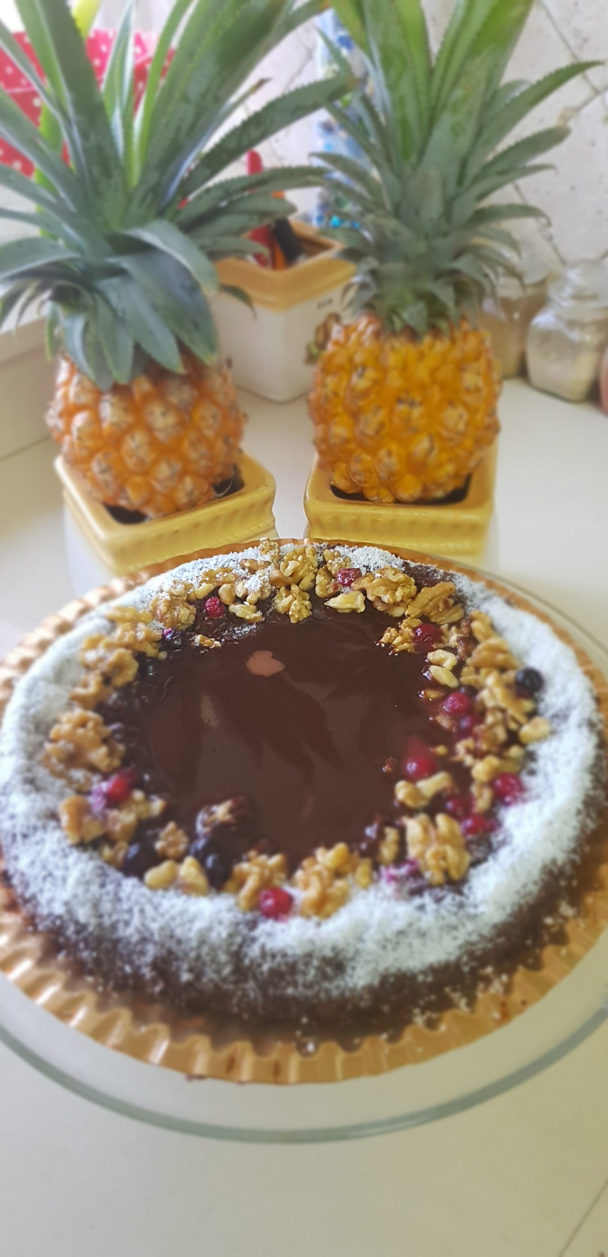 Quelques fruits rouges et cerneaux de noix et coco râpées pour la déco