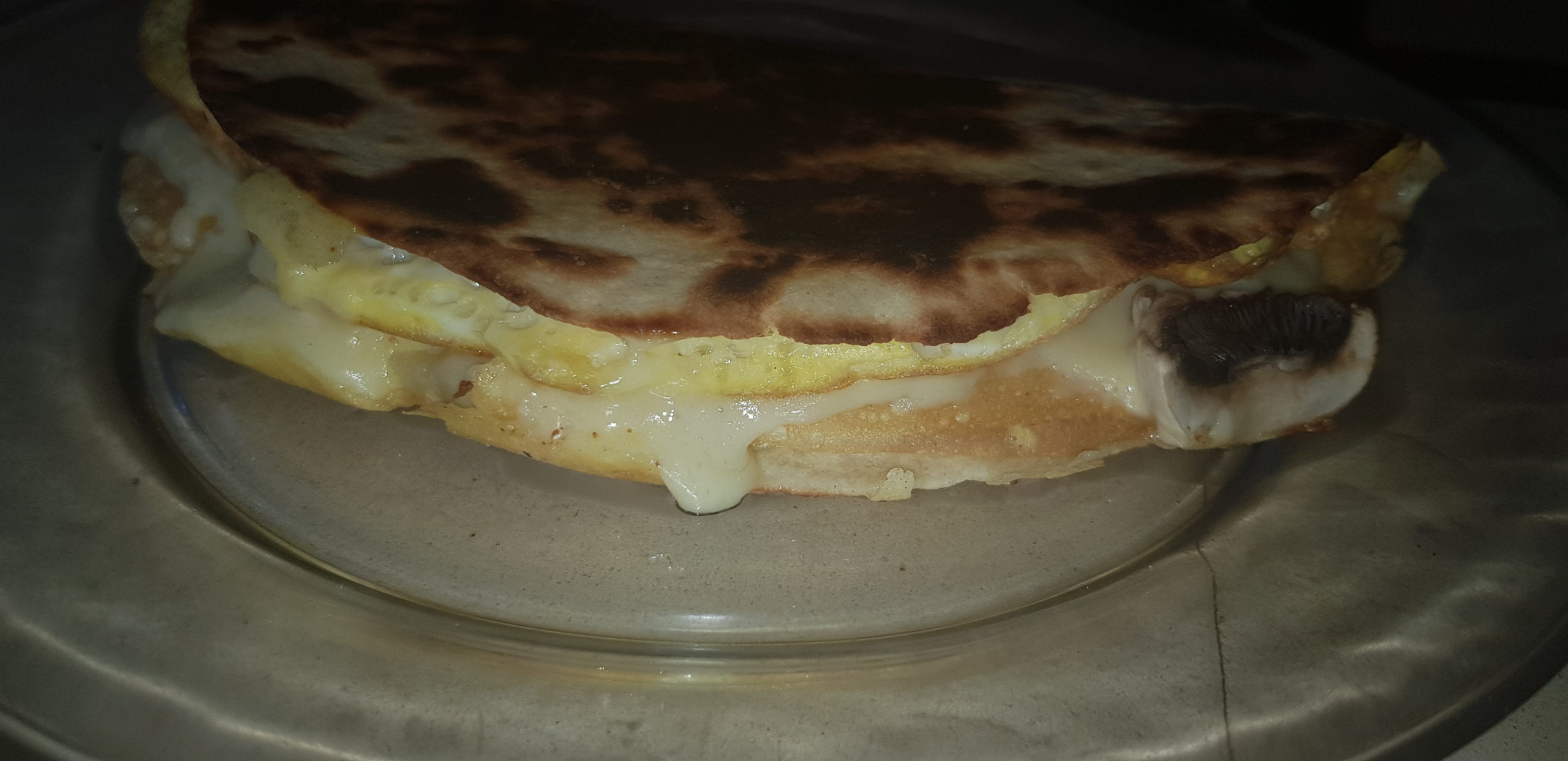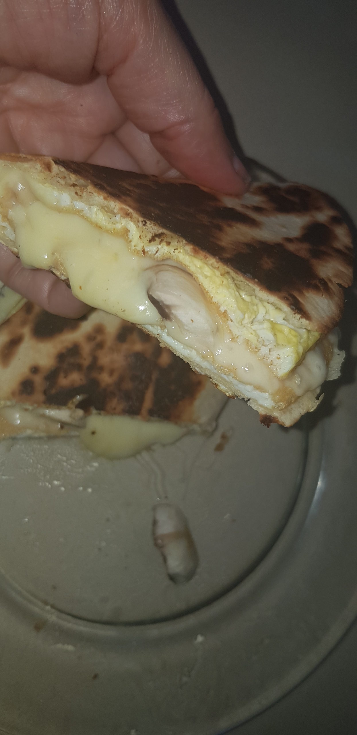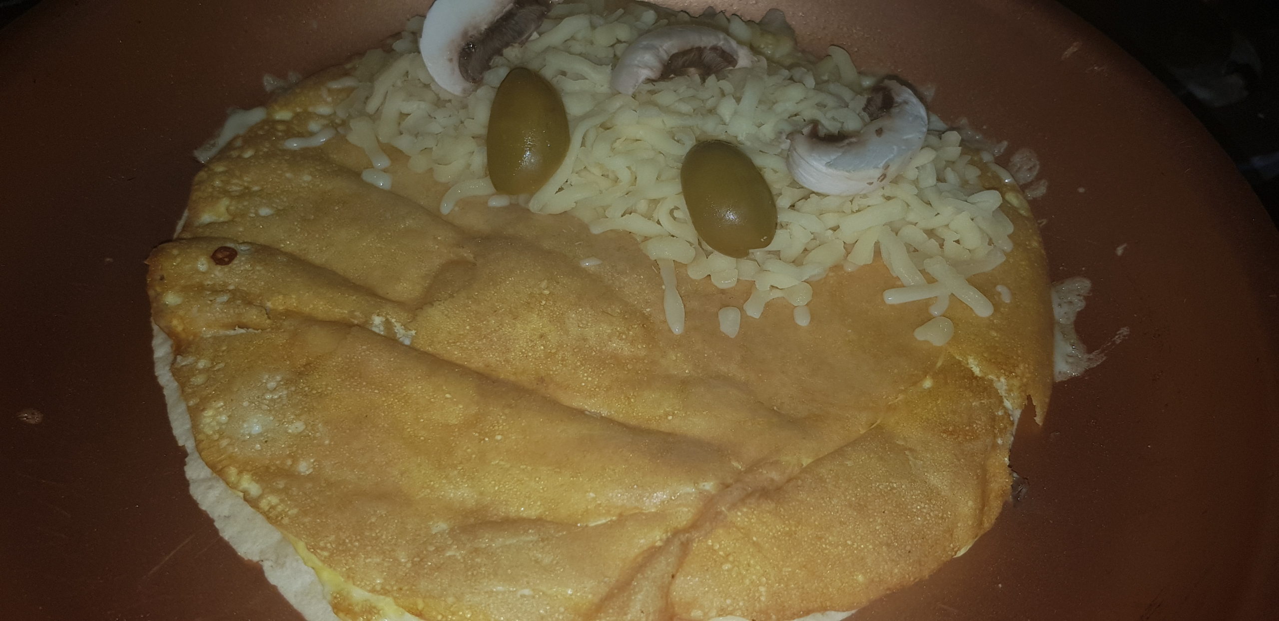 Placer dan la moitié du Takos, du fromage, olive, champignons, ( tous ce que vous aimez) et refermer et laisser brunir des deux cotés et servir !