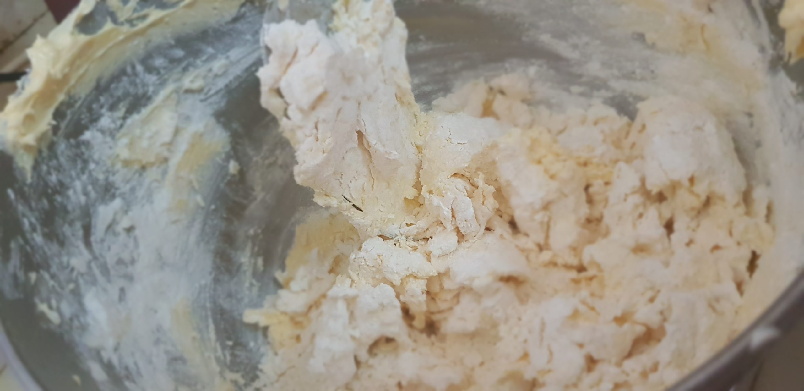 Ne pas trop travailler la pâte qui doit être un peu collante, et terminer à la main et placer la pâte au réfrigérateur .