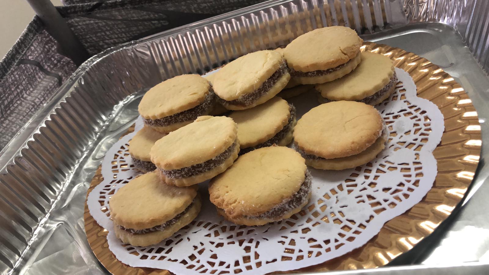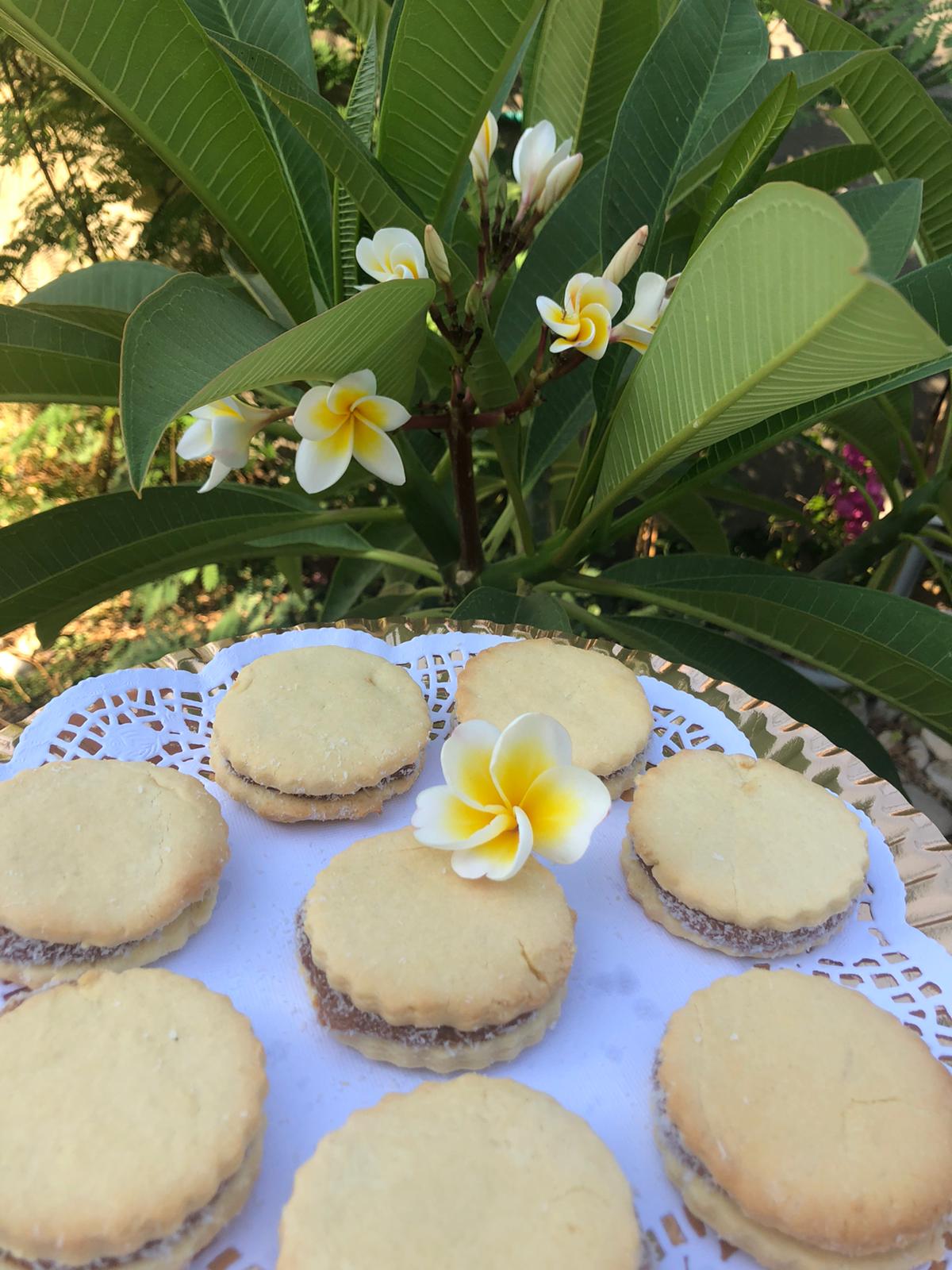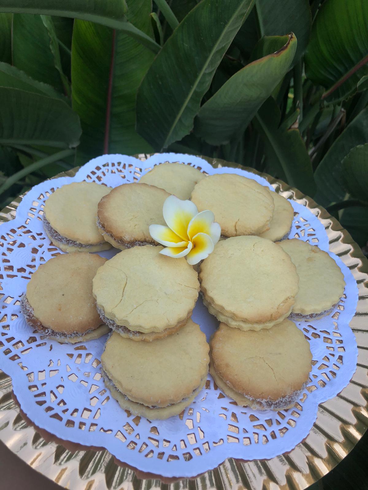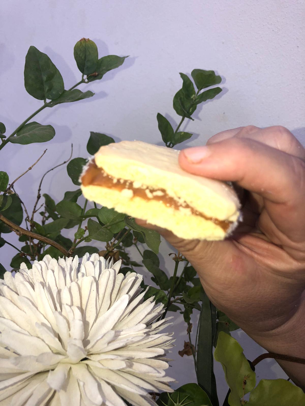 Des que les biscuits seront refroidis, garnir d’une 1/2 cuillère à café de Ribat Halav , ajouter le deuxième biscuit puis la noix de coco.
