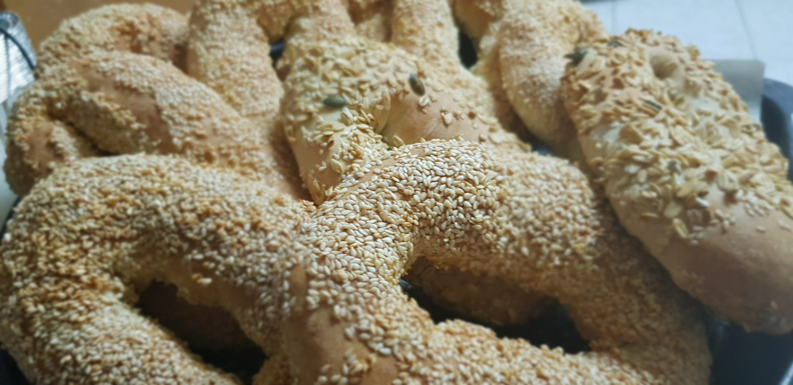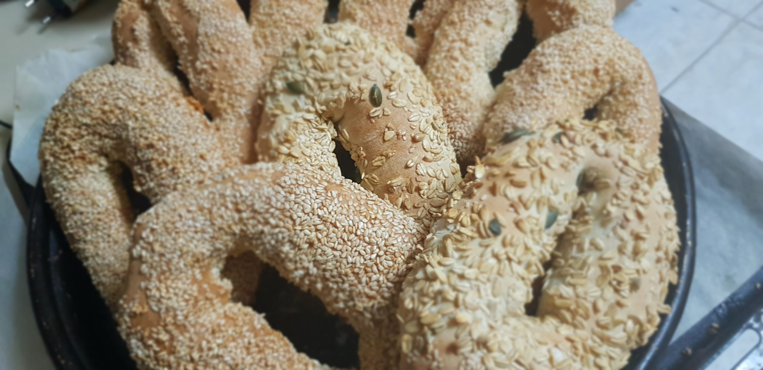 Les bagels de Jérusalem ou bagels au sésame sont des bagels très populaires à Jérusalem. Ces bagels sont croustillants à l’extérieur et moelleux à l’intérieur et ils sont enrobés de graines de sésame. Moi je rajoute d’autres graines, comme vous verrez dans les images de la recette . Si vous aimez essayer de nouvelles recettes de pain à la maison, c’est une recette incontournable.