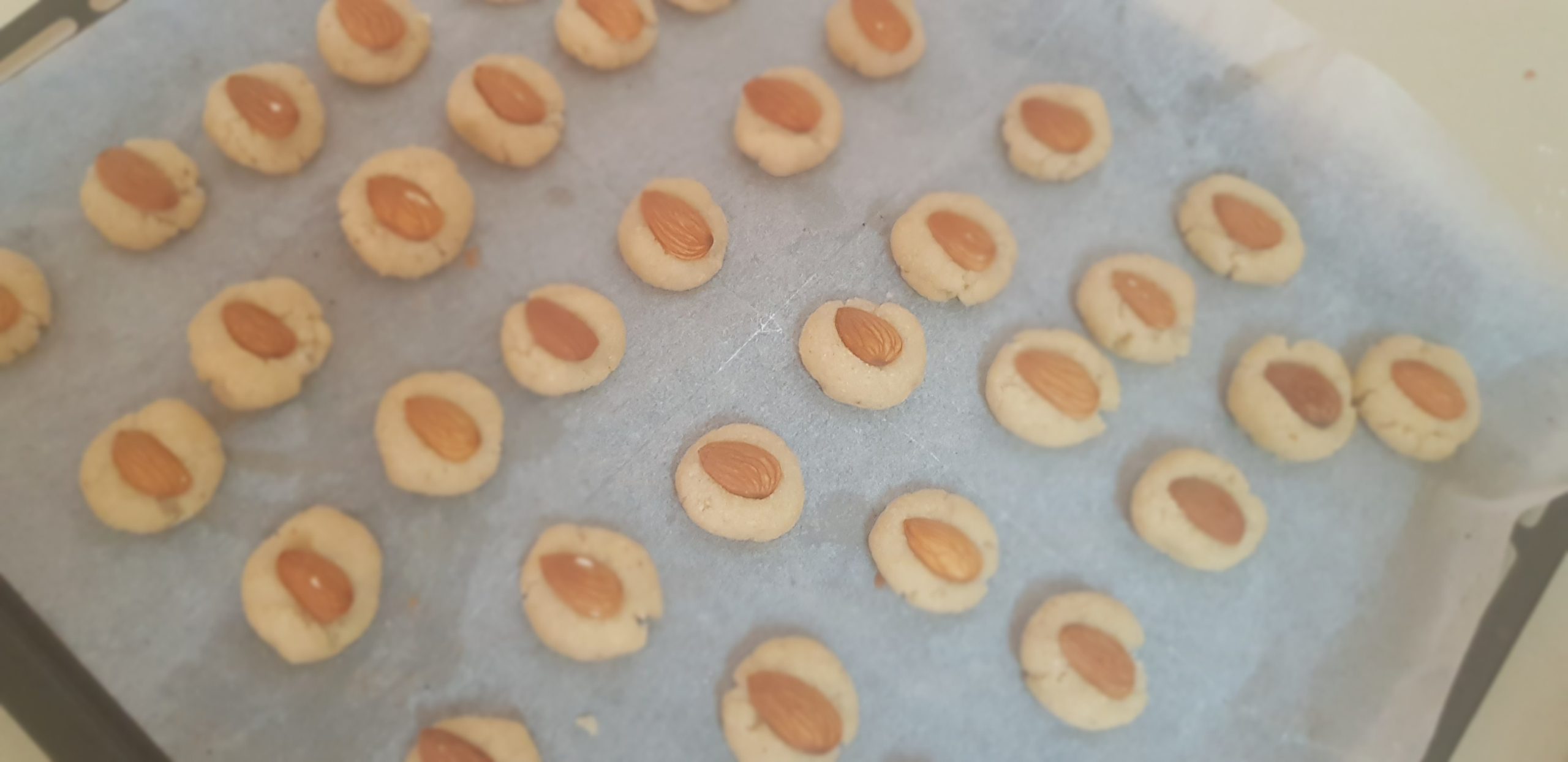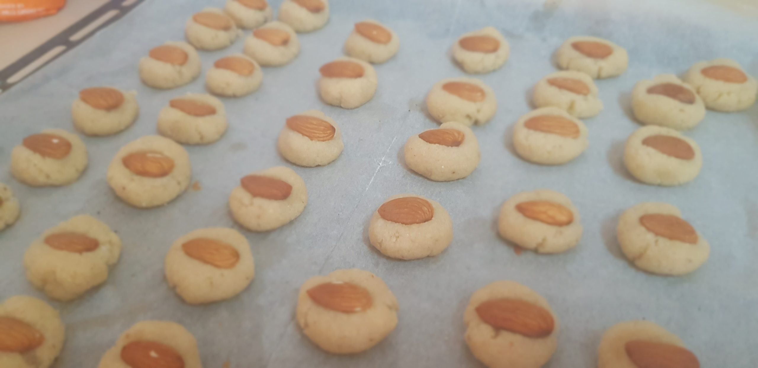 6 – Décorez chaque biscuit avec une amande (facultatif).