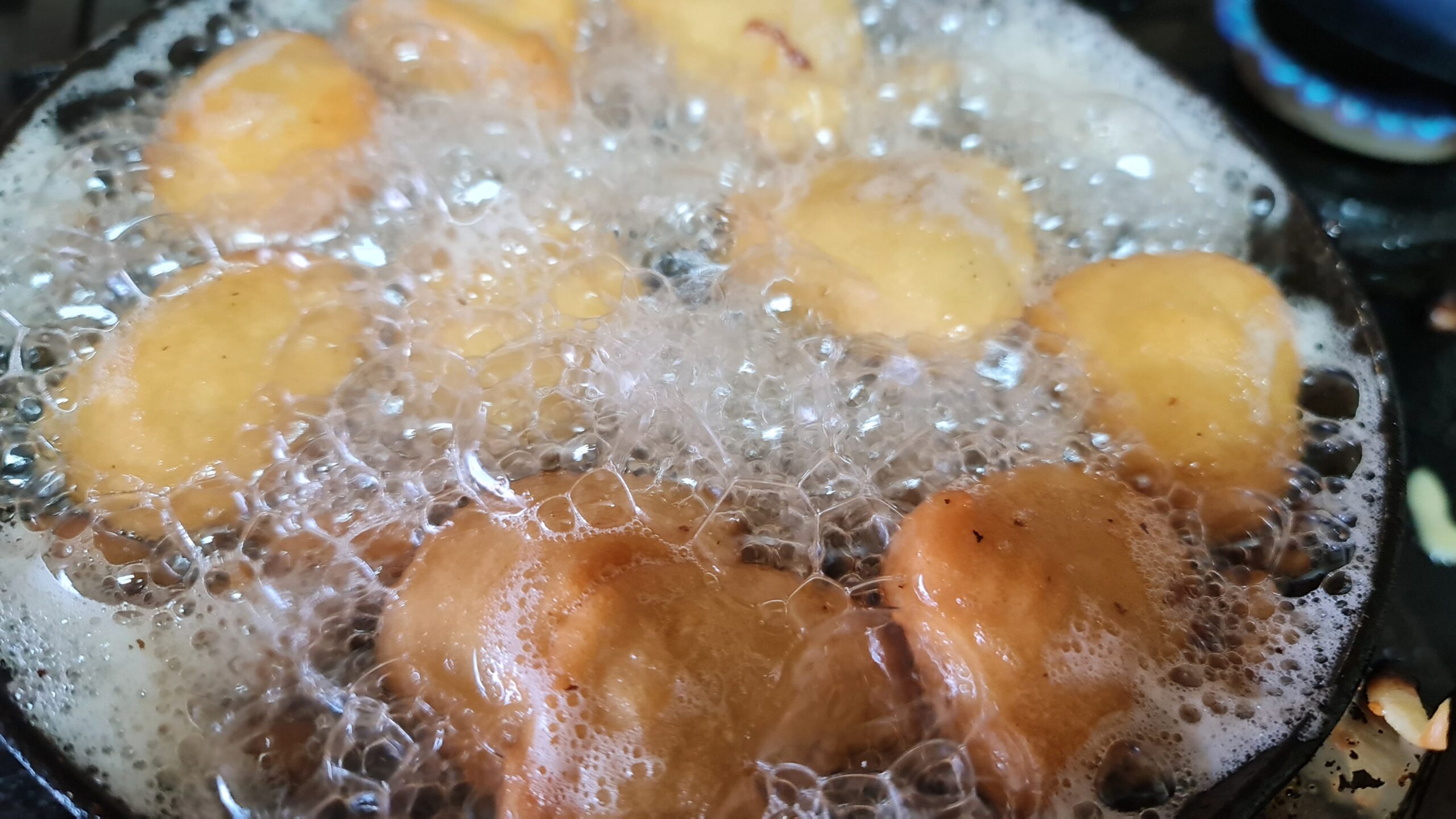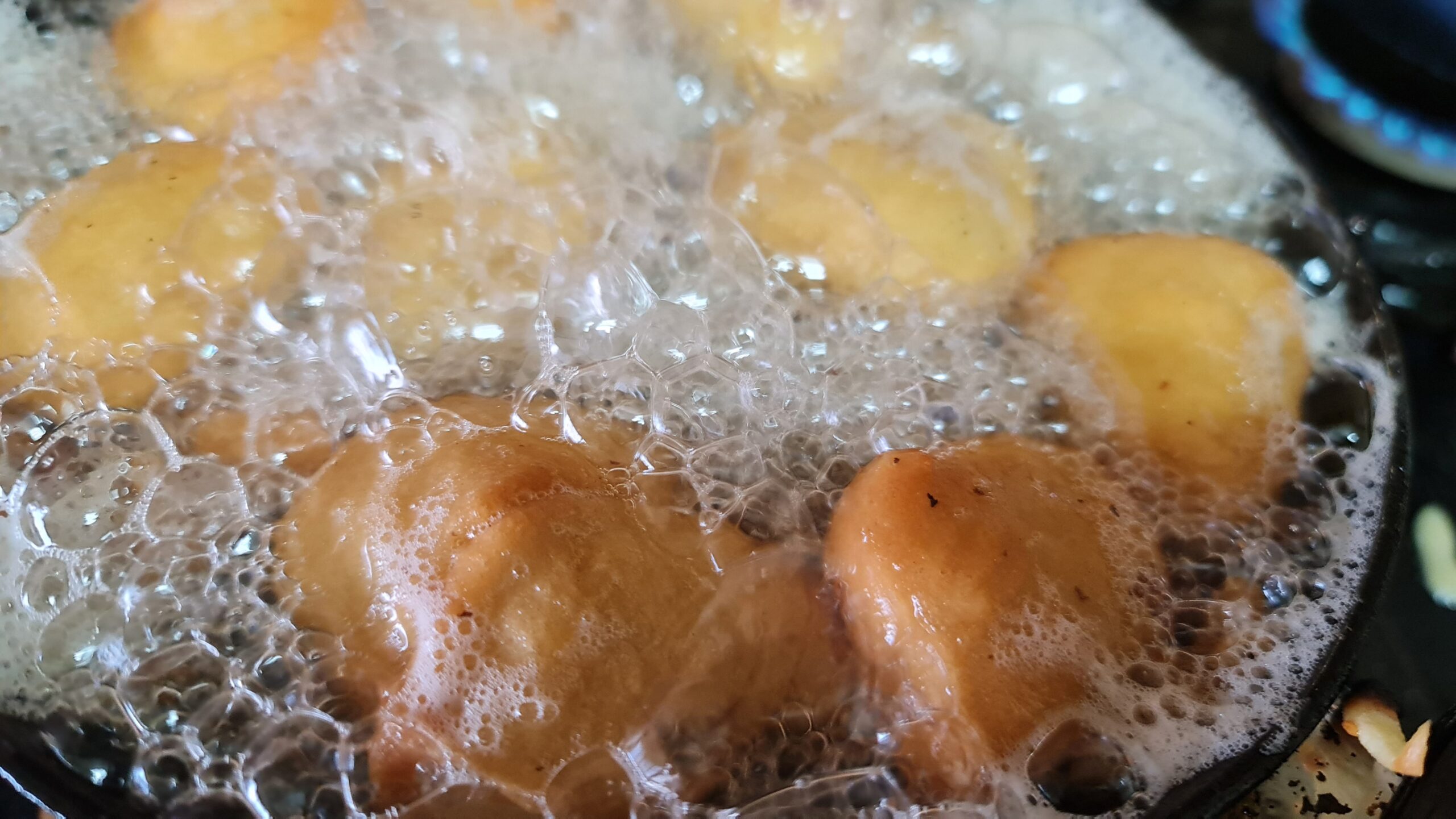 Avec les mains bien propres former des boules et tremper les dans le bain de friture jusqu’à les dorer. (Elles gonfleront en se retournant)