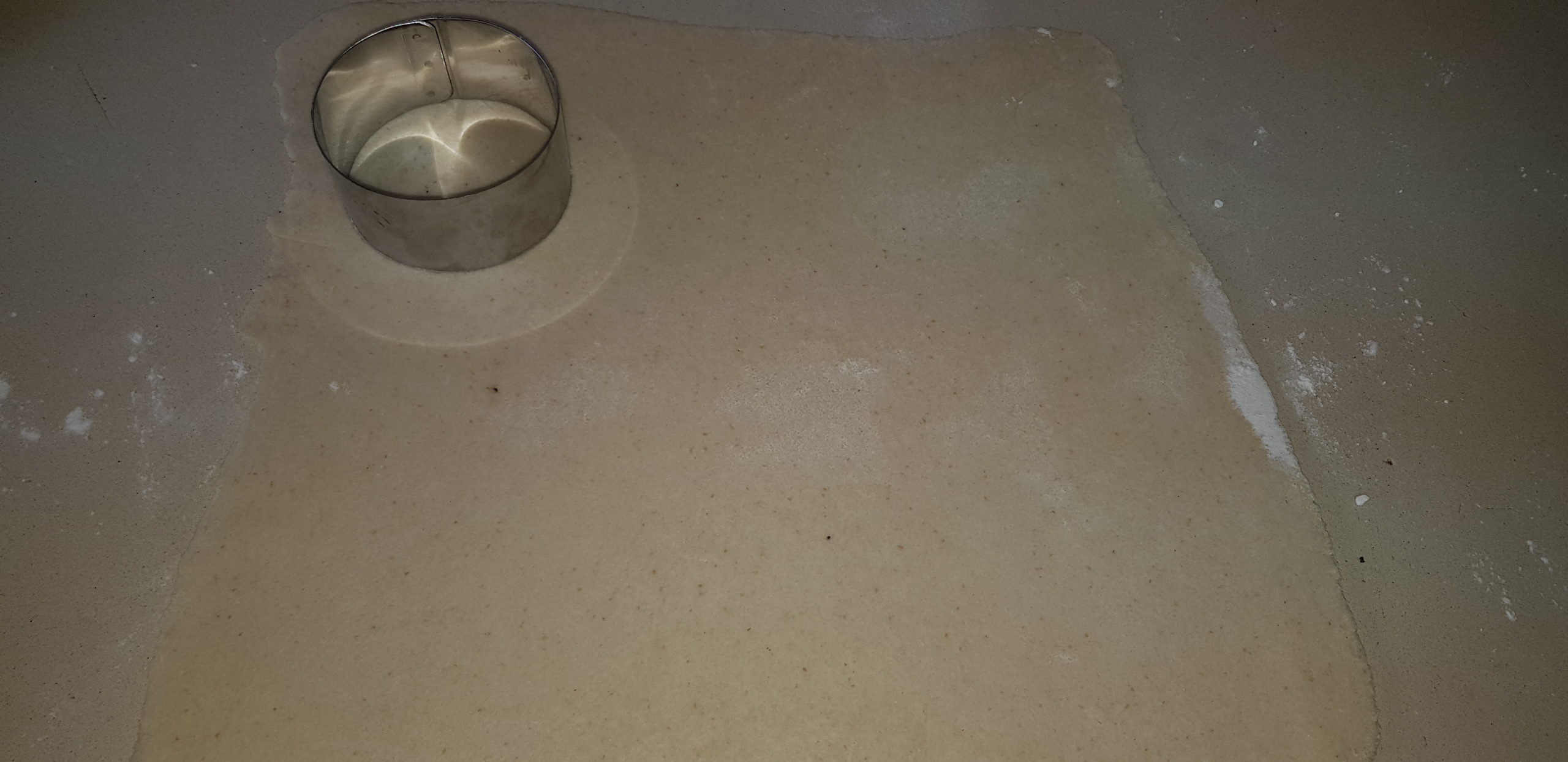Abaisser la pâte sur un plan de travail la pâte ne doit pas être très fine.