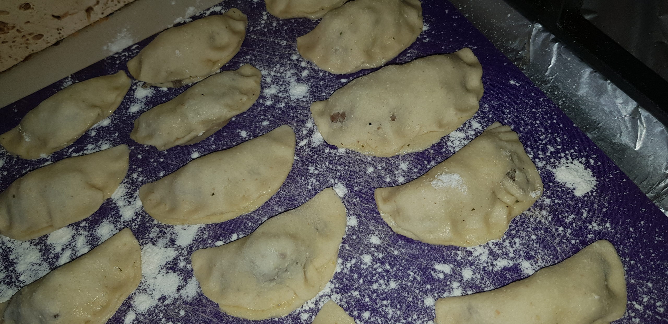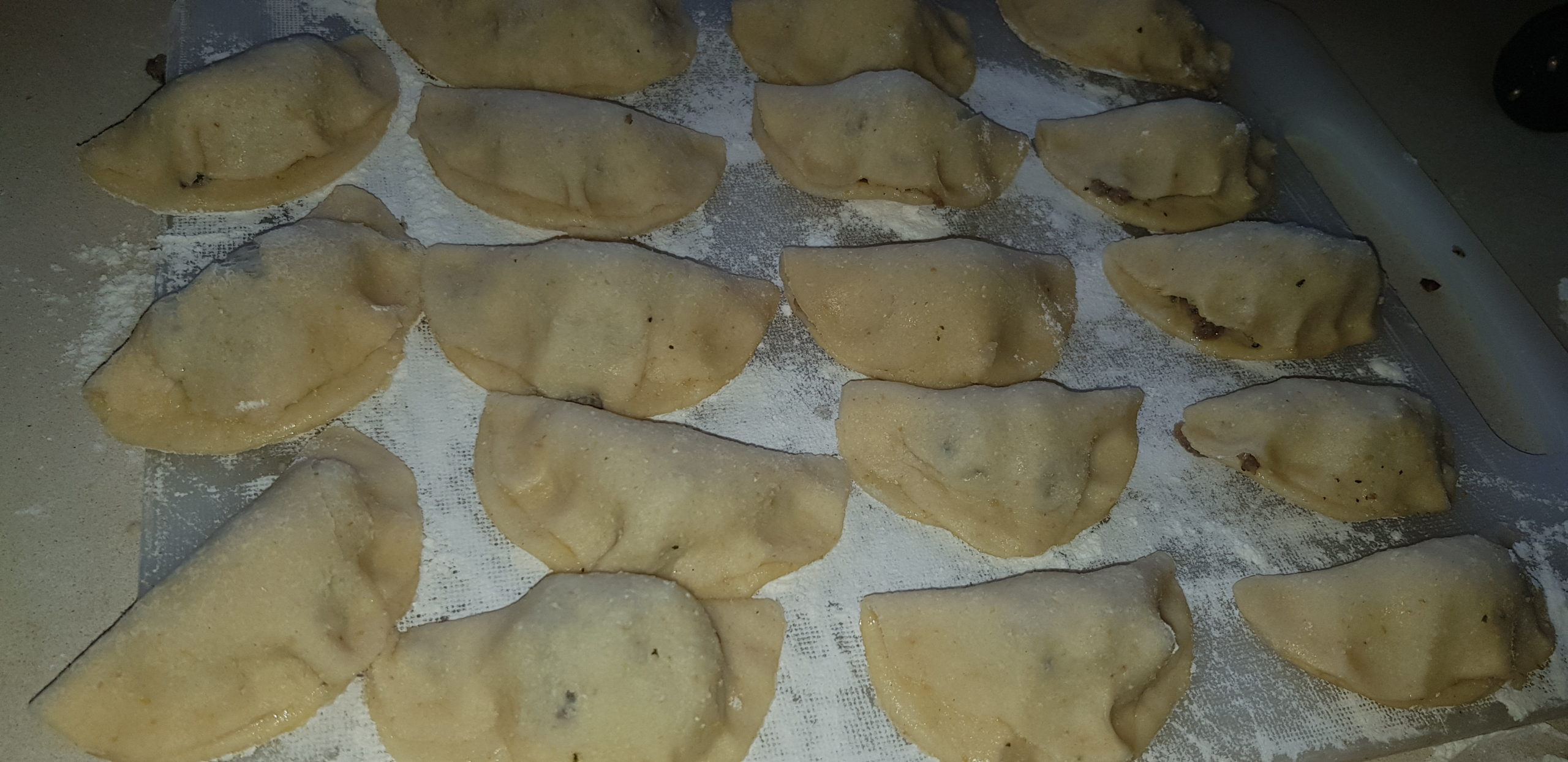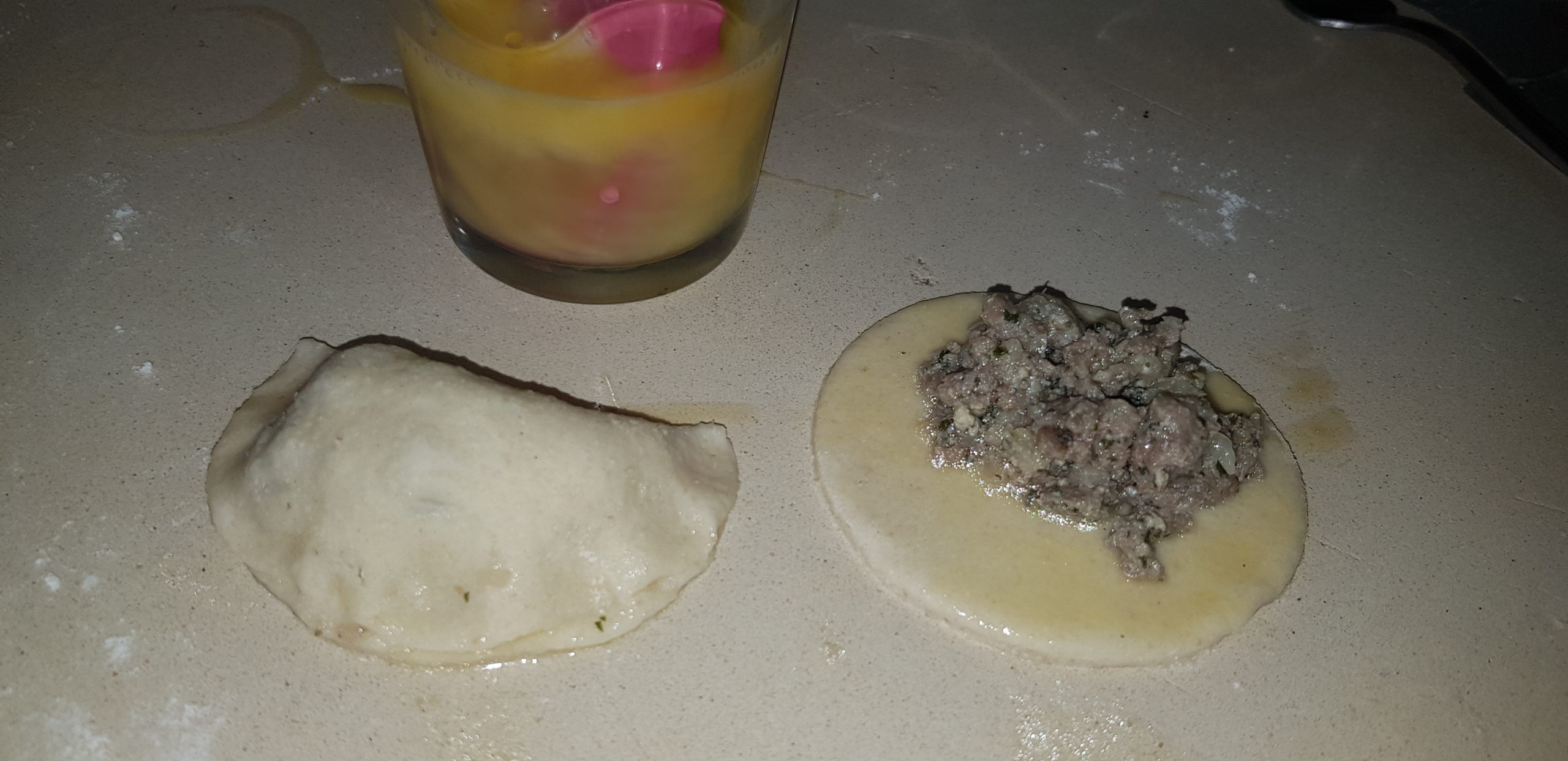Utiliser un emporte pièce pour chausson, mettre une cuillère de farce au milieu et fermer l’emporte pièce