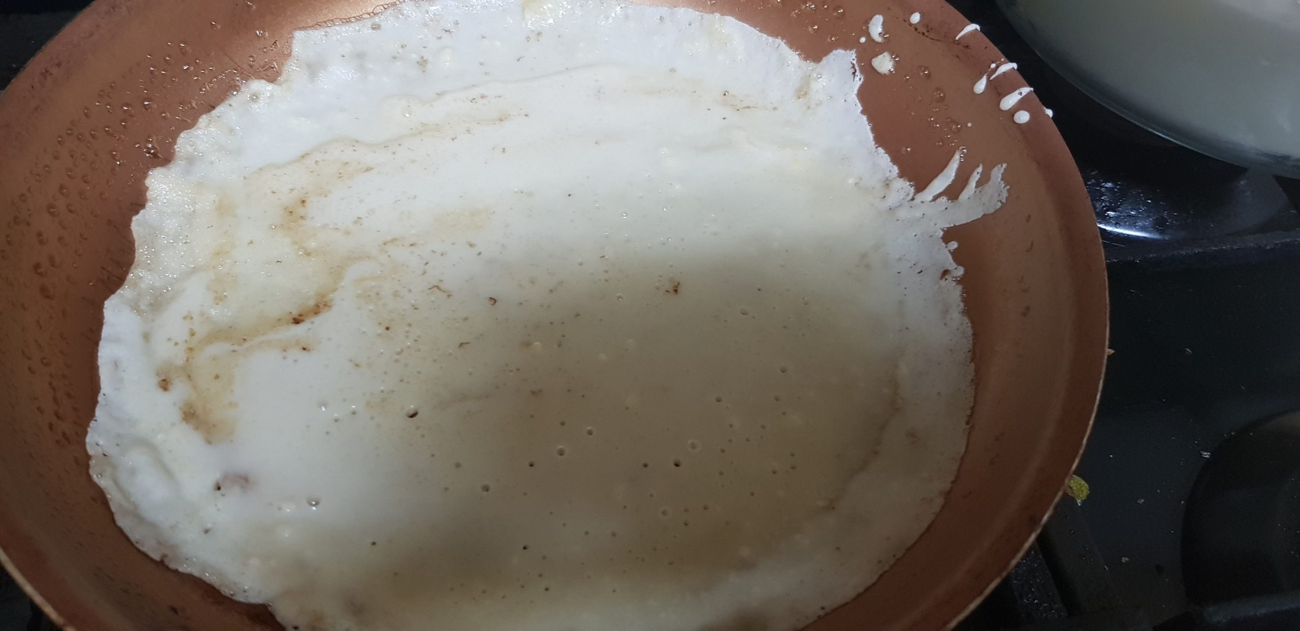 Dans une poêle à crêpe, verser une noix de beurre sur toute la surface de la poêle, et chauffer jusqu’à que la poêle soit très chaude . Verser une louche de pate et laisser cuire sur les deux cotés, et régalez vous avec du nutella, confiture, miel …boule de glace, chantilly !