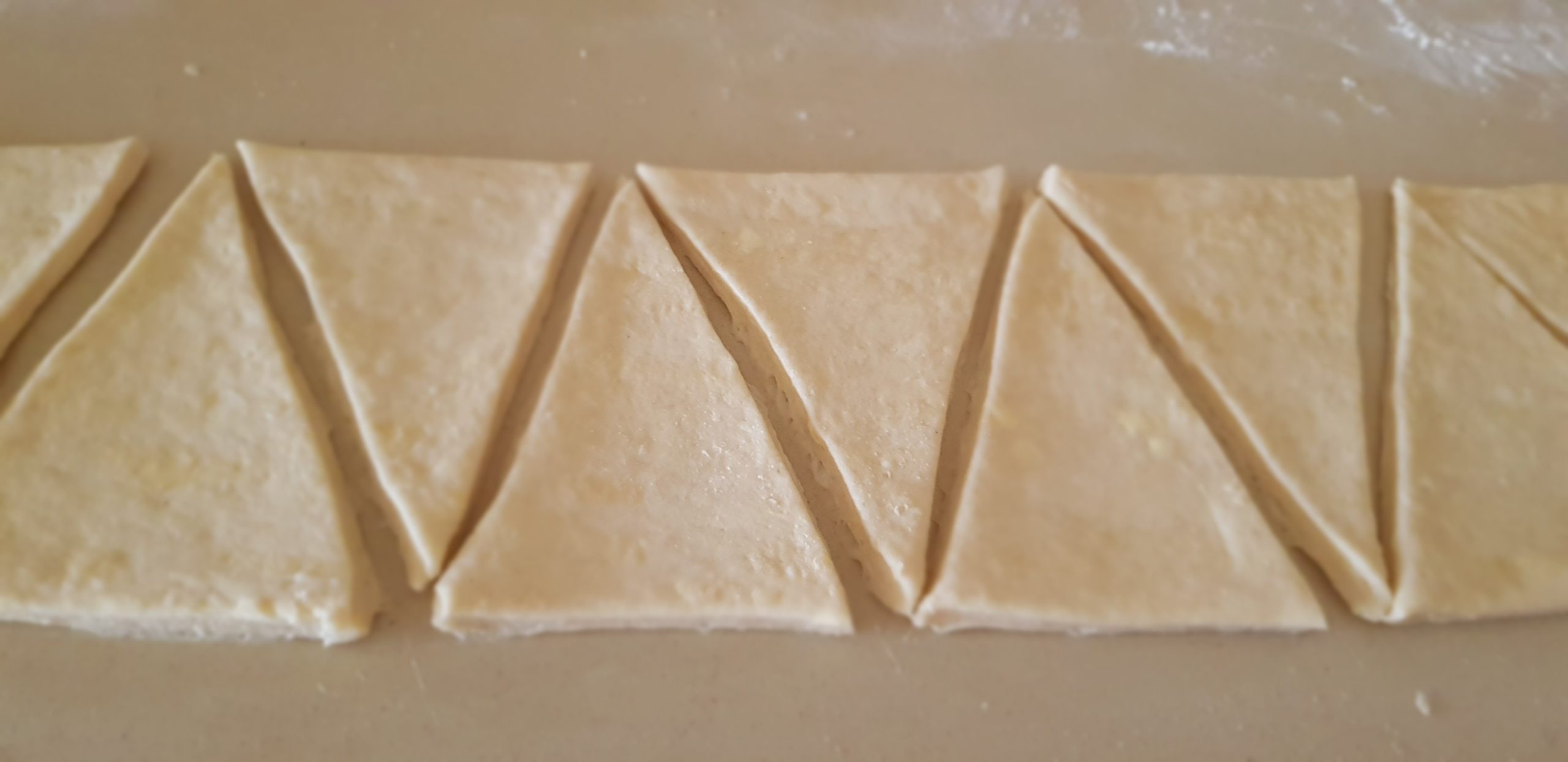 Le pétrissage se fait vite pour que la pâte reste souple et très peu pétrie. Une pâte trop corsée donnerait un mauvais résultat et ne feuilletterait pas.