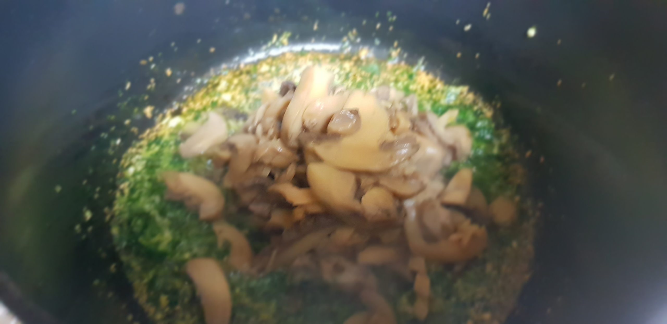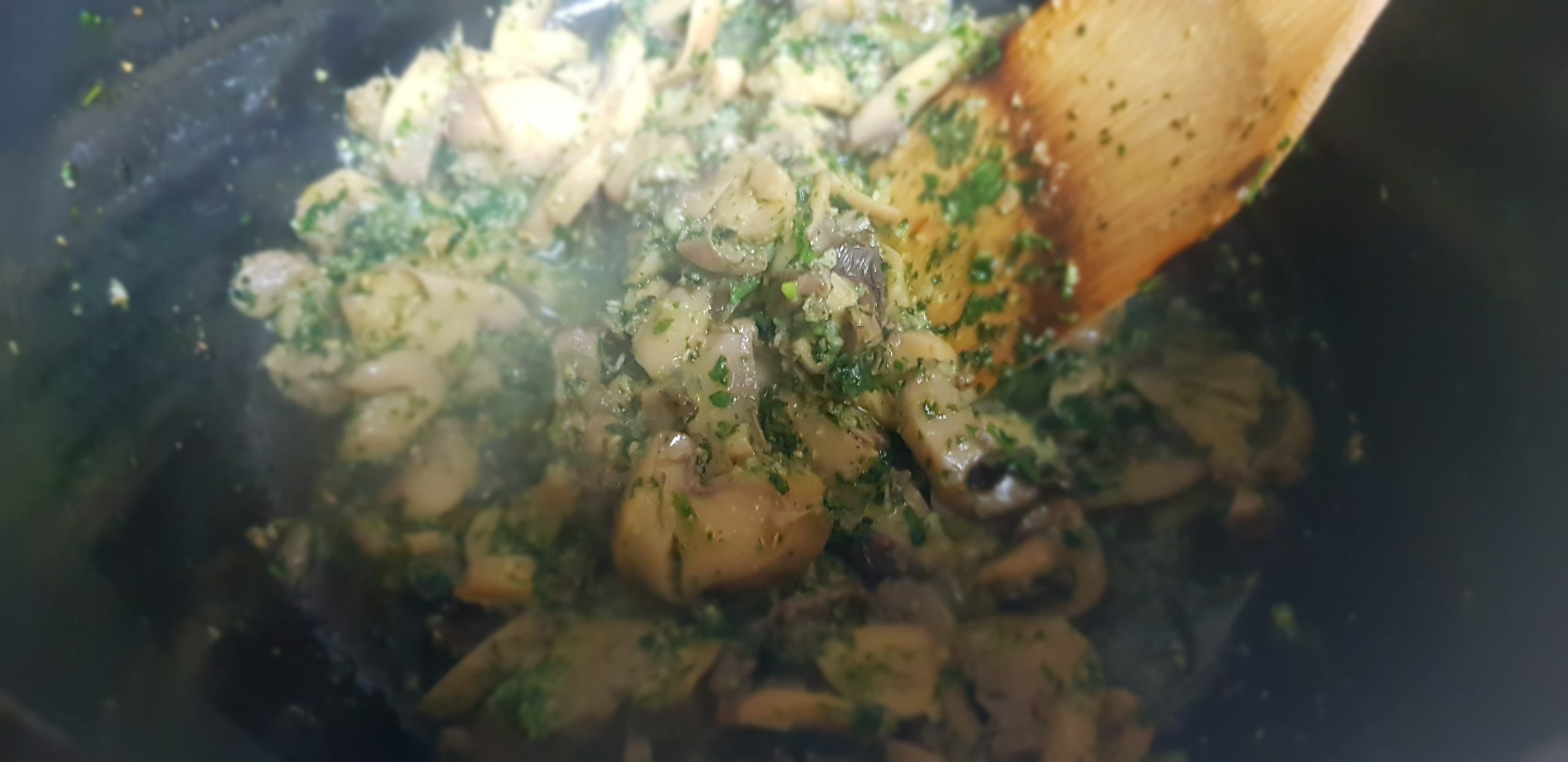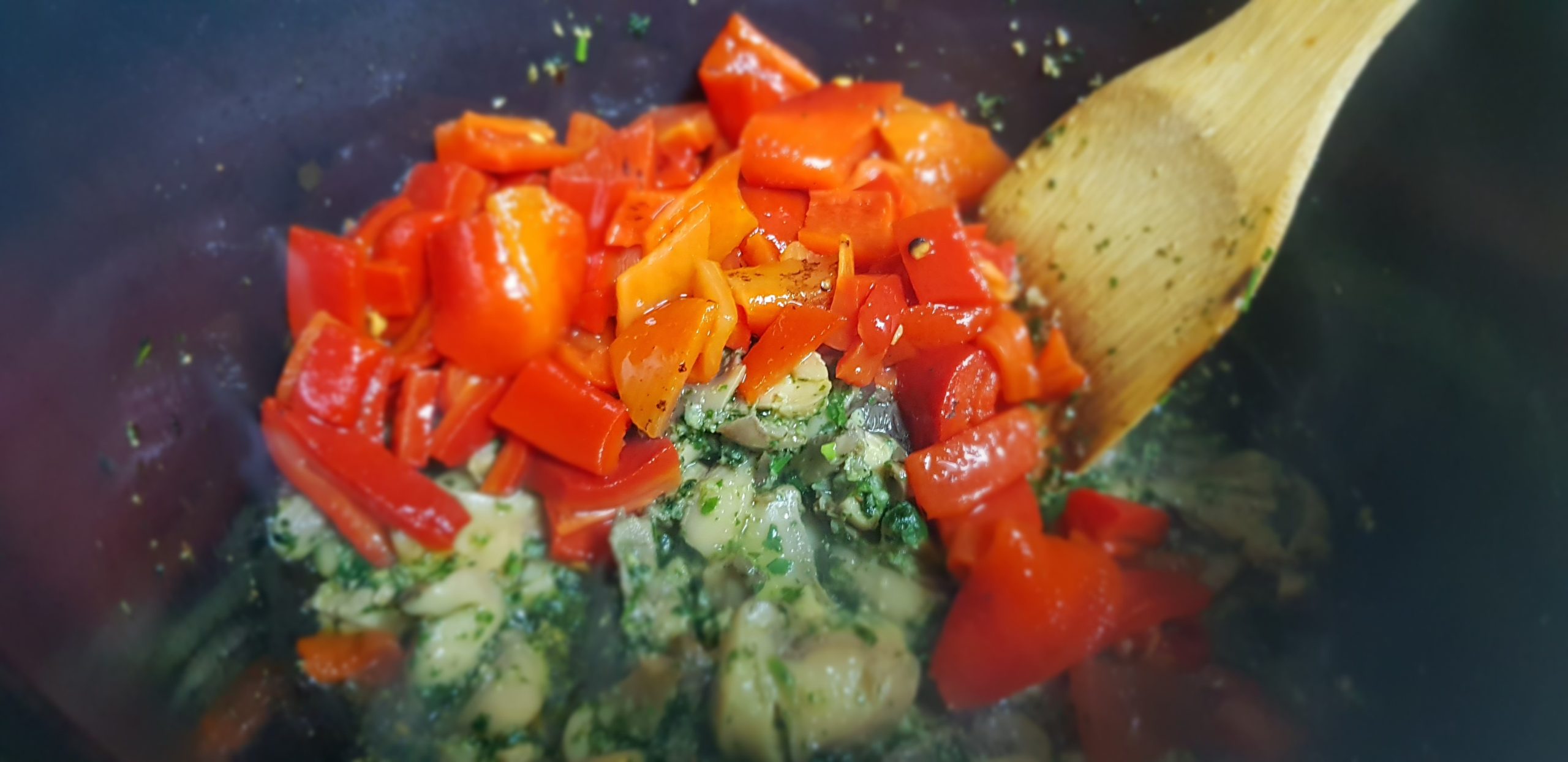 Couper les poivrons grillés en lamelles, et les champignons frais, réserver.