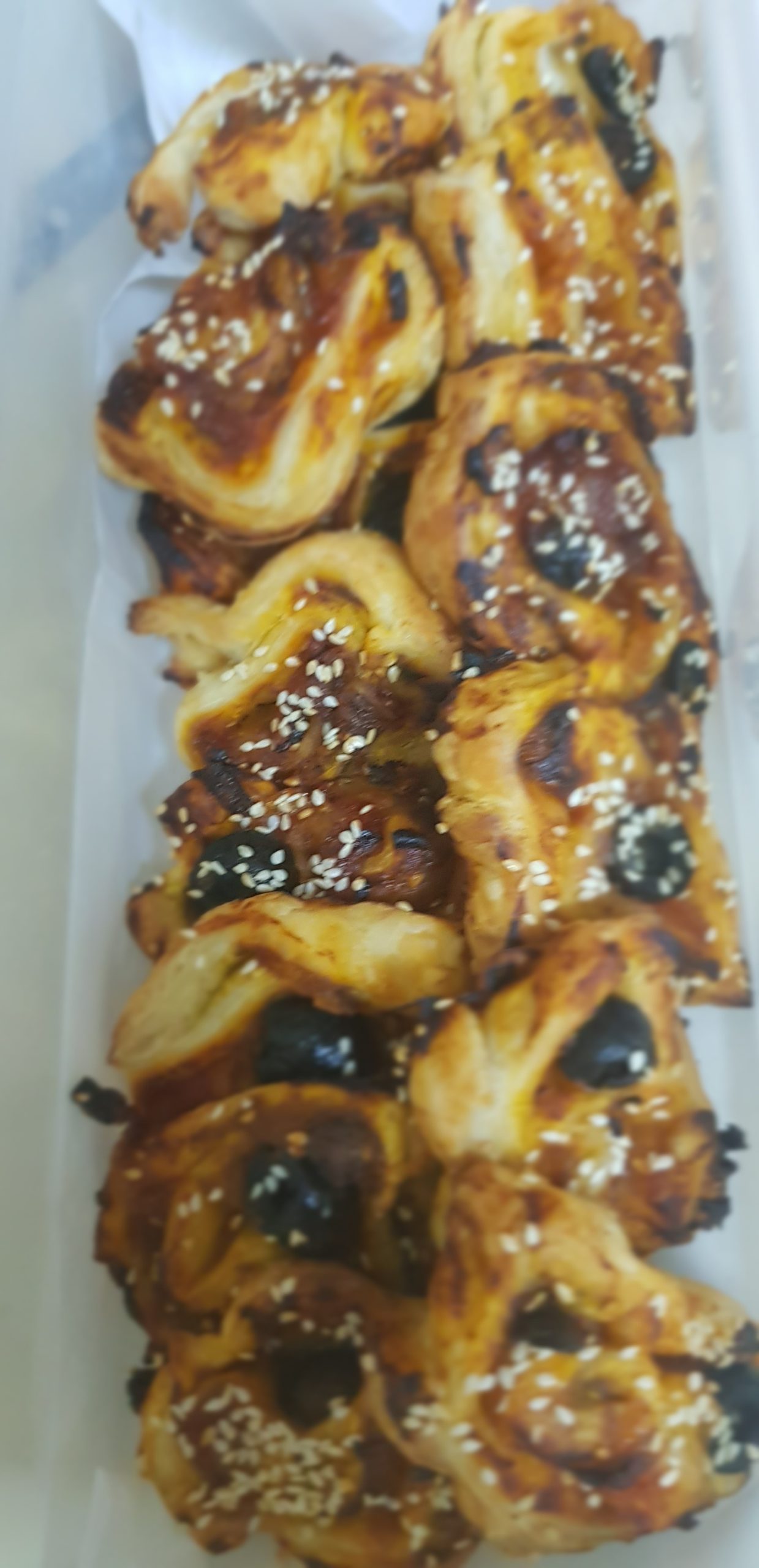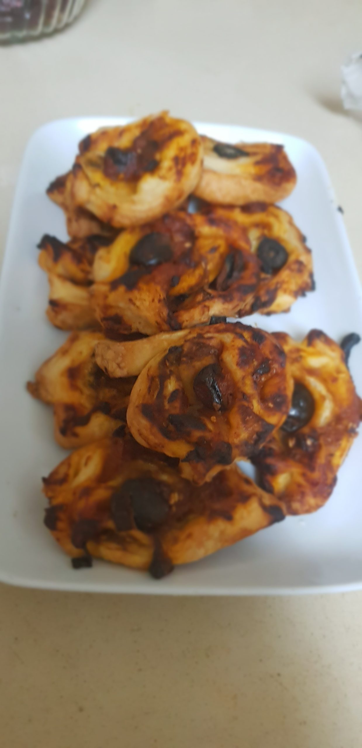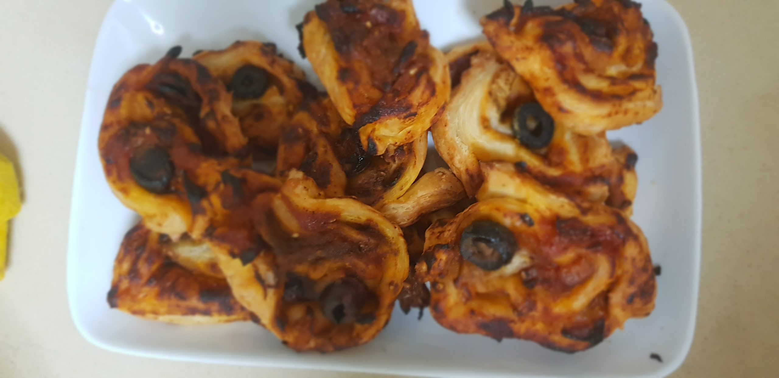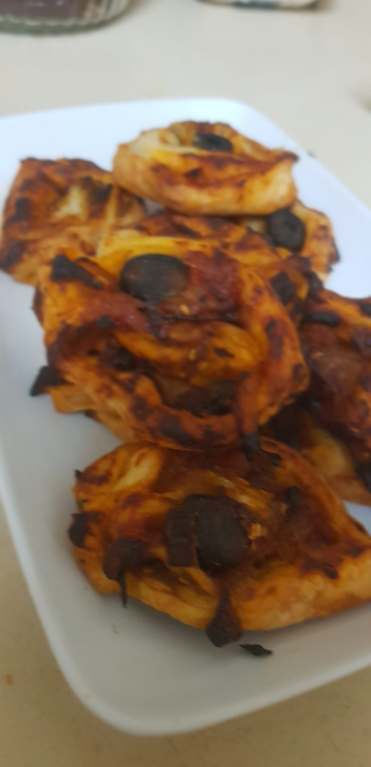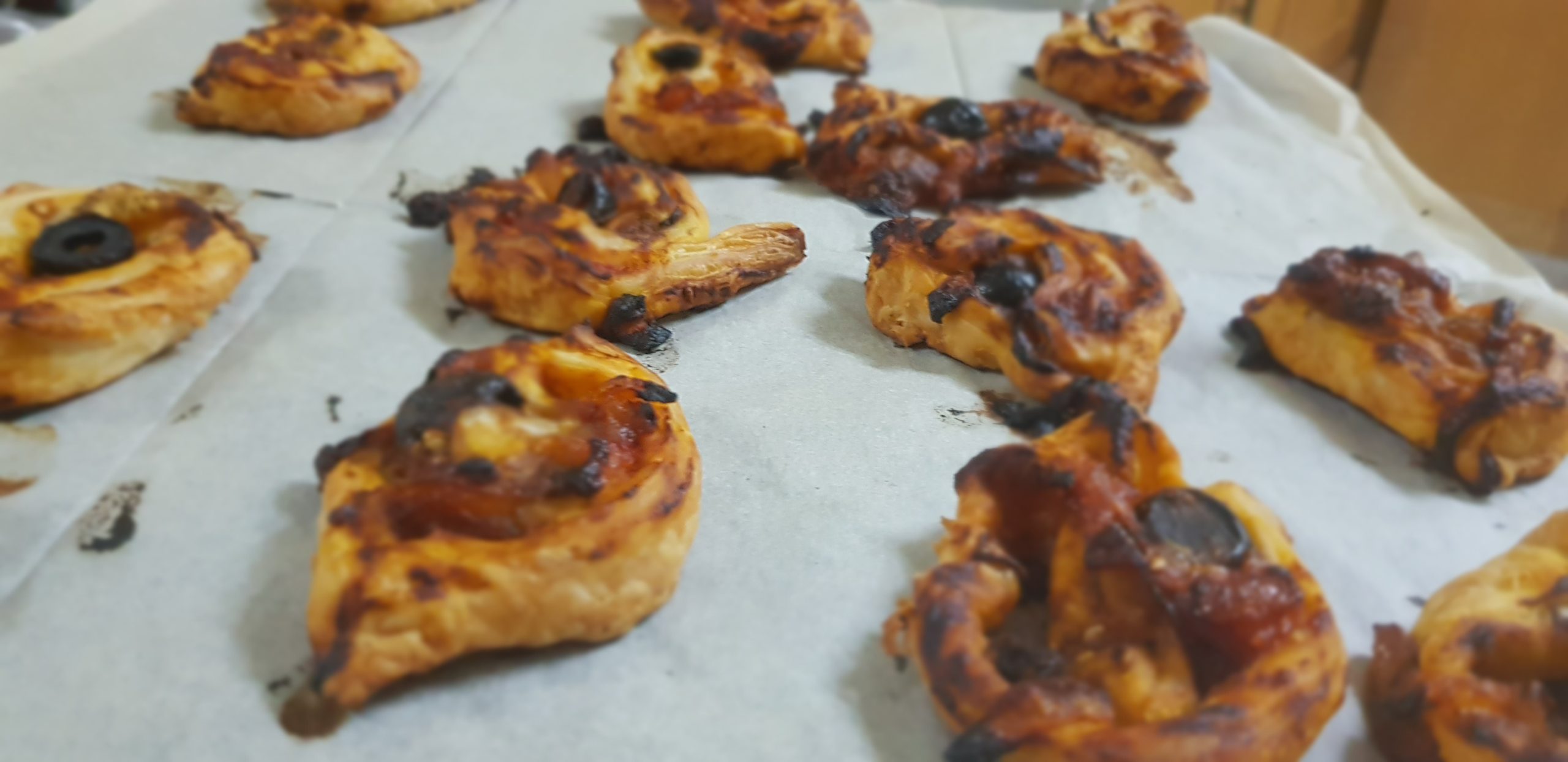 Etaler votre pate feuilletée d’une largeur d’un demi centimètre et étaler la sauce en laissant les bords, puis tourner sans serrer et coupé des tranches de 1 cm,t placer dans un plat allant au four.
