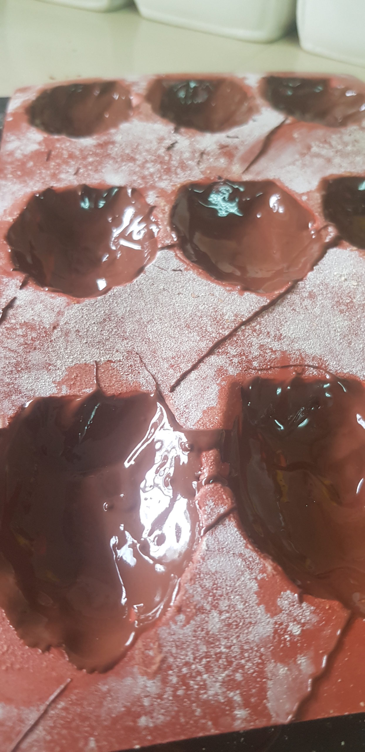 Attention il faut des moules en silicone souple pour pouvoir détacher facilement les madeleines chocolatées des empreintes !