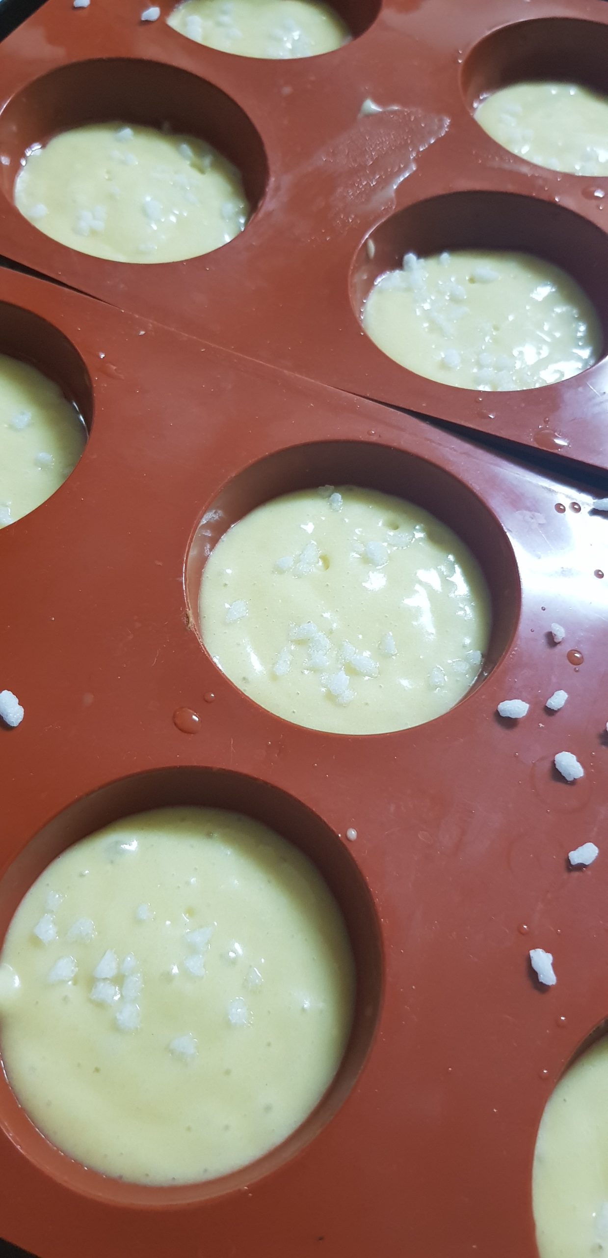 Ajouter une noix de creme de lotus, recouvrer avec une seconde partie de pâte et parsemer de sucre cristallisé