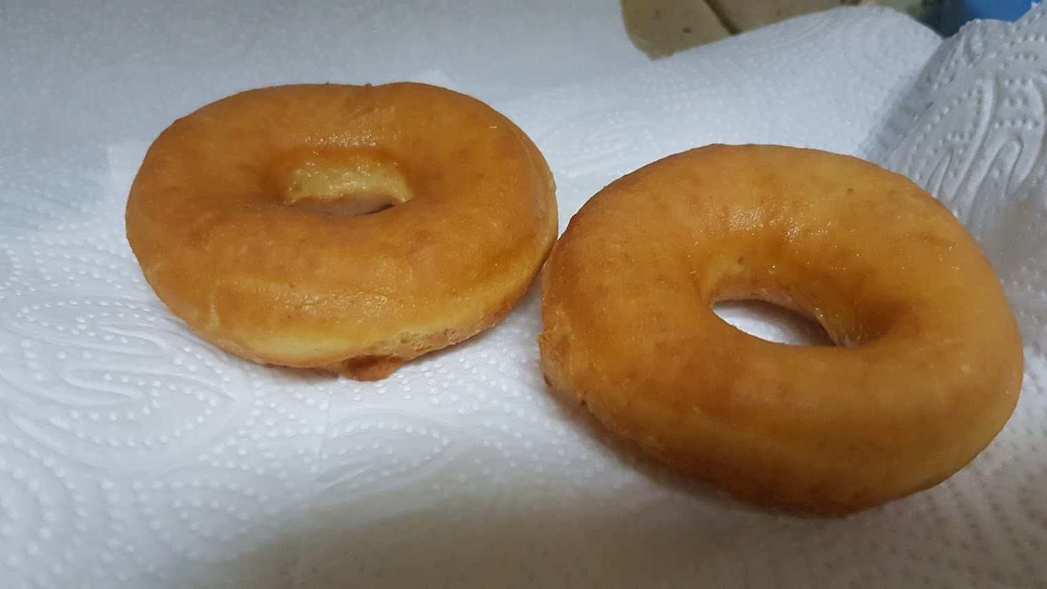 Couvrir d’une serviette les beignets et les trous des beignets et gonfler pendant environ 45 à 60 minutes, jusqu’à ce qu’ils doublent légèrement de volume.