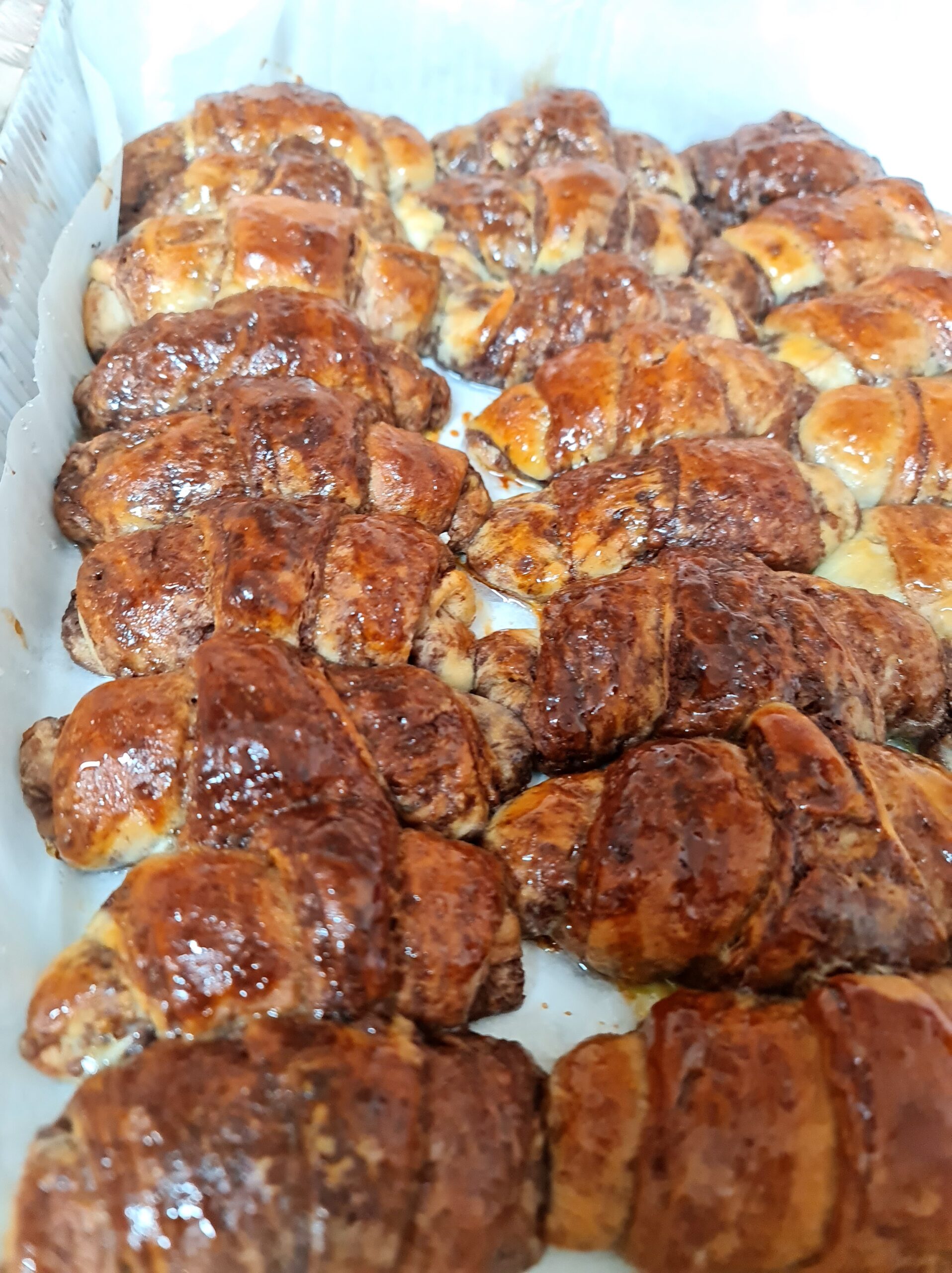 Badigeonner d’œuf et placer dans un four préchauffé à 180 degrés de chaleur inférieure pendant environ 25 à 35 minutes selon la taille ou jusqu’à ce qu’ils soient dorés.