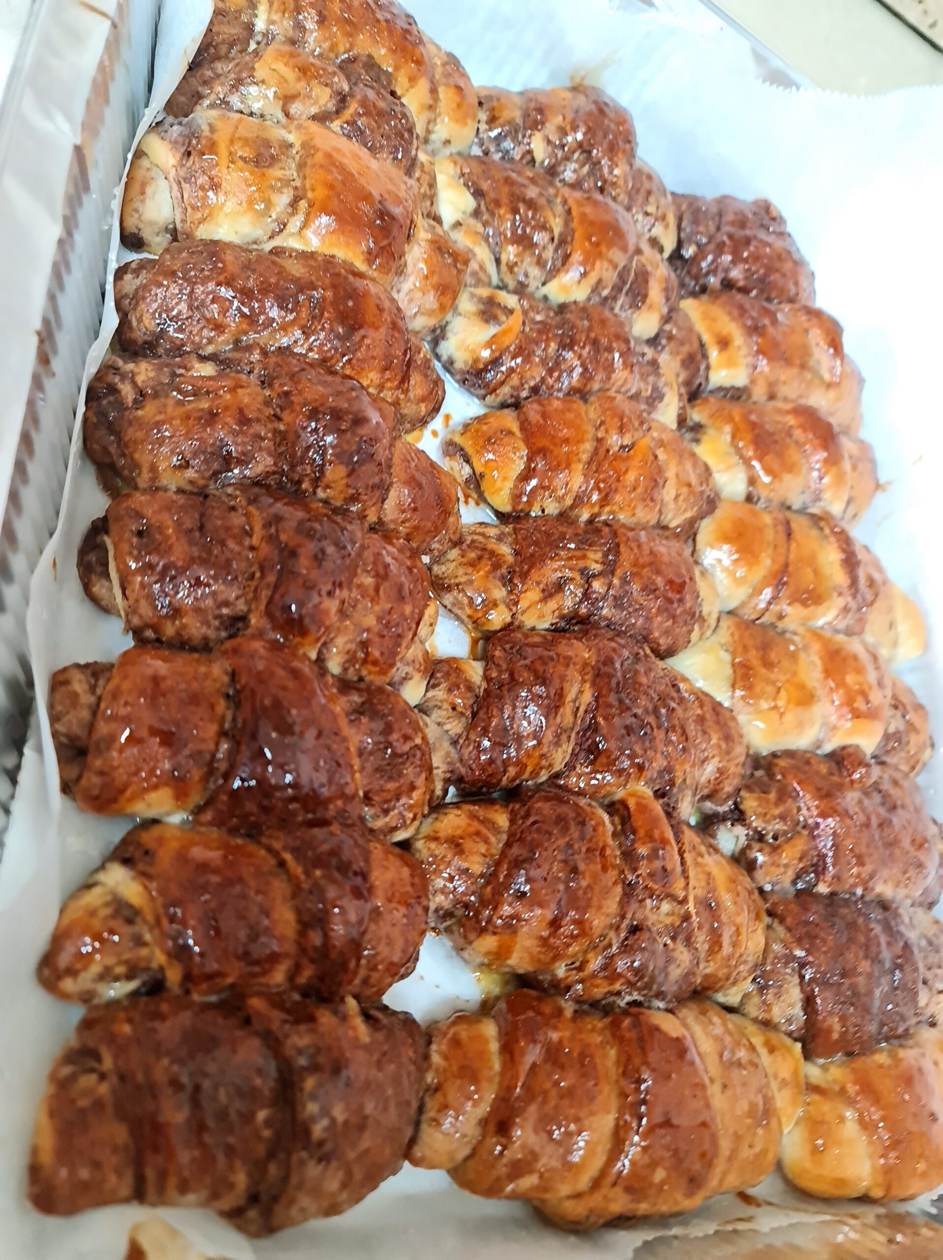 Pour le sirop de sucre – dans un chaudron, mettre le sucre et l’eau et porter à ébullition, quand les rougels sont chauds à la sortie du four, badigeonnez-les bien avec le sirop