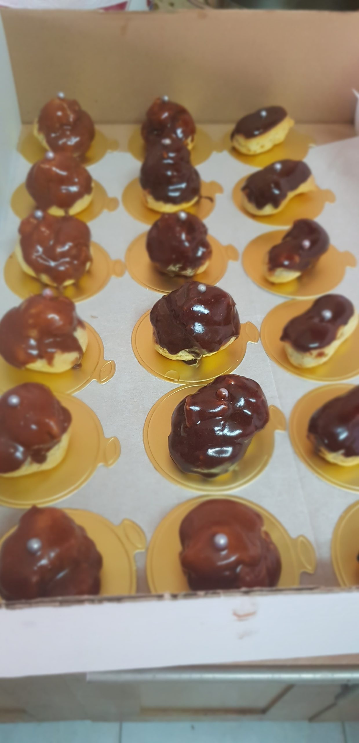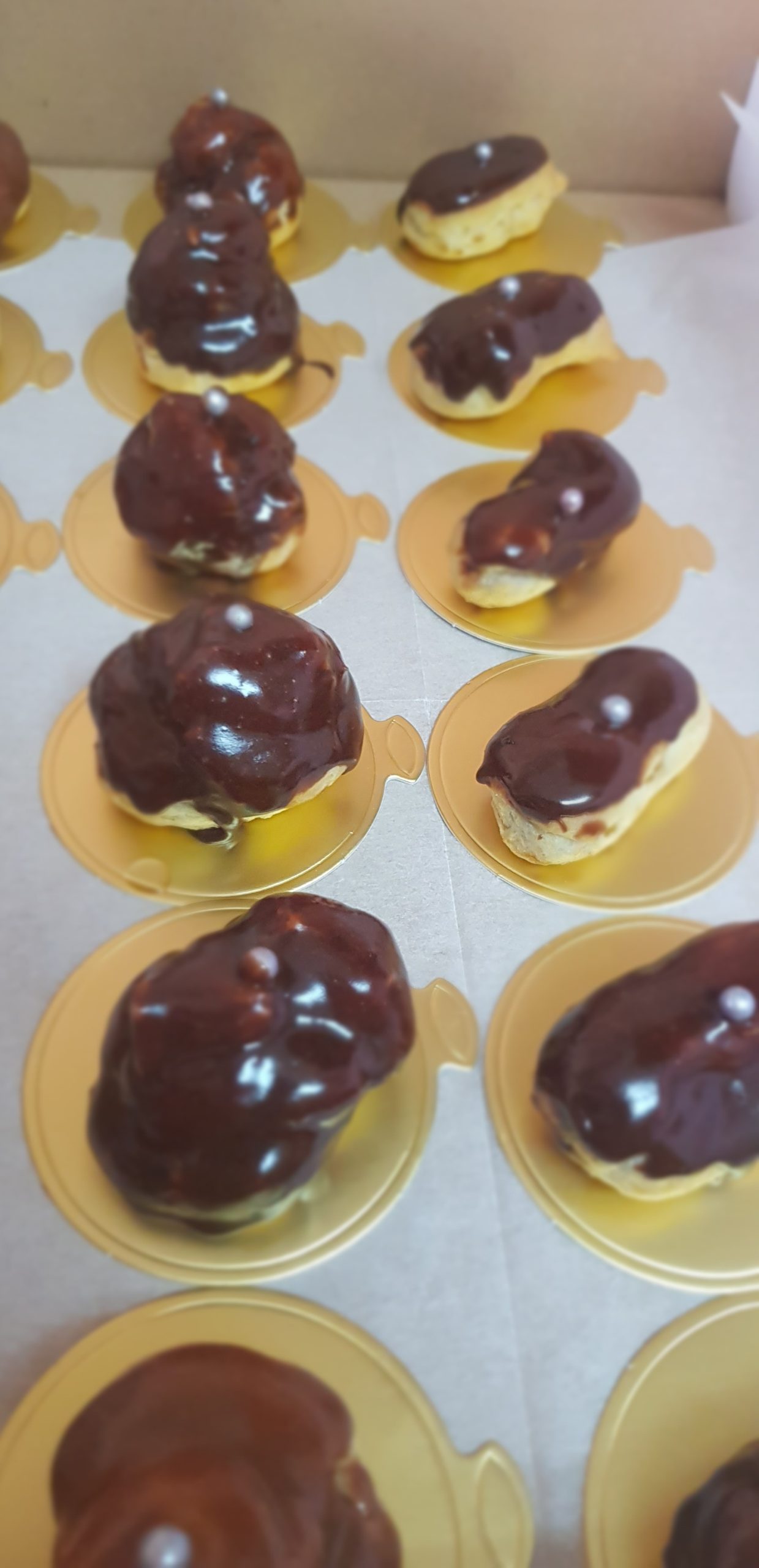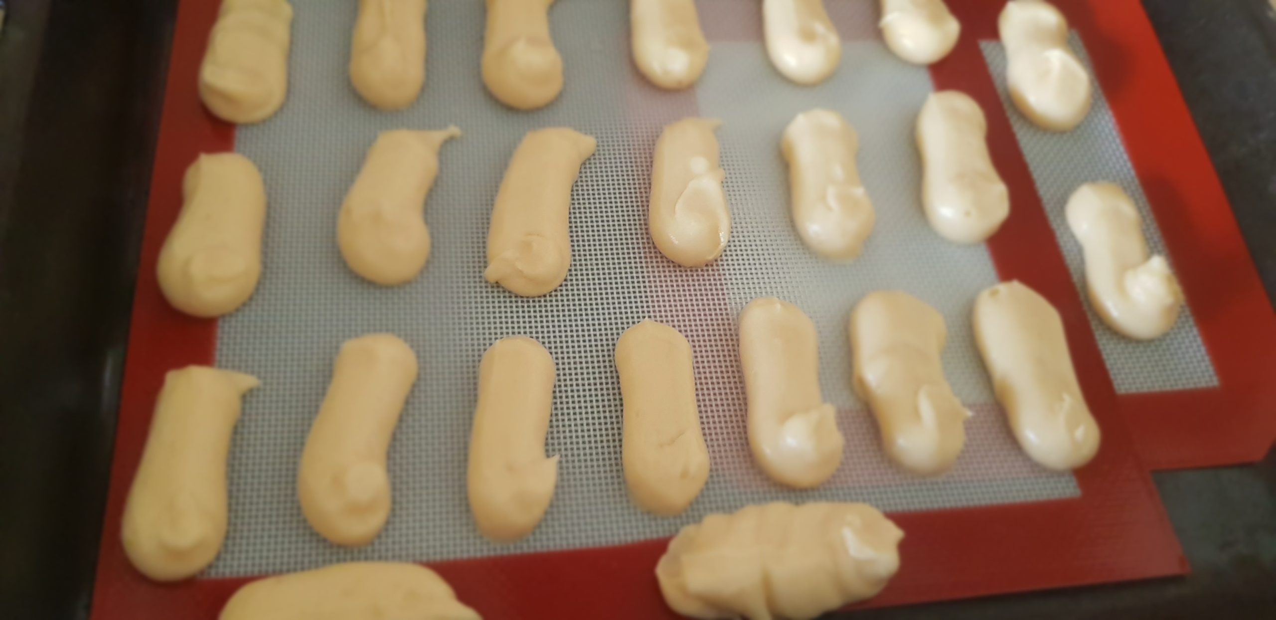 Enfournez 20 minutes jusqu’a ce que les éclairs soient bien dorés et laisser la porte entrouverte du four. Éteindre le four avec la porte bien entrouverte afin de les sécher et qu’ils restent bien gonflés.